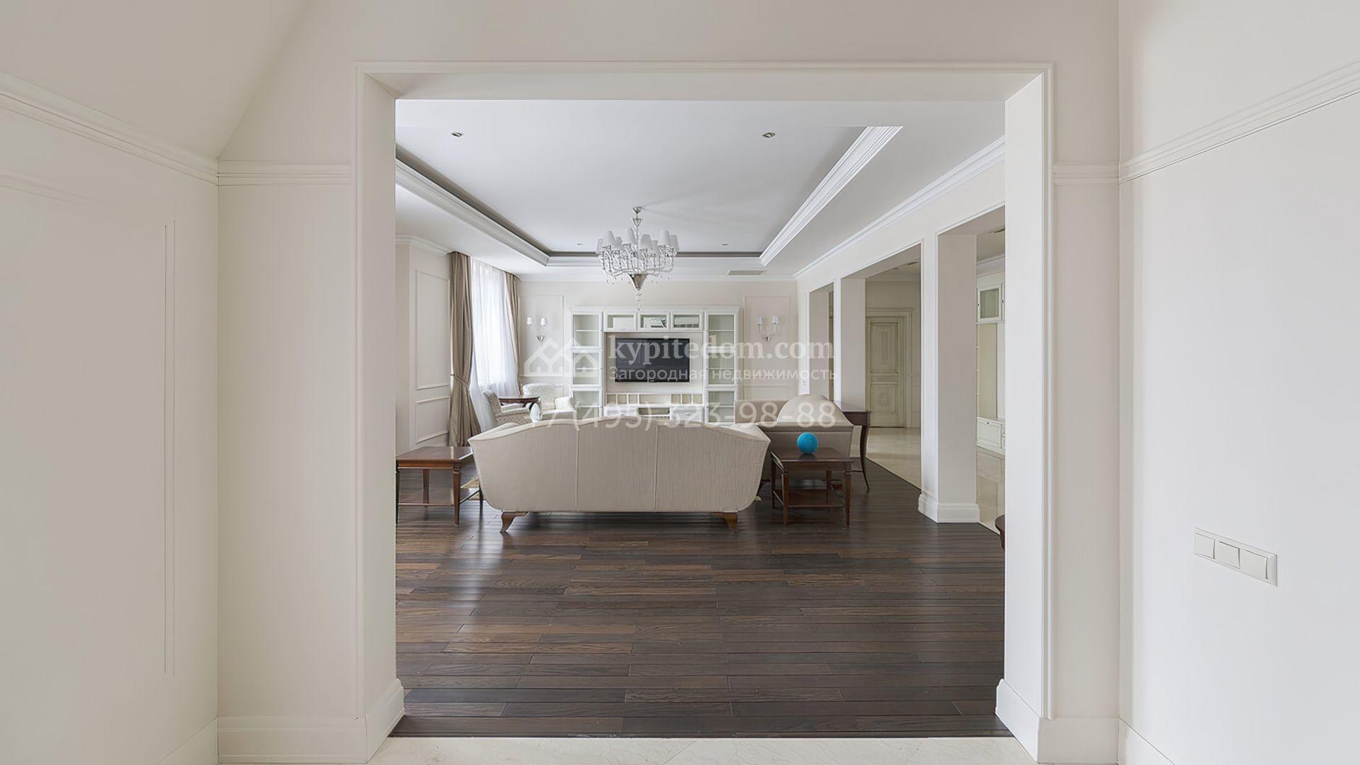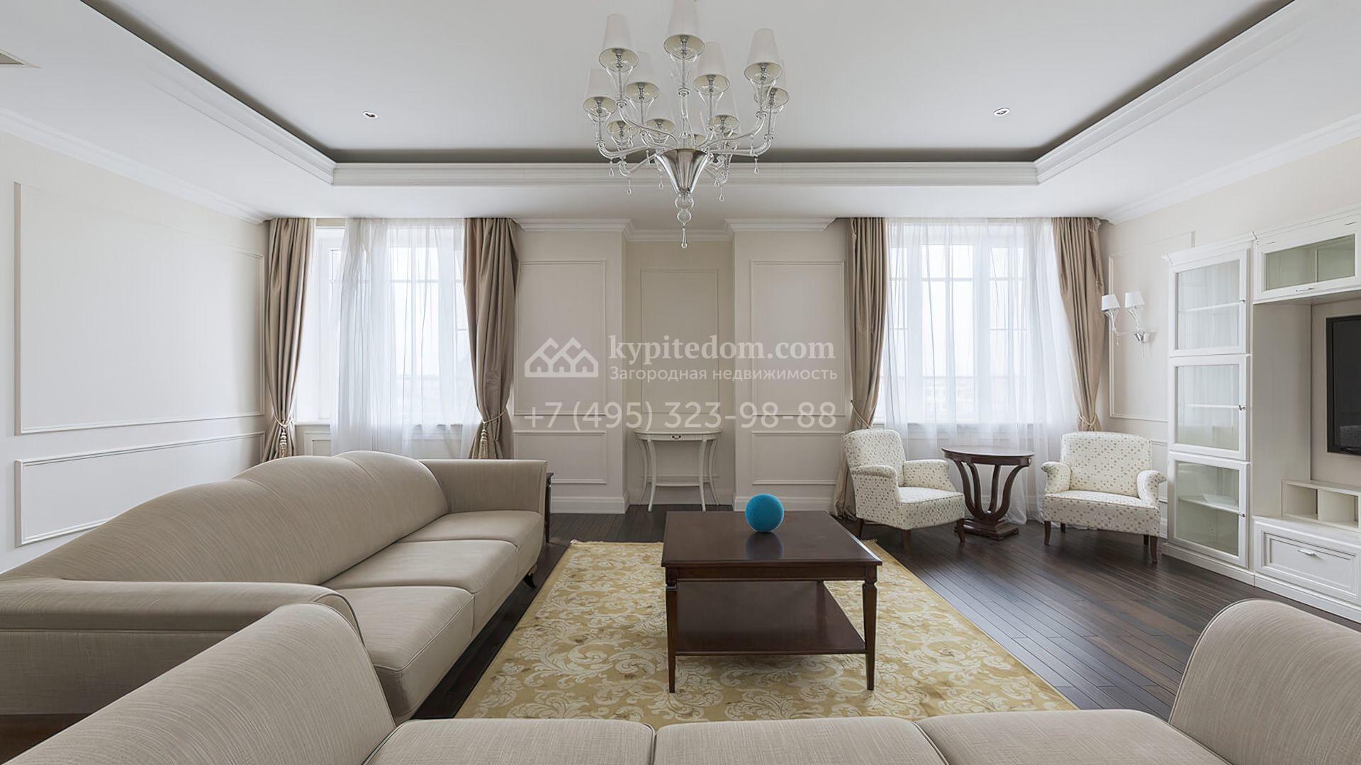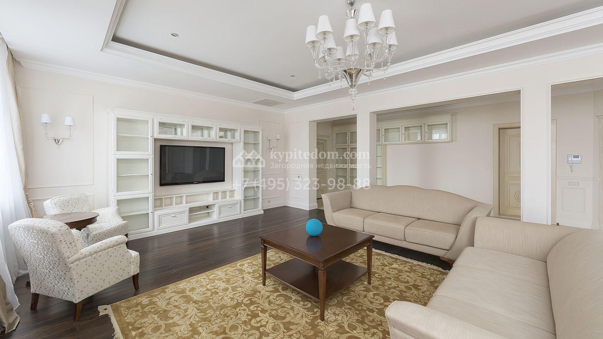 Просторные апартаменты с 2-мя спальнями в поселке премиум-класса Agalarov Estate. Апартаменты общей площадью 167,3 м² расположены на 2-м этаже в корпусе 2. Интерьер, выполненный в современном классическом стиле, гармонично сочетает нежные пастельные оттенки с глубокими деревянными акцентами, создавая атмосферу уюта и легкости.