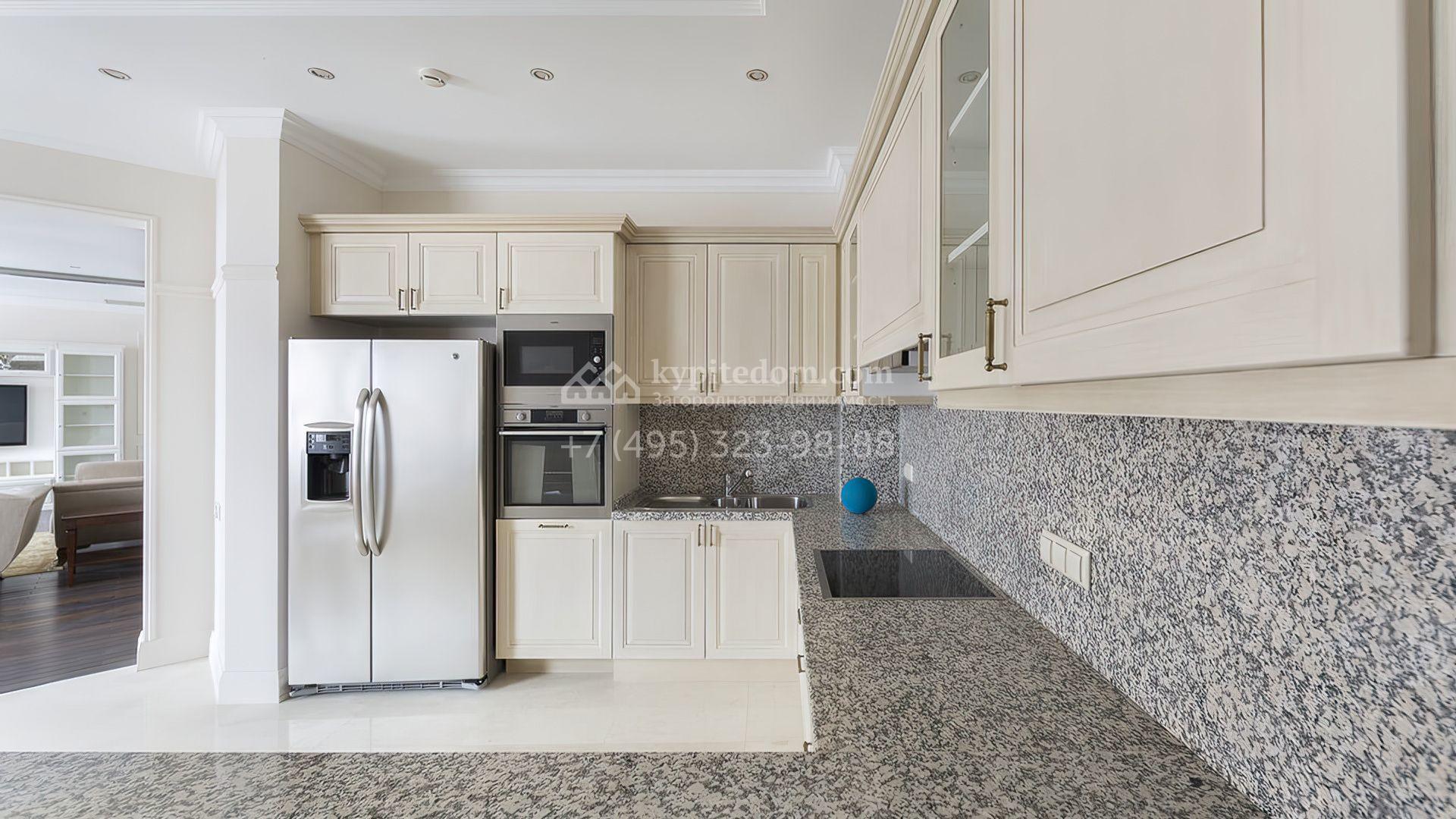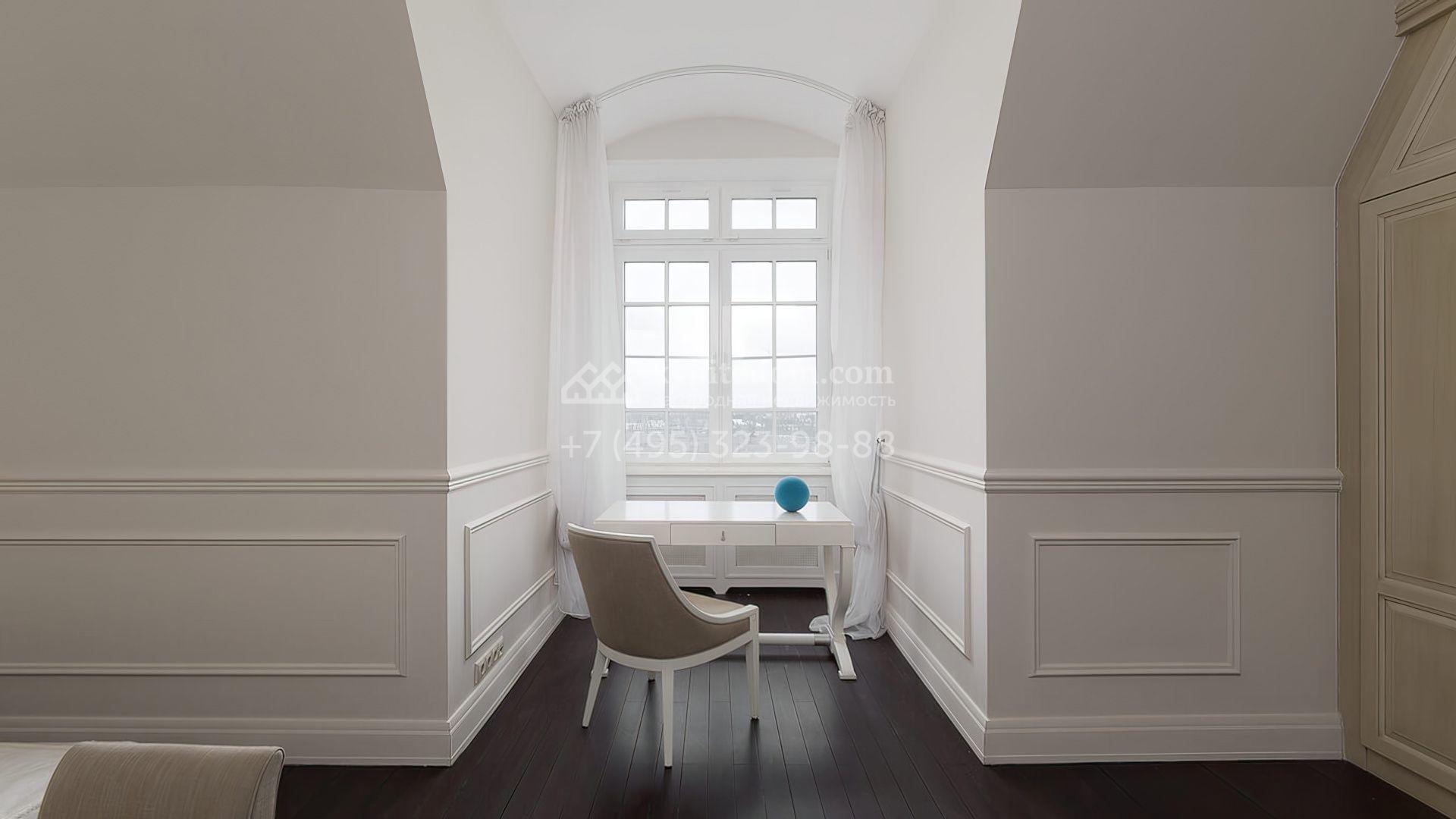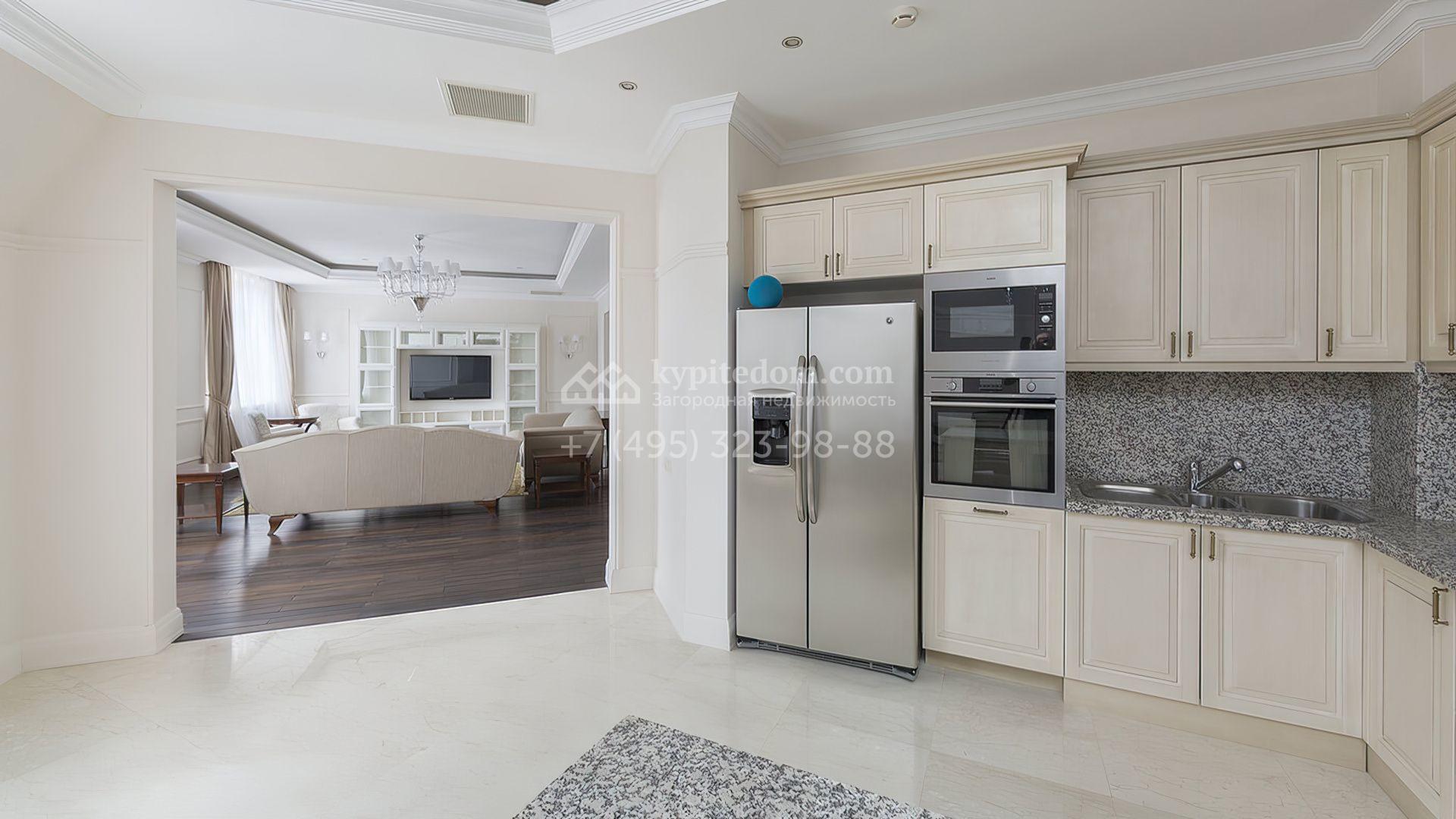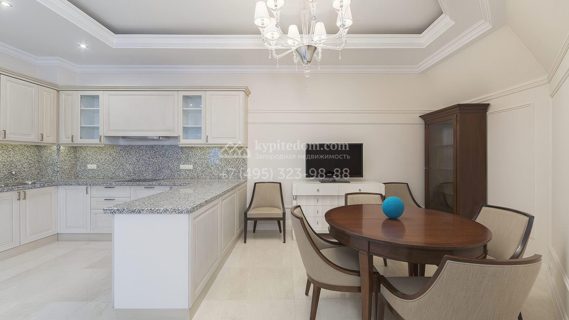 Стены украшены декоративными молдингами, а полы отделаны паркетной доской и керамогранитом, придавая пространству завершенный вид. Мебель и техника представлены от ведущих производителей Италии и США. Удобная планировка включает светлую гостиную, кухню-столовую, 2 спальни, гардеробную и 3 санузла.