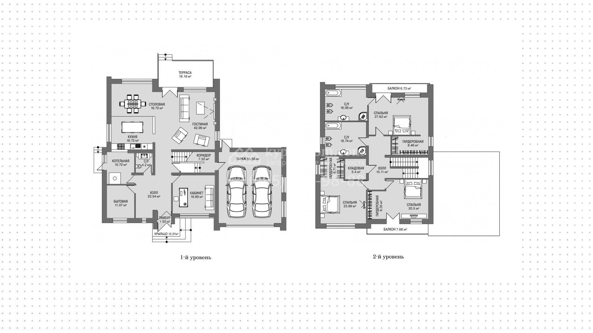 Двухэтажный коттедж без отделки расположен на угловом участке 19 соток в центральной части поселка. На первом этаже можно спланировать общую зону кухни-гостиной, столовую, хозяйственные помещения и кабинет. На втором этаже можно разместить до трех спален с выходами на балконы. Общая площадь дома 430 м².