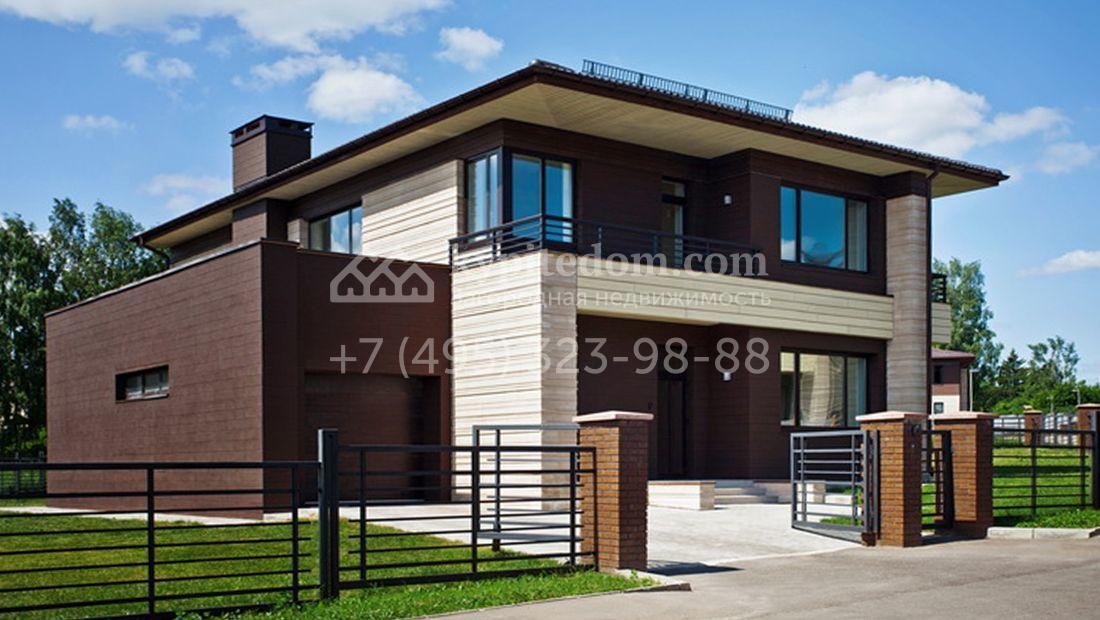 Дом 334 м² продается без отделки — хозяева могут спланировать до 3 спален с балконами, встроенный гараж с котельной, кухню, кабинет и просторную гостиную с выходом на террасу 20 м². Полевой участок 12 соток расположен в центральной части поселка, на углу улицы.
