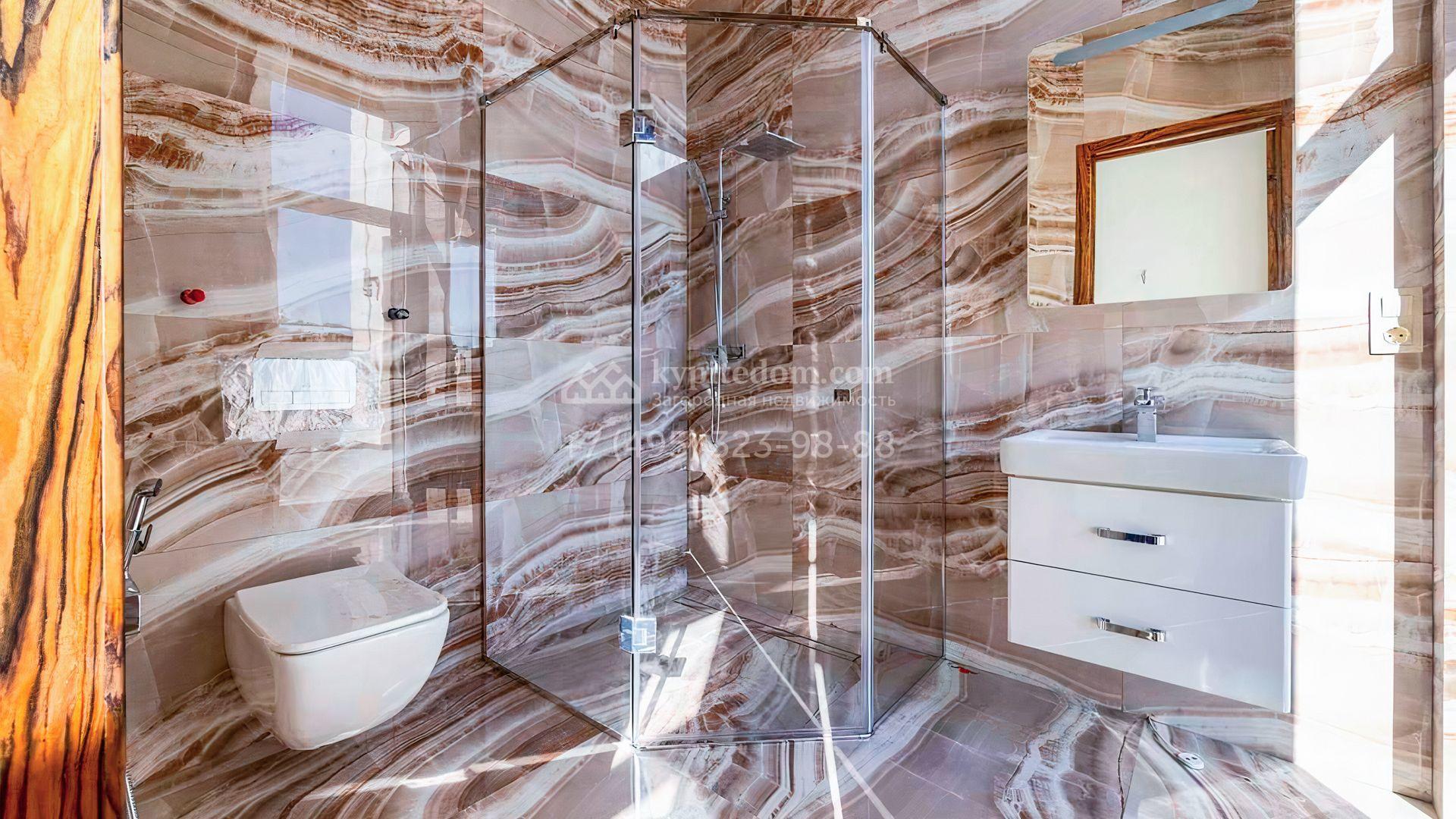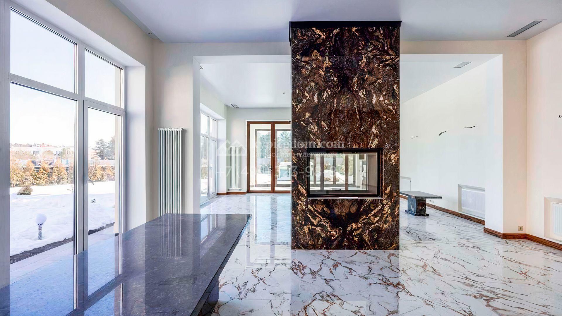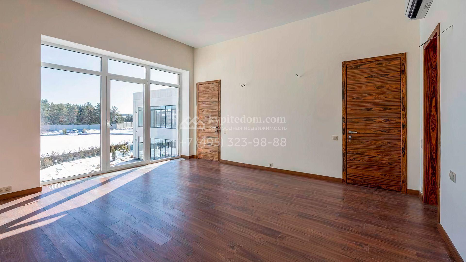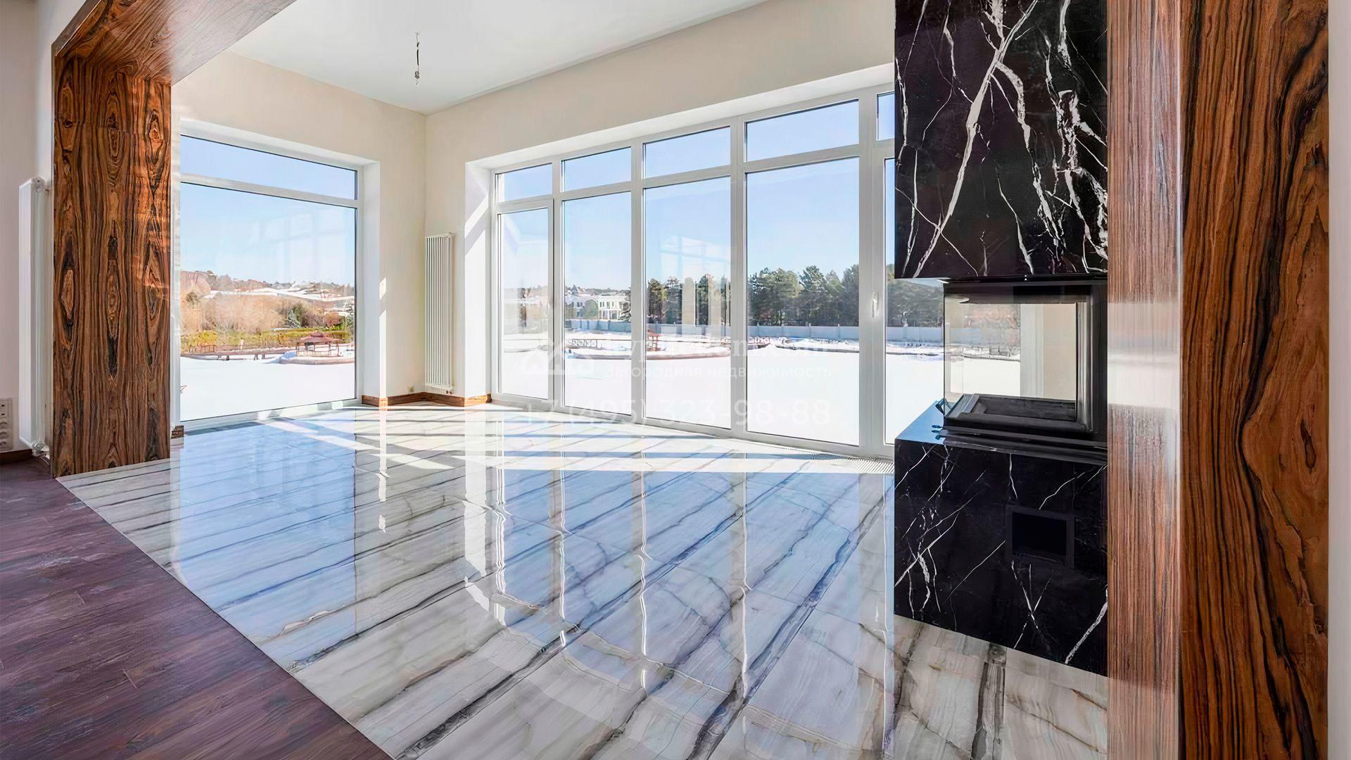 Загородный дом в современном стиле площадью 1150 м² построен на участке 16 соток на берегу озера. Светло-бежевый фасад украсили рустовкой и подсветкой, установлено панорамное остекление. Интерьер выполнен в светлых оттенках с использованием в оформлении натуральных материалов. В коттедже спланировали восемь спален, кухню, гостиную с камином, столовую, спа-зону с хаммамом, сауной, джакузи и выходом к открытому бассейну с подогревом. Предусмотрены квартира для персонала и два гаража на две машины каждый. На участке выполнен ландшафтный дизайн, высажены деревья, выложены дорожки и оборудовано уличное освещение.