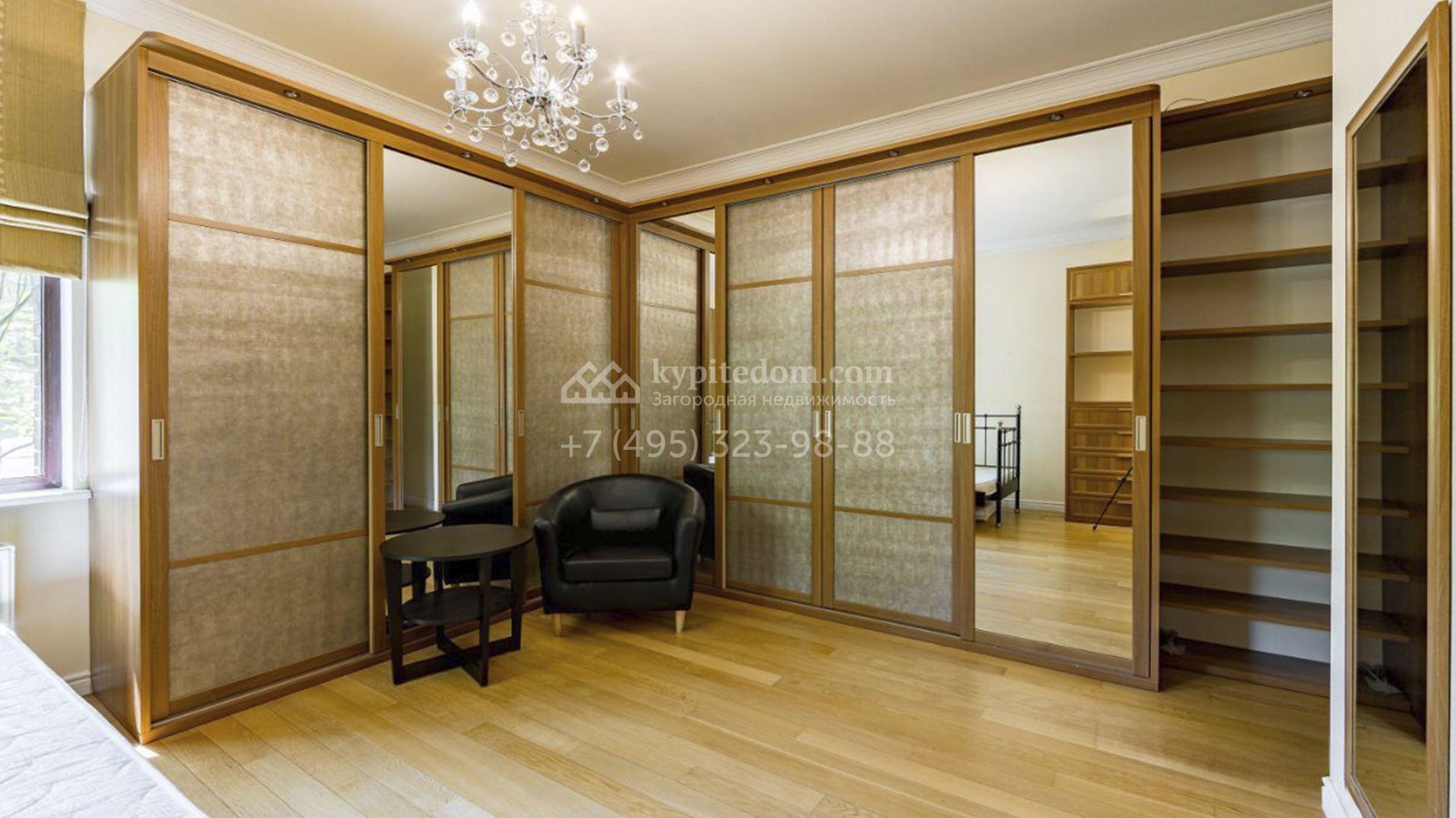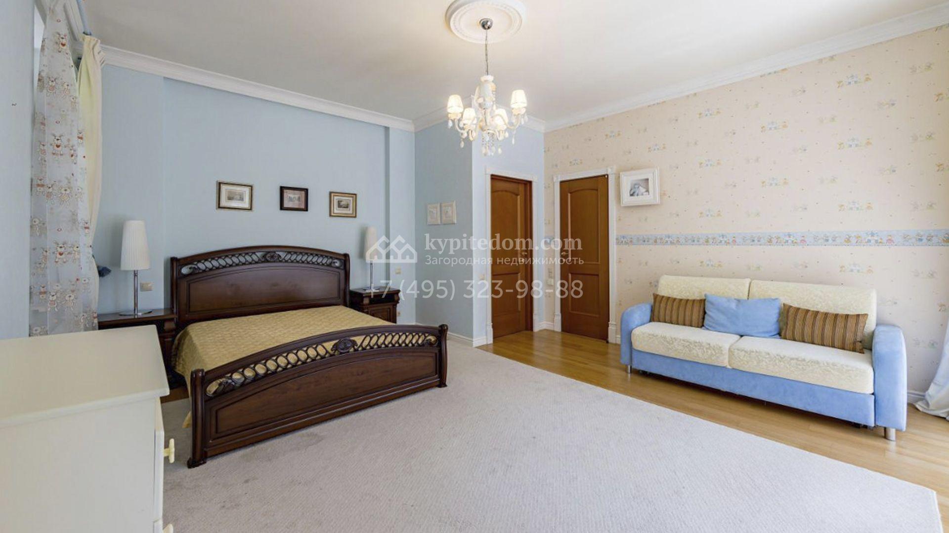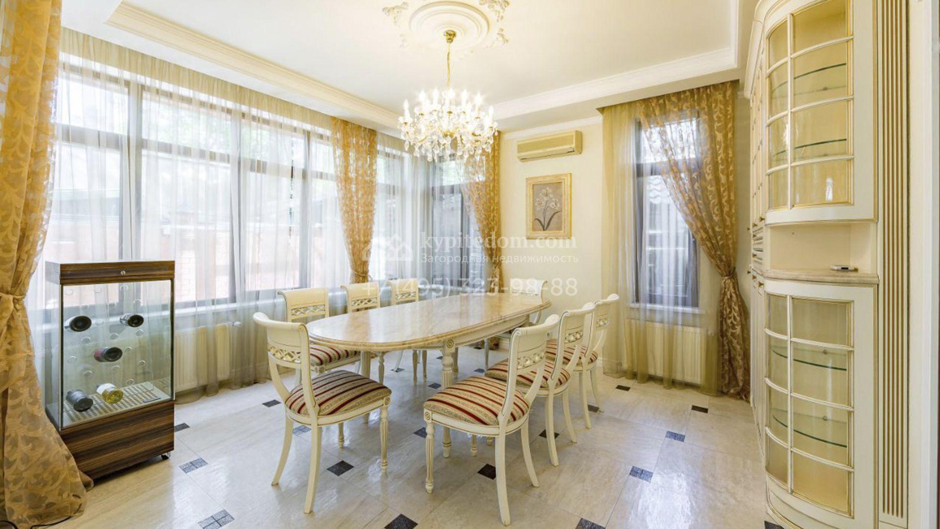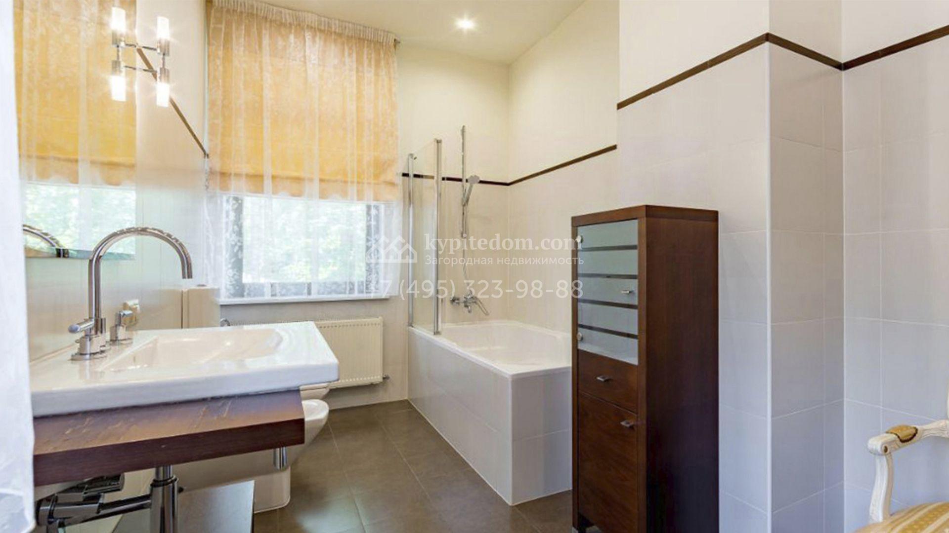 Загородный дом площадью 300 м² расположен на лесном участке 12 соток. Современный фасад облицован темной клинкерной плиткой и деревом. Интерьер выполнен в классическом стиле в светлых тонах, декорирован лепниной, позолотой, ажурными светильниками. В коттедже разместили 3 спальни, уютную гостиную с выходом в зимний сад, кухню, столовую, кабинет и тренажерный зал. На участке построен деревянный гостевой дом, выполнен ландшафтный дизайн, вымощены дорожки и оборудовано уличное освещение.