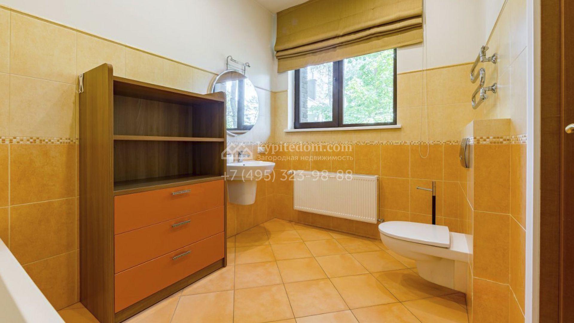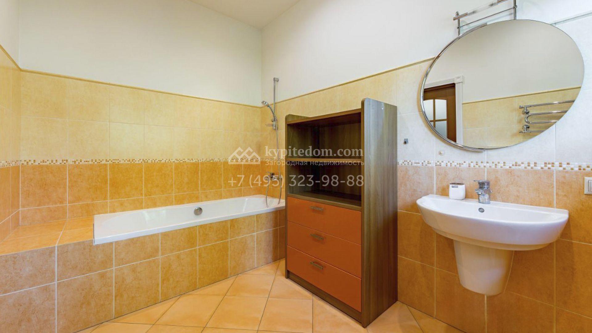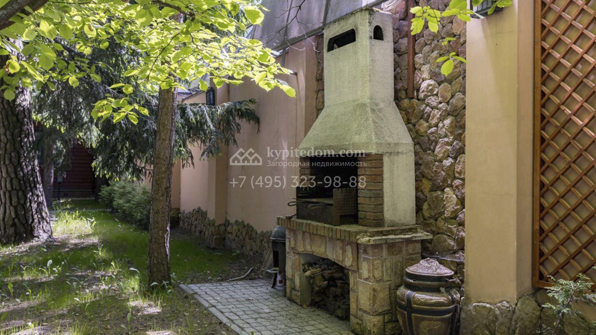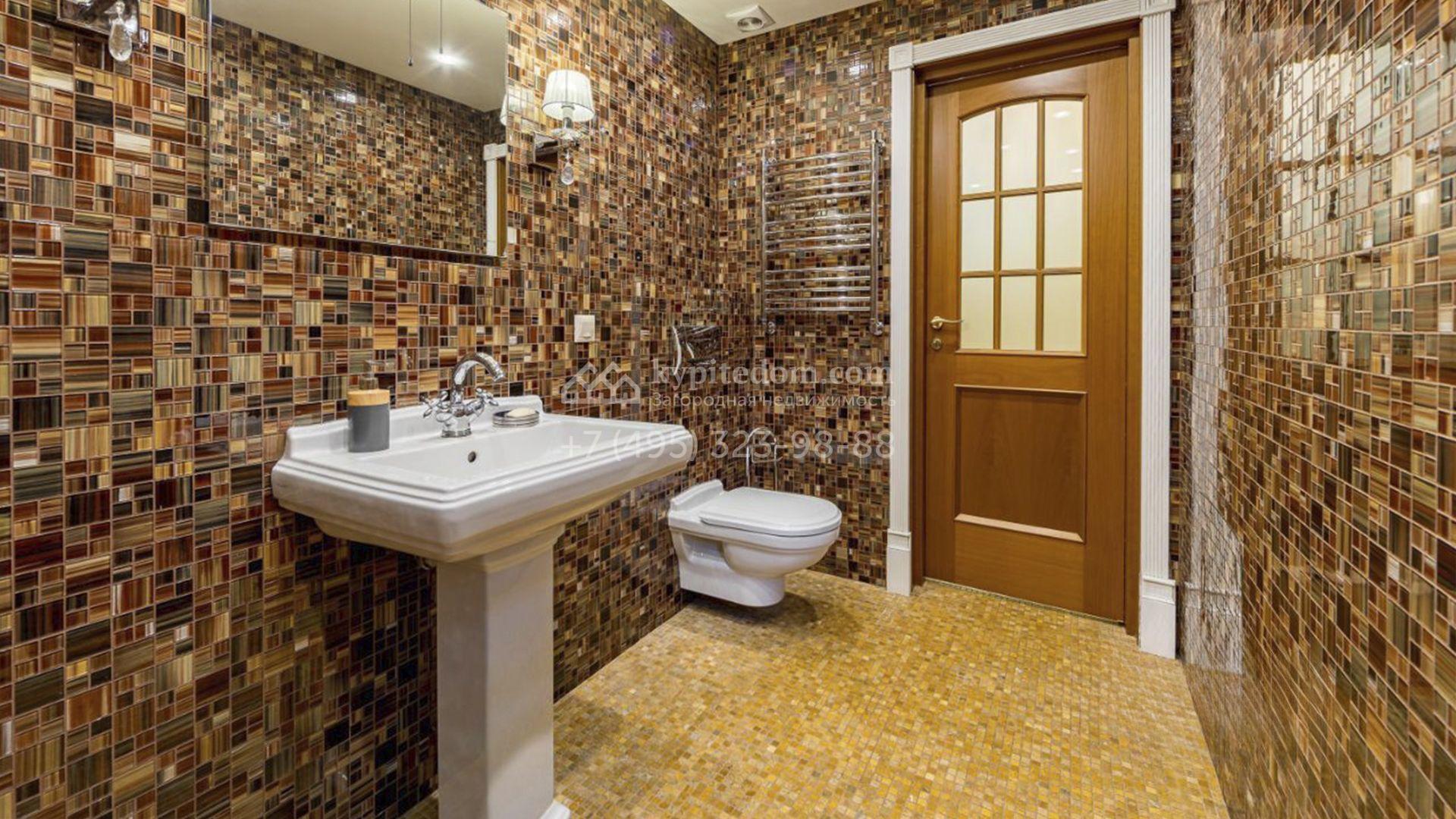 Загородный дом площадью 300 м² расположен на лесном участке 12 соток. Современный фасад облицован темной клинкерной плиткой и деревом. Интерьер выполнен в классическом стиле в светлых тонах, декорирован лепниной, позолотой, ажурными светильниками. В коттедже разместили 3 спальни, уютную гостиную с выходом в зимний сад, кухню, столовую, кабинет и тренажерный зал. На участке построен деревянный гостевой дом, выполнен ландшафтный дизайн, вымощены дорожки и оборудовано уличное освещение.