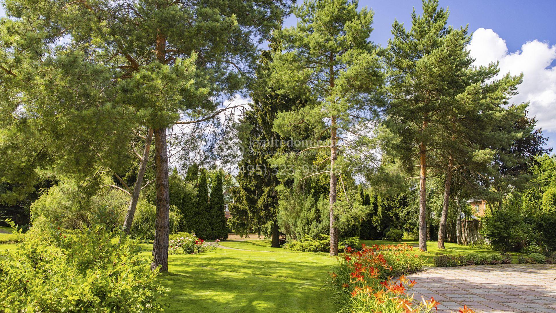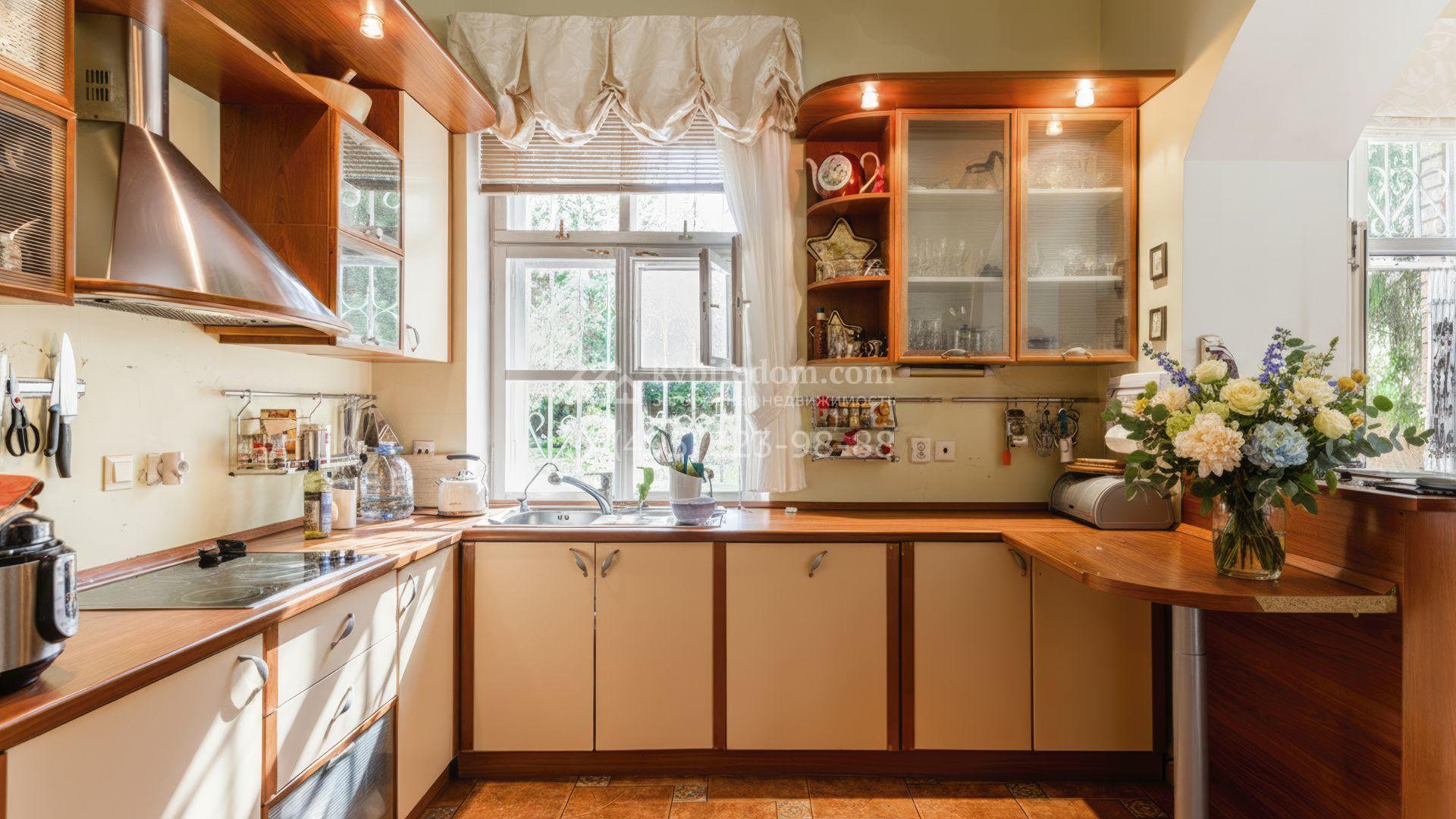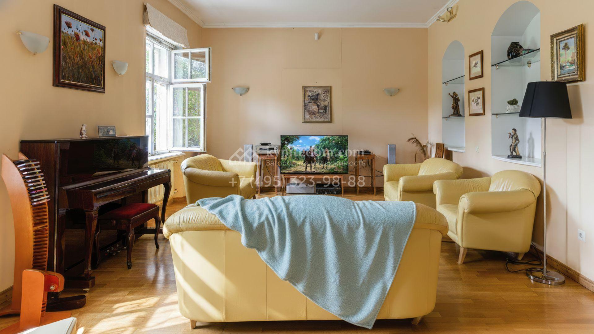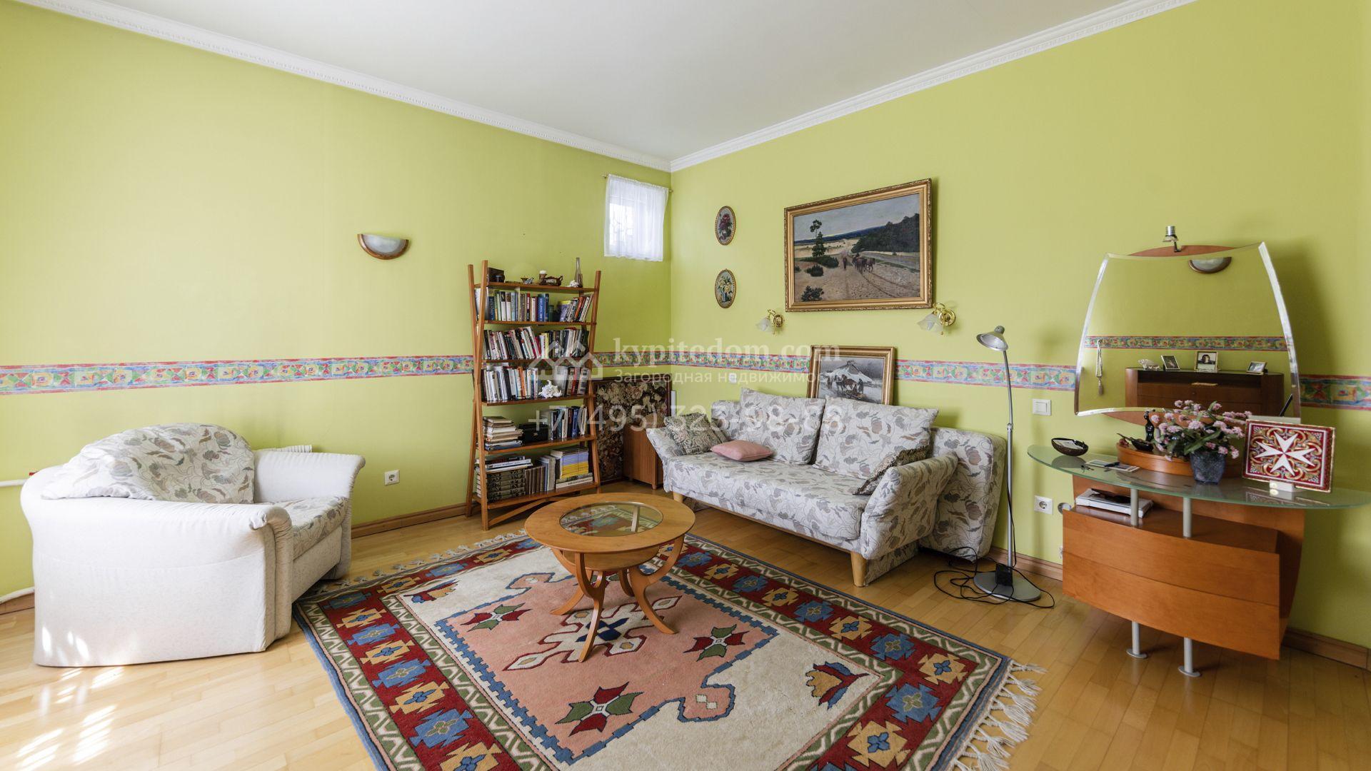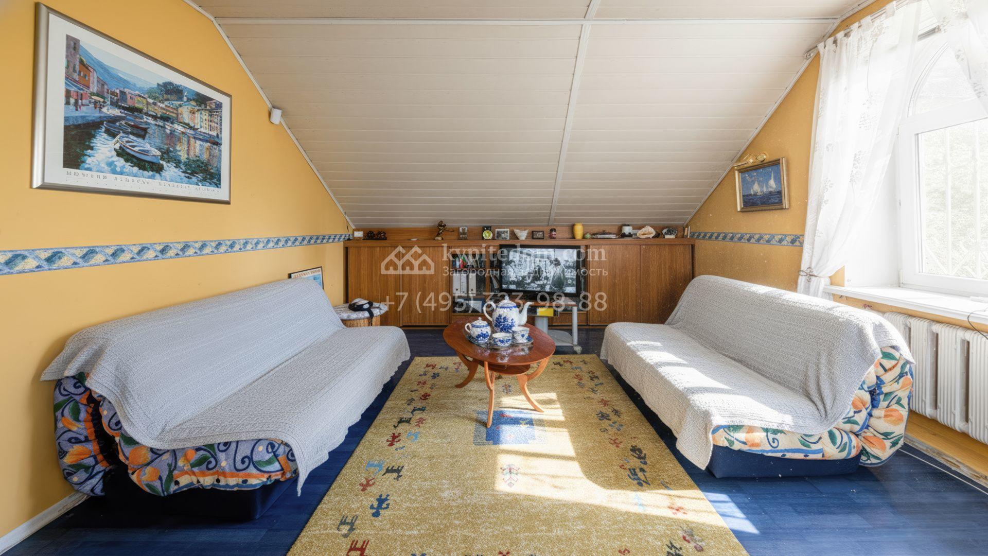 Загородный дом площадью 350 м² построен на просторном участке 66 соток с многолетними соснами и березами. Фасад здания облицован красным клинкерным кирпичом, декорирован белыми вставками и коваными элементами. Интерьер оформлен в пастельных оттенках, создающих атмосферу уюта. Планировка коттеджа включает 3 спальни, кухню-гостиную и пространство мансарды с хаммамом, кабинетом, зоной отдыха с бильярдной и мини-кухней. В контуре дома расположен гараж. Лесной участок облагорожен ландшафтным дизайном — вымощены дорожки, высажены цветы и кустарники, засеян газон, также на территории расположены теннисный корт и хозблок. Из деревянной беседки с дровяным камином открывается вид на собственный пруд с водопадом.