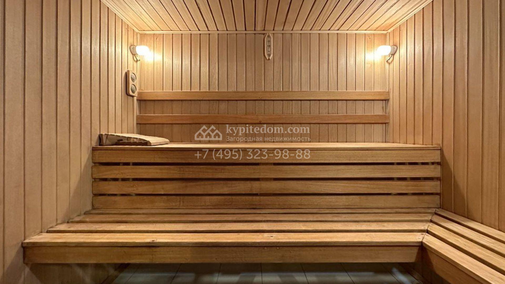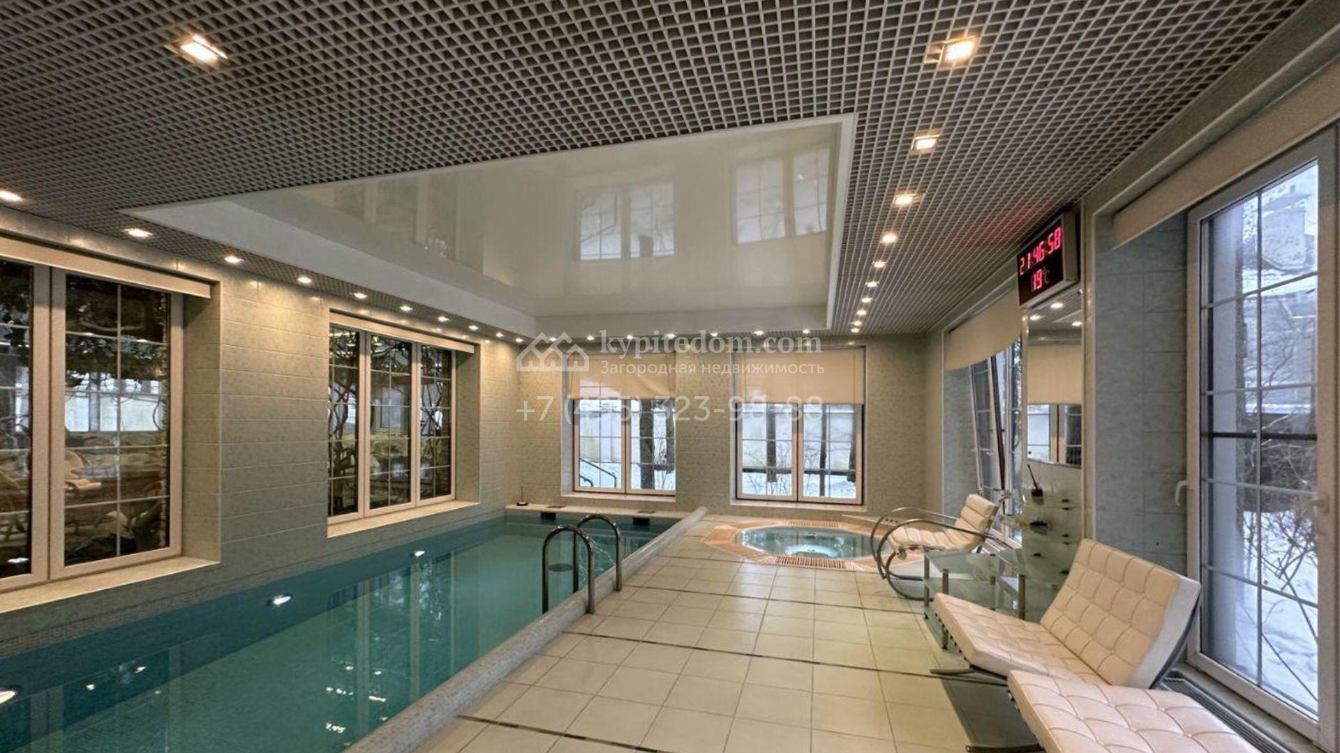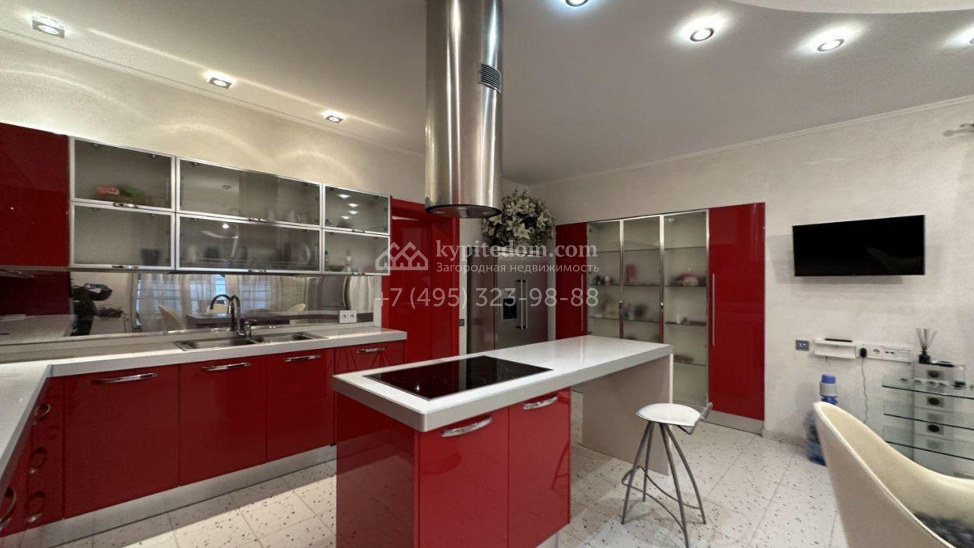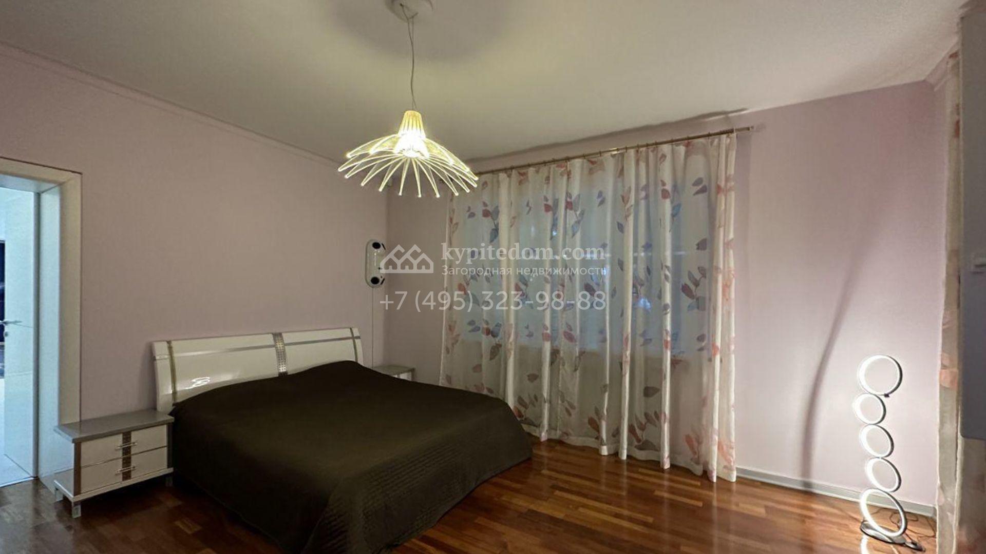 Загородный дом площадью 650 м² построен на просторном участке 40 соток с лесными деревьями. Фасад здания выполнен в современном стиле и облицован бежевой штукатуркой. В отделке интерьера преобладают мягкие оттенки в сочетании с яркими акцентами. Планировка резиденции включает 3 спальни, гостиную с камином, кухню, кабинет, зимний сад, тренажерный зал и игровую. Предусмотрен гараж на 2 машины с парковкой на 3 машины. На участке выполнен ландшафтный дизайн и расположен дом для охраны и персонала.