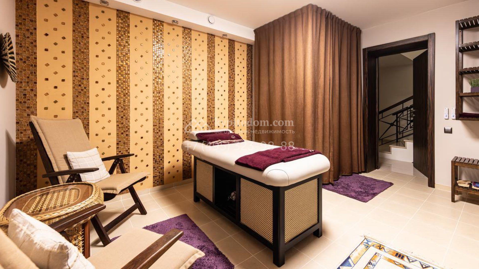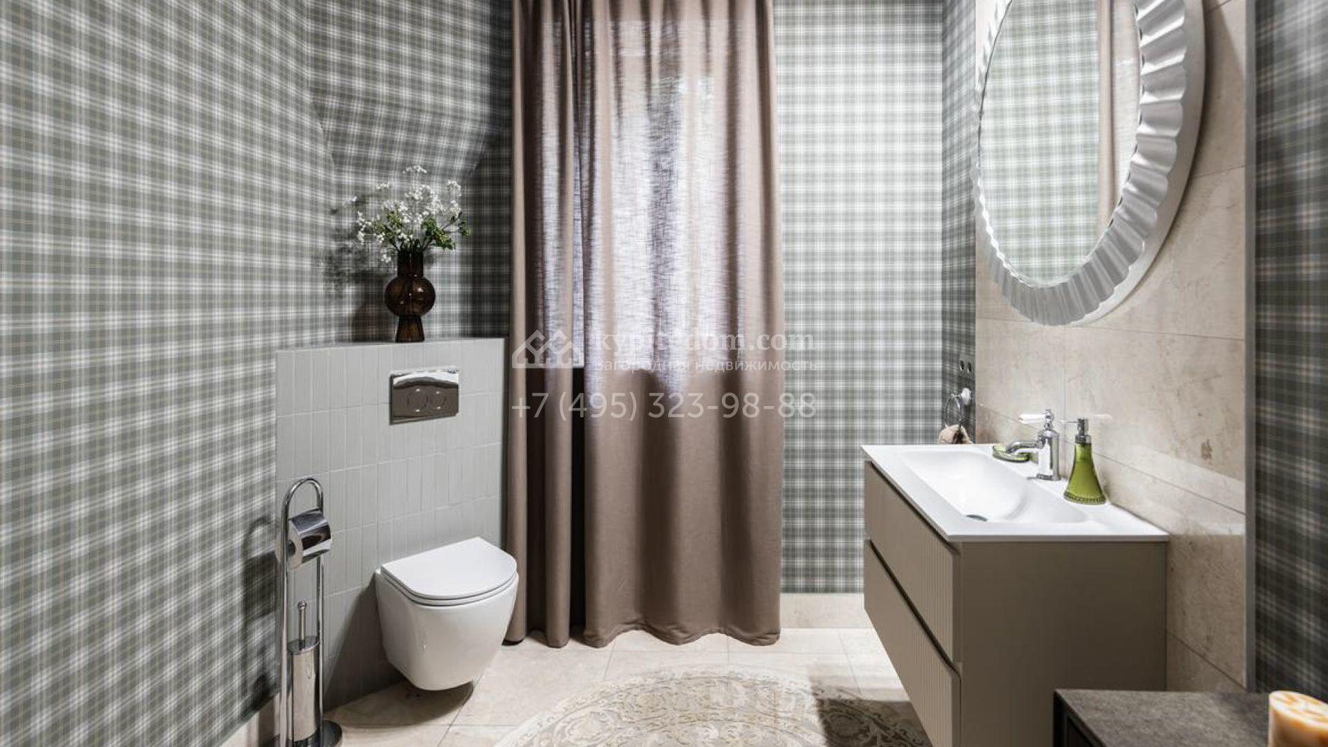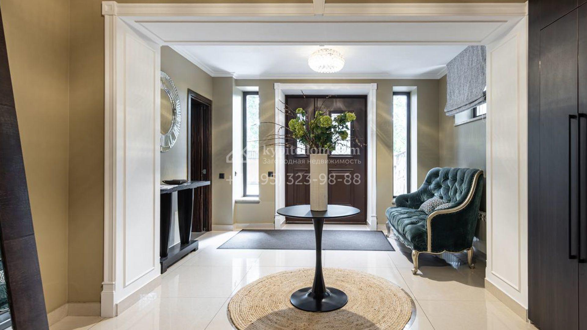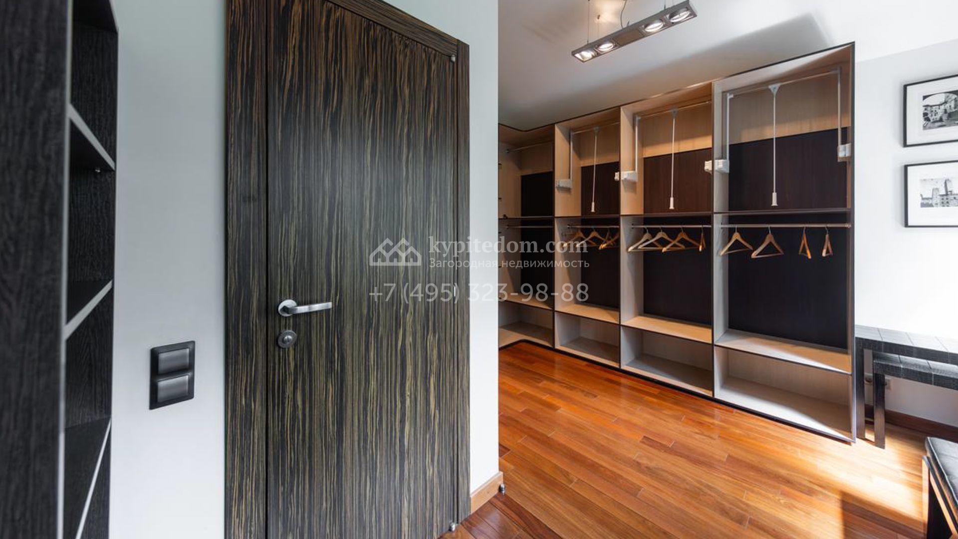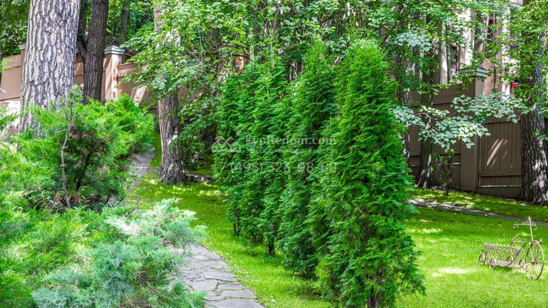 Большой двухэтажный дом 822 м² в современном стиле построен на лесном участке с сильным перепадом высот. Фасад с панорамными окнами и балконами облицован темным деревом и светлыми панелями. Цокольный этаж дома занимает бассейн и встроенный гараж с прямым выездом на лицу. В гостиной с камином спланировали второй свет — за счет этого помещение кажется очень просторным. На втором и мансардном этаже разместили спальни хозяев и тренажерный зал. Интерьер дома выдержан в современном стиле, каждая комната в своем цвете. На участке 15 соток растут вековые лесные деревья и декоративные туи, у дома в зоне патио установлен мангал.