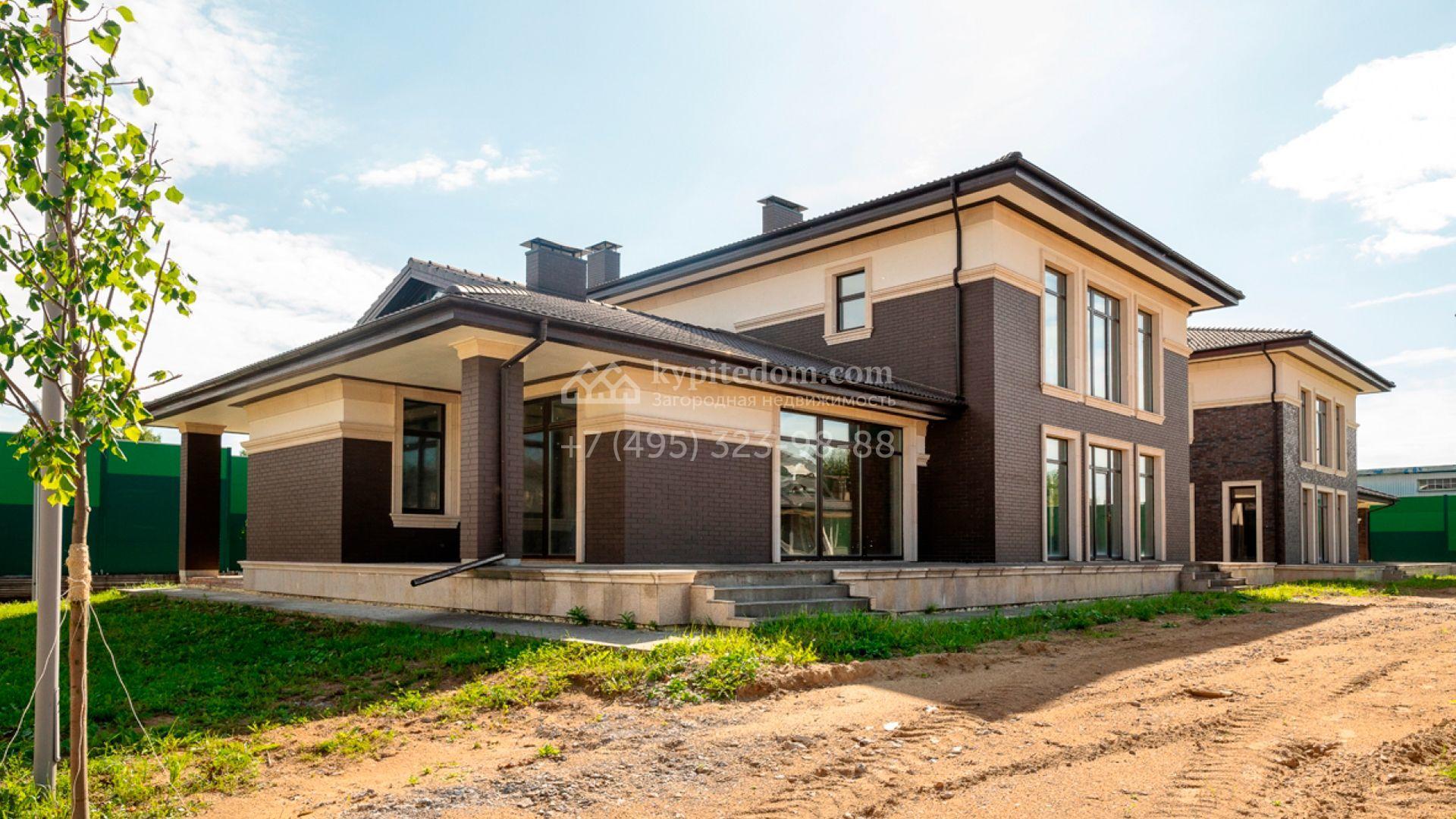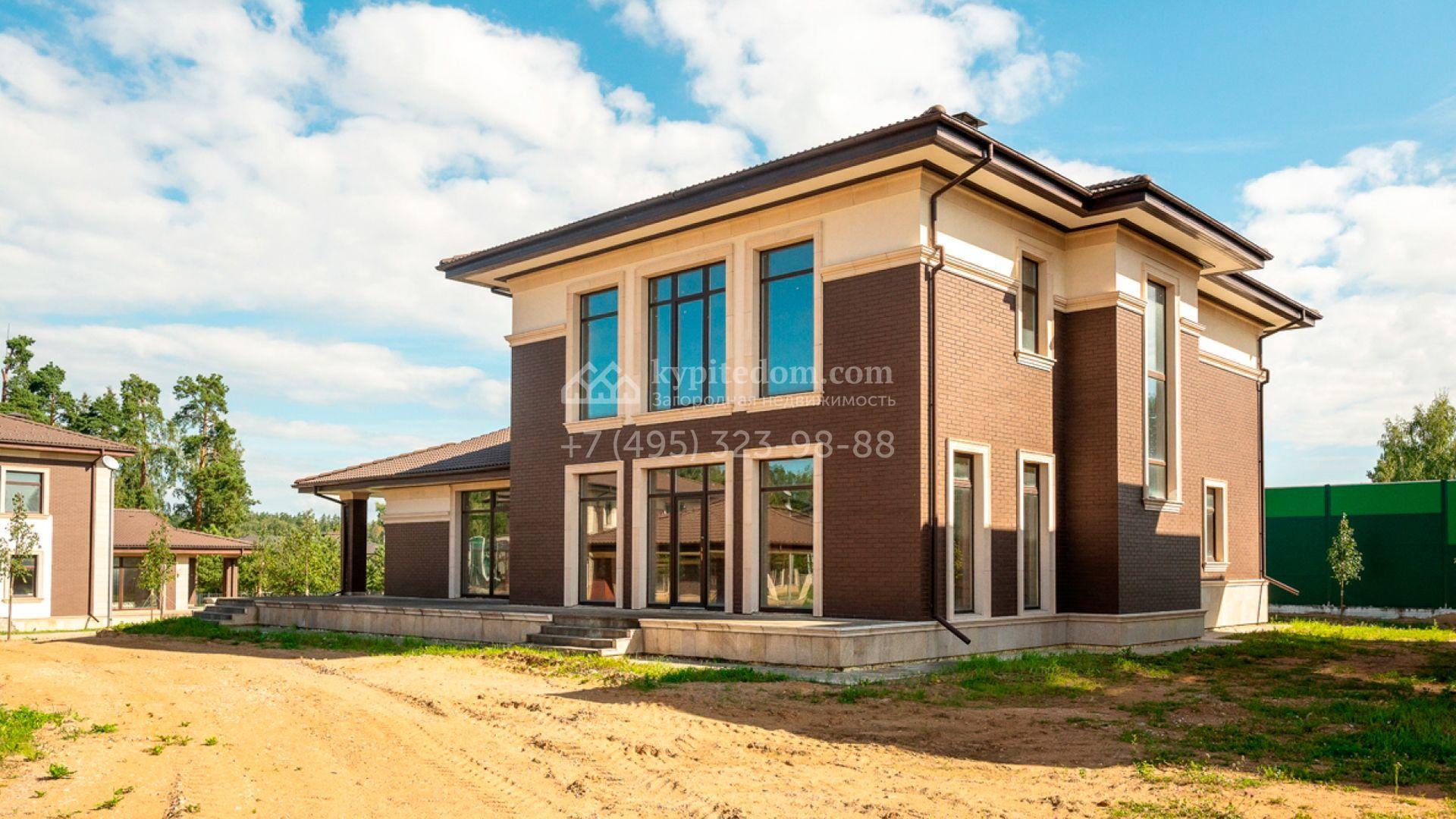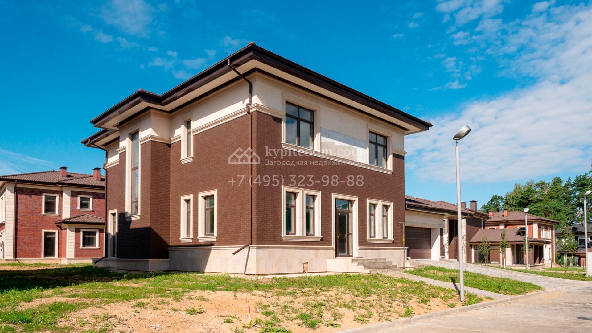 Двухэтажный дом в европейском стиле площадью 372 м² построен по проекту «Лион» на участке 9,2 соток на тихом краю поселка. Фасад загородной резиденции облицован темным клинкерным кирпичом, искусственным камнем и светлой штукатуркой. На первом этаже спланировано помещение гаража для двух машин. Интерьеры представлены с предчистовой отделкой white box. В доме можно разместить до трёх спален с санузлами, просторную кухню-гостиную с выходом на террасу, кабинет и кладовые-гардеробные.