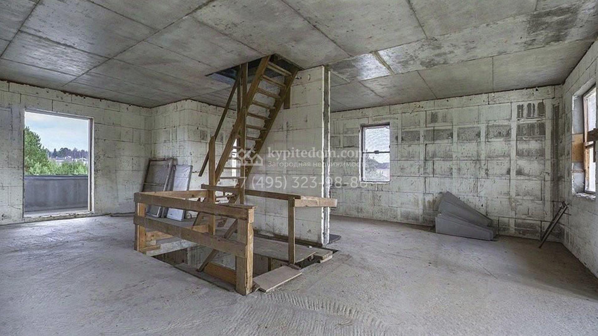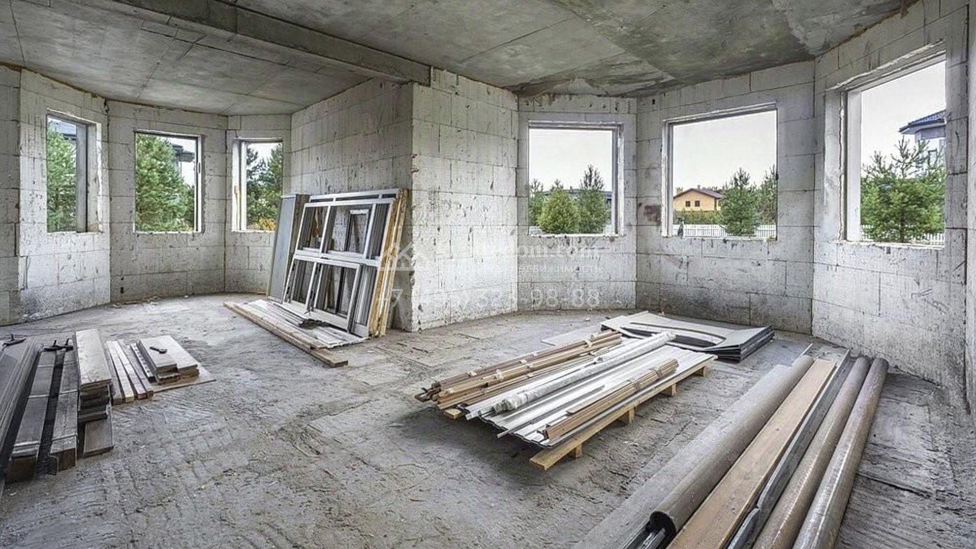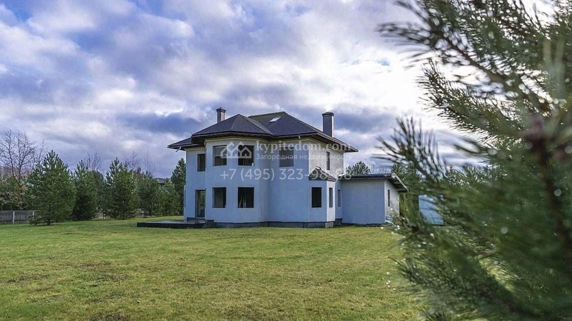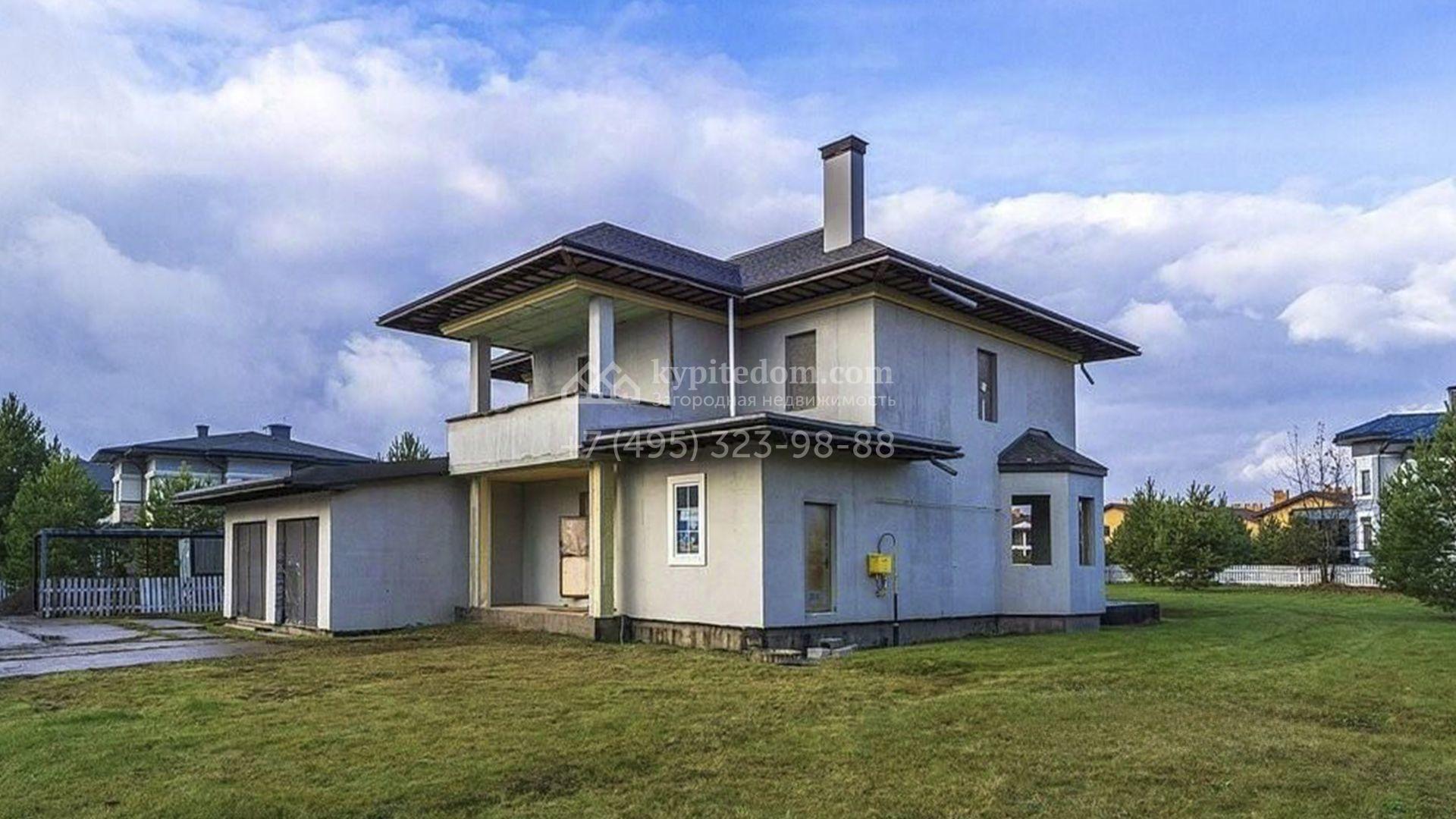 Новый загородный дом площадью 307 м² расположен на полевом участке 30 соток. Фасад выполнен в современном стиле и дополнен эркерами. Коттедж без отделки позволяет будущим владельцам организовать пространство по собственному усмотрению. Планировка включает гостиную, кухню-столовую, 3 спальни, кабинет и помещение свободного назначения, которое можно будет использовать как бильярдную или библиотеку. Также в контуре дома предусмотрен гараж на 2 машины площадью 48,7 м². На просторном участке засеян газон. Рядом с основным зданием можно построить уютную беседку для барбекю, детскую площадку и разбить плодовый сад.