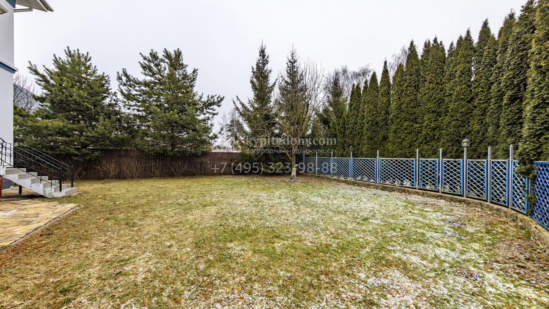 Внутри трехуровнего дома спланировали уютную гостиную, оборудованную техникой кухню, столовую с выходом на участок, 3 спальни, включая мастер-спальню с гардеробной и 2 комнаты свободного назначения, в которых можно разместить кабинет и спортивный зал. На территории выполнен ландшафтный дизайн, засеян газон, растут высокие туи и ели, высажены кустарники и вымощены дорожки.