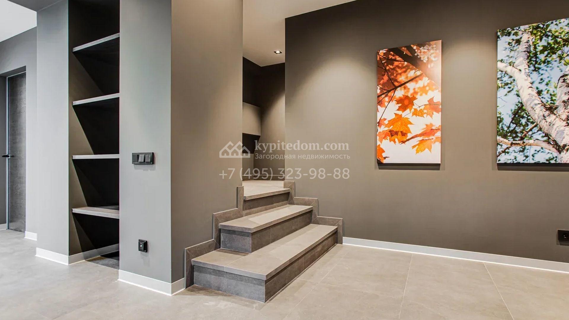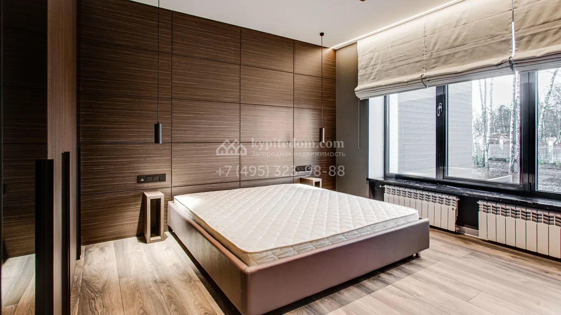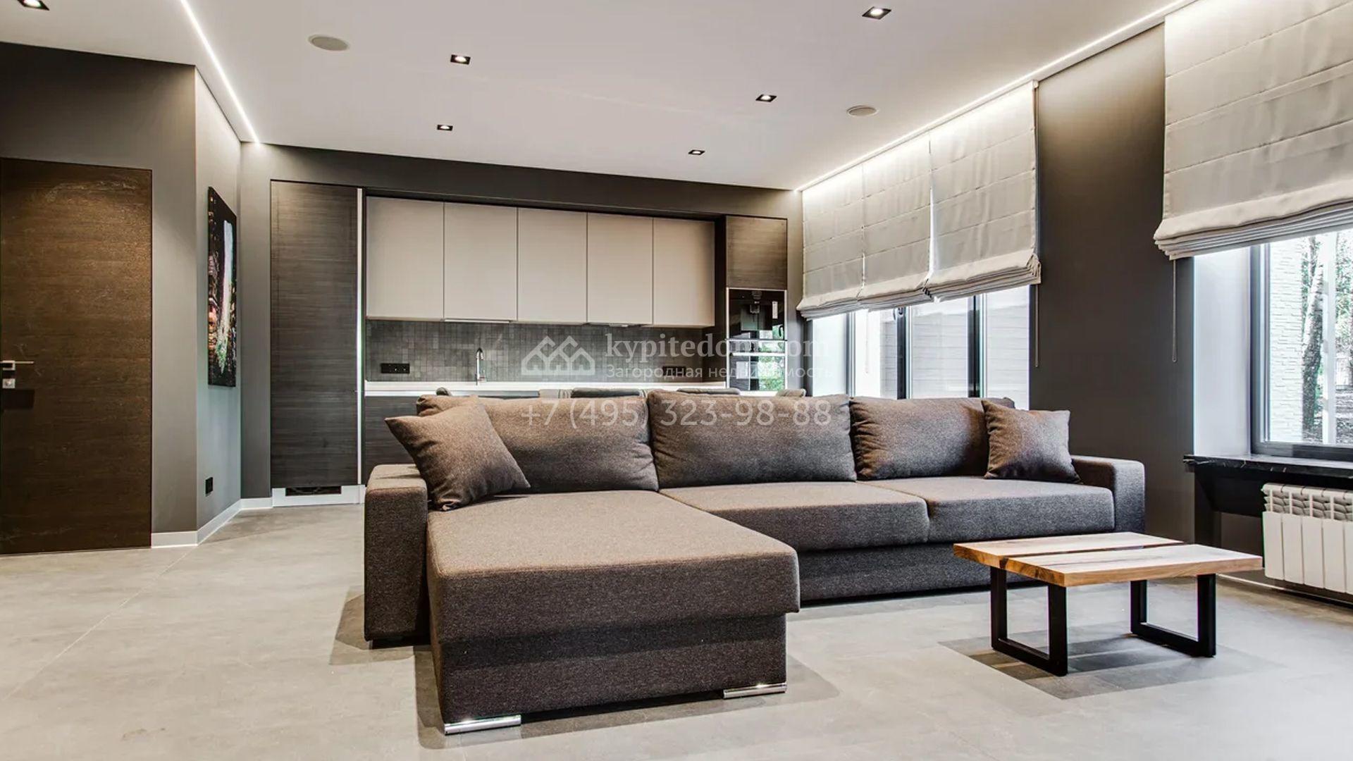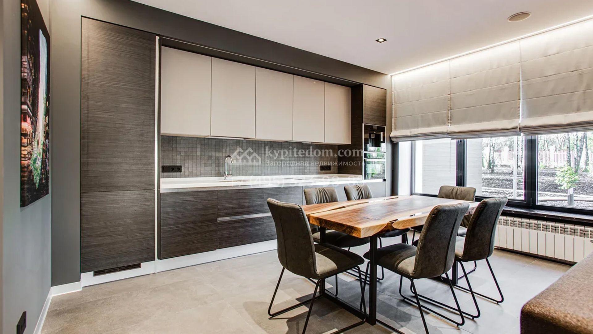 Уютный загородный дом площадью 140 м² в современном стиле расположен на просторном участке 85 соток с соснами, березами и елями. Лаконичный белый фасад дома «составлен» из простых геометрических форм и облицован штукатуркой. На первом этаже расположена кухня-гостиная-столовая в темных сдержанных тонах. На втором этаже 3 спальни в едином современном стиле. Дом полностью меблирован, оборудован выстроенной бытовой техникой и сантехникой. На участке вымостили дорожки, провели уличное освещение. Для детей установили игровую площадку. Машину можно оставить на одном из восьми парковочных мест на территории участка.