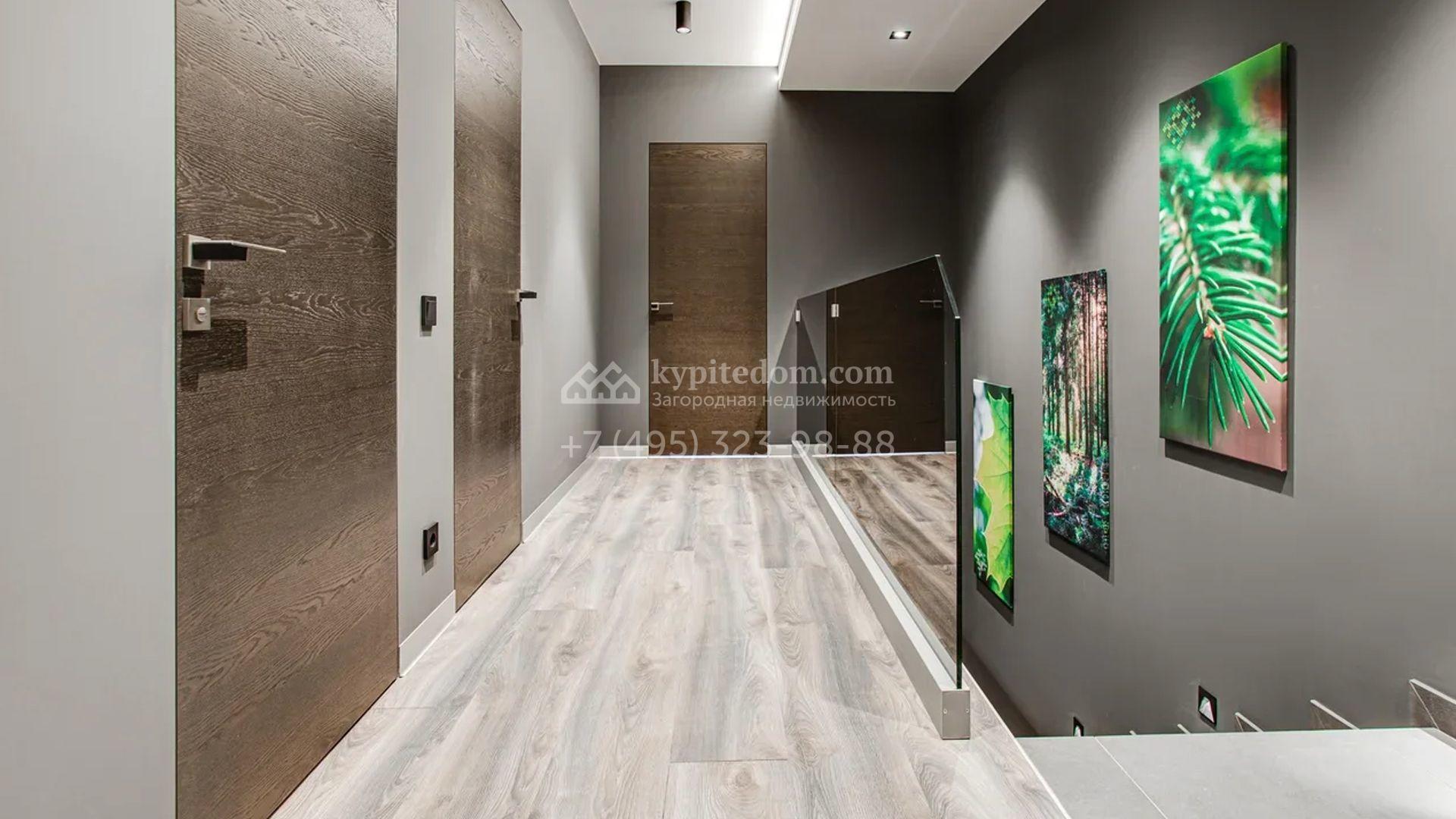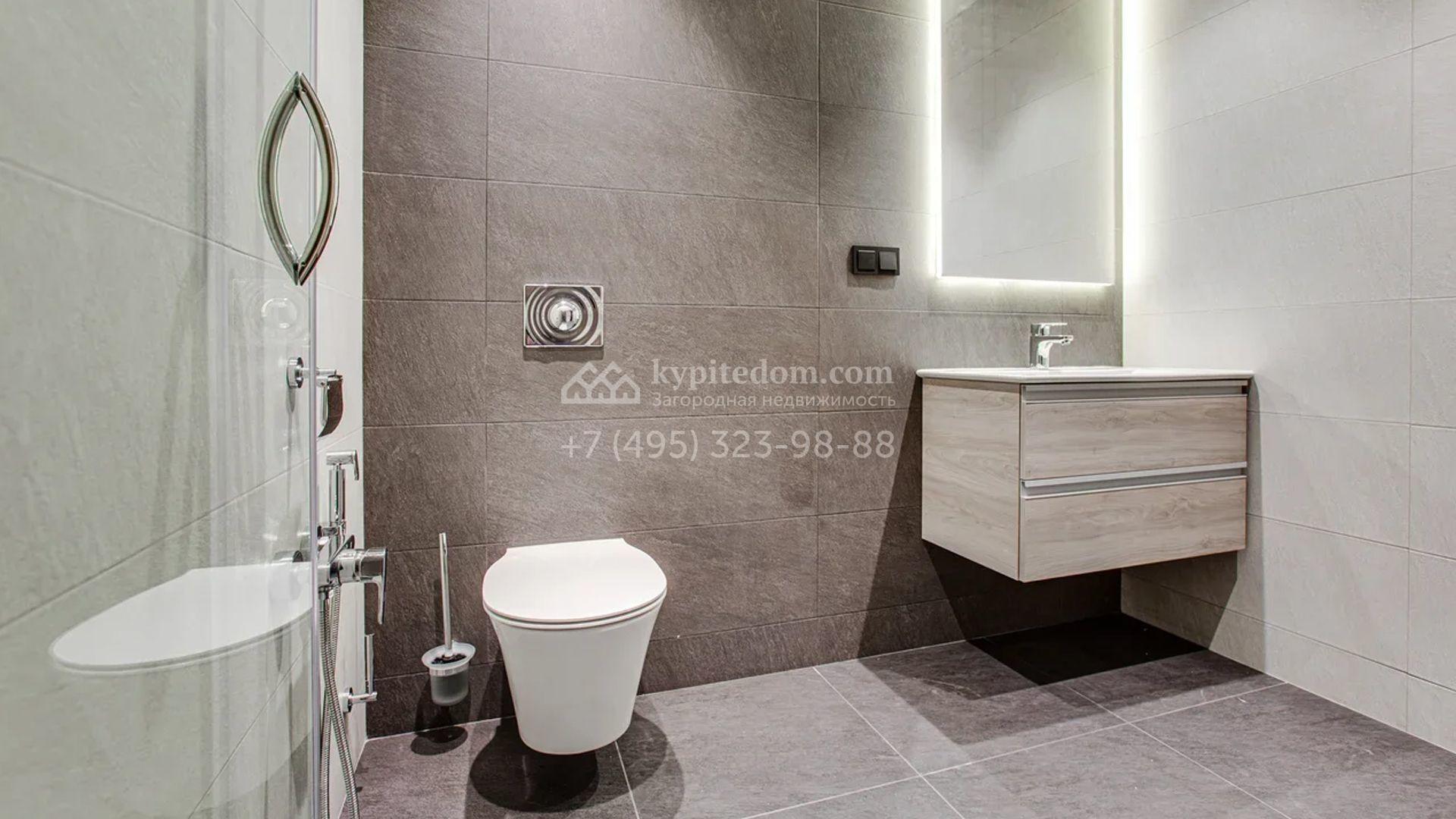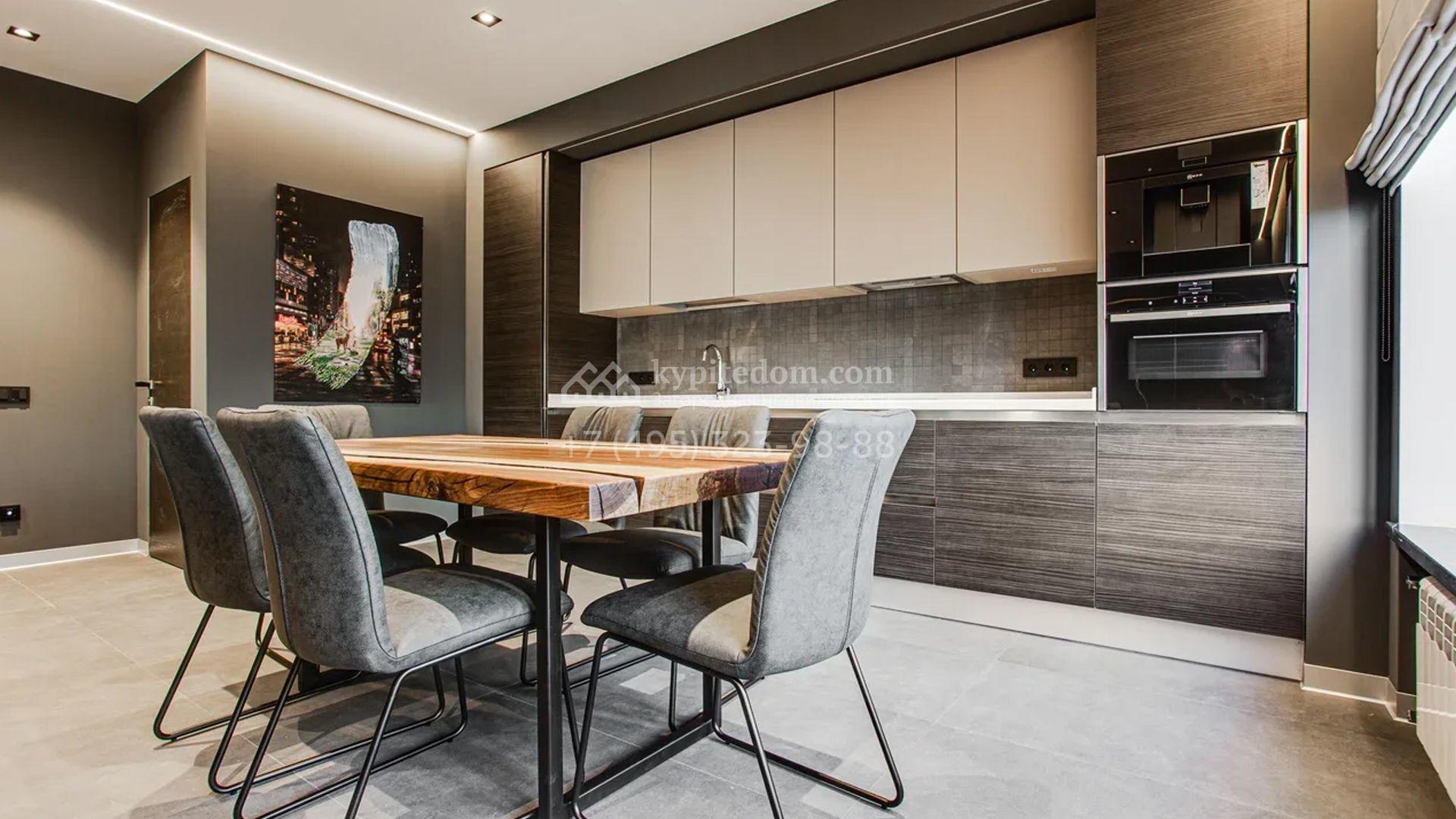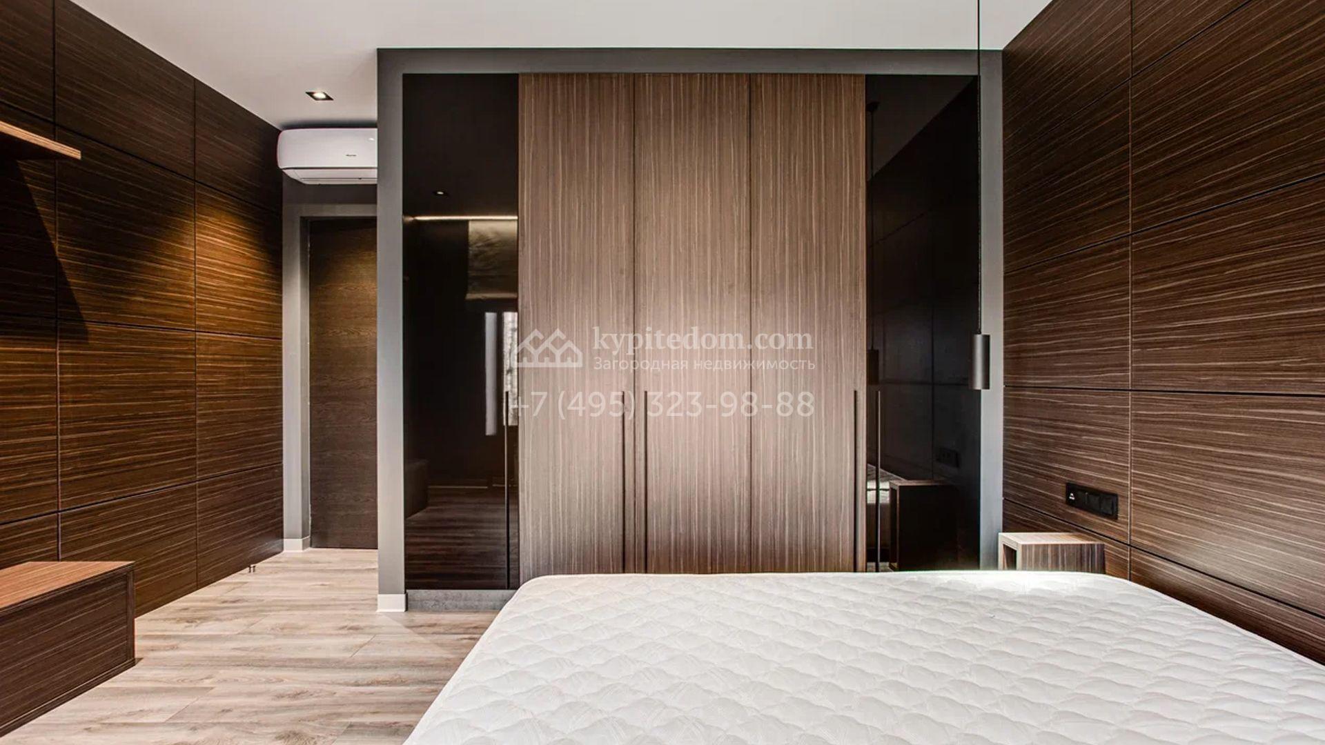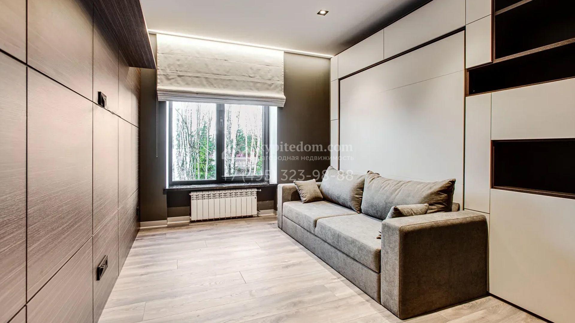 Уютный загородный дом площадью 140 м² в современном стиле расположен на просторном участке 85 соток с соснами, березами и елями. Лаконичный белый фасад дома «составлен» из простых геометрических форм и облицован штукатуркой. На первом этаже расположена кухня-гостиная-столовая в темных сдержанных тонах. На втором этаже 3 спальни в едином современном стиле. Дом полностью меблирован, оборудован выстроенной бытовой техникой и сантехникой. На участке вымостили дорожки, провели уличное освещение. Для детей установили игровую площадку. Машину можно оставить на одном из восьми парковочных мест на территории участка.