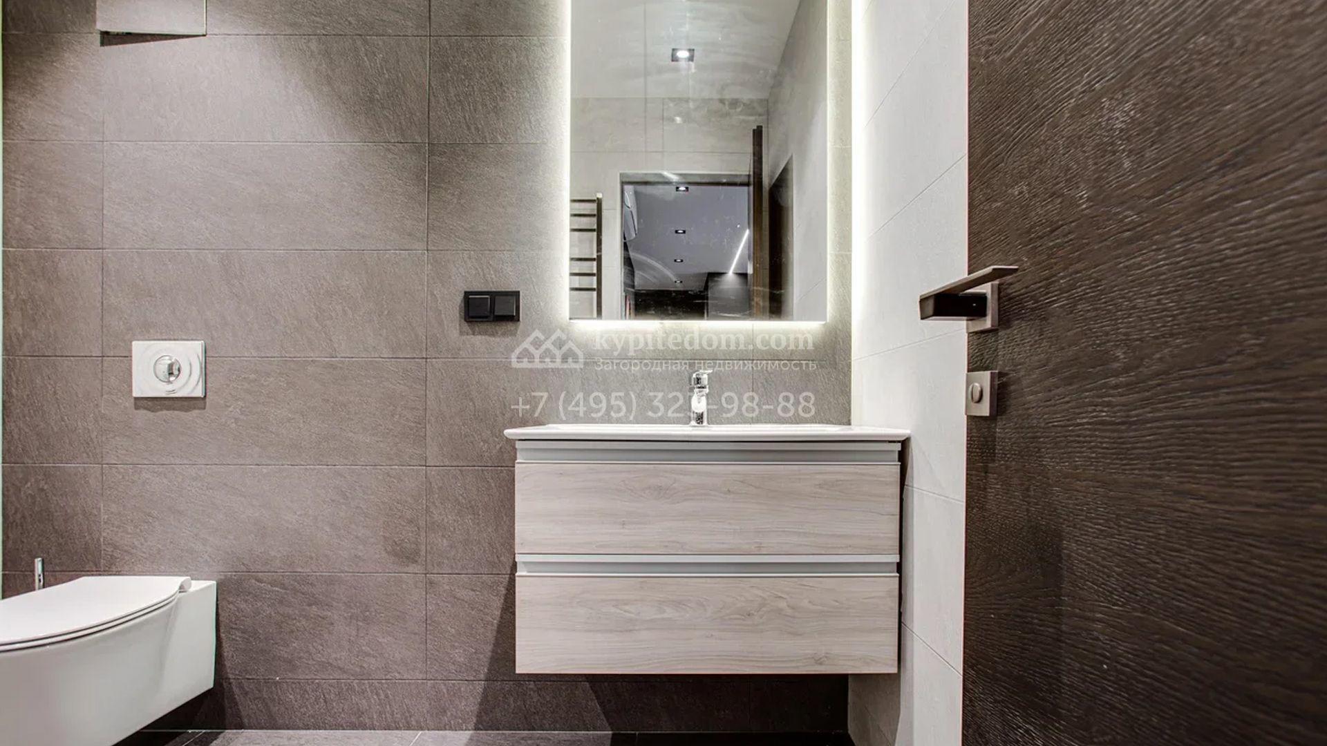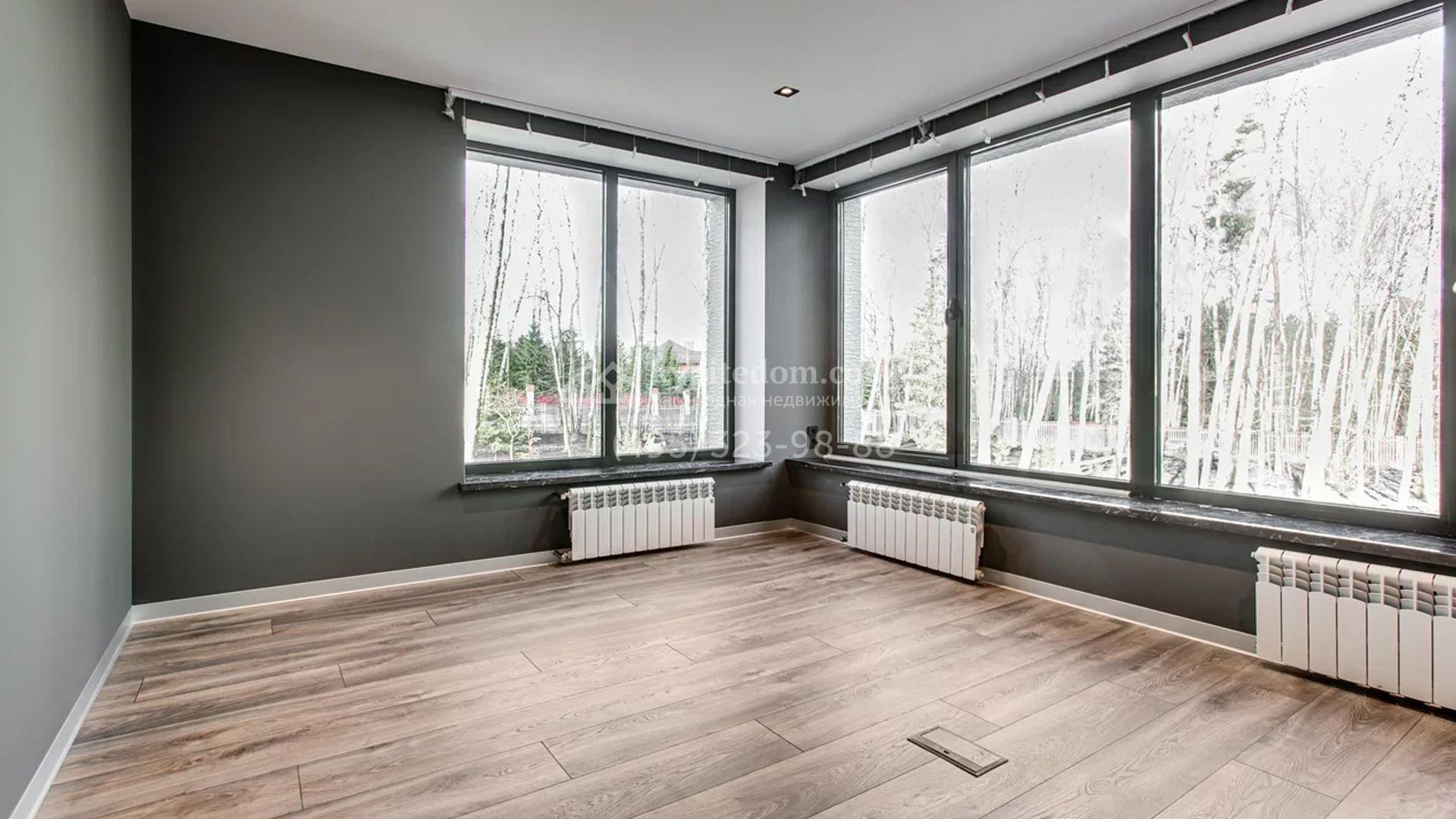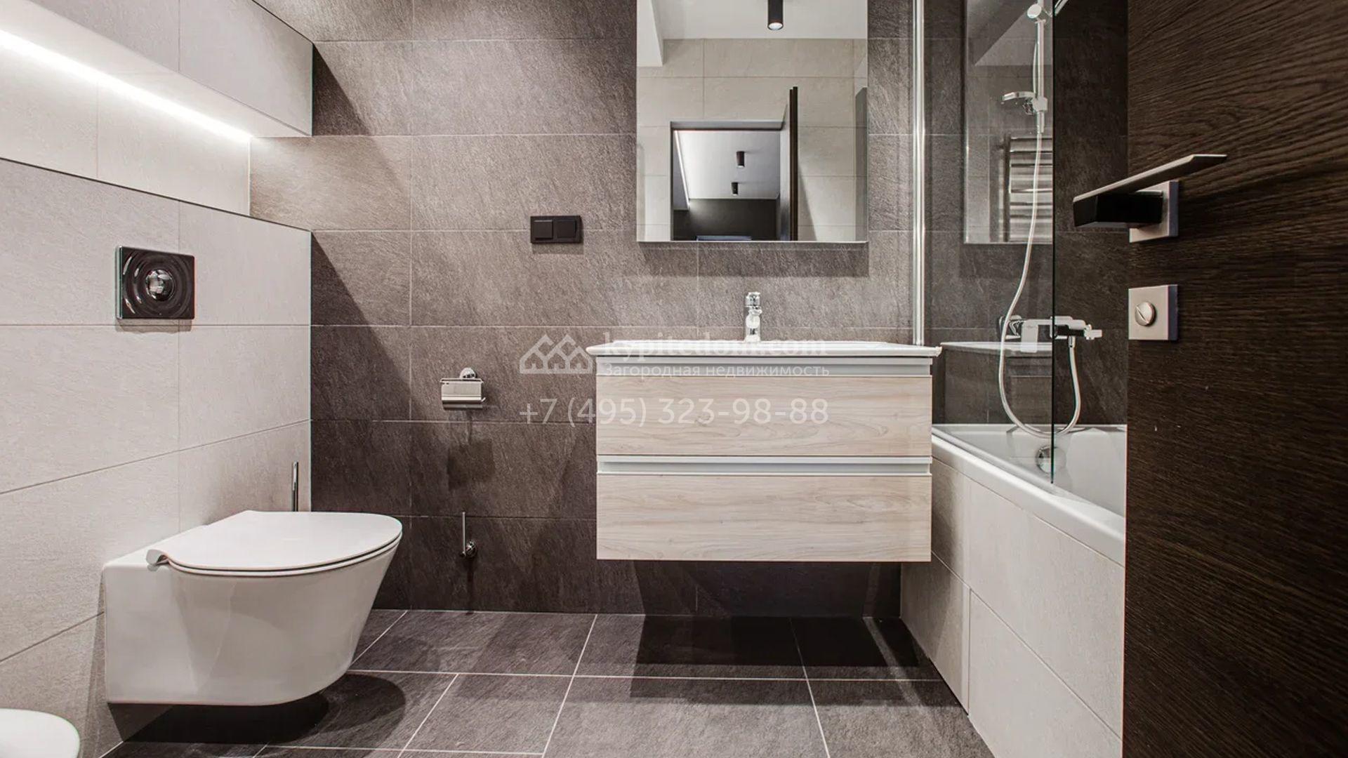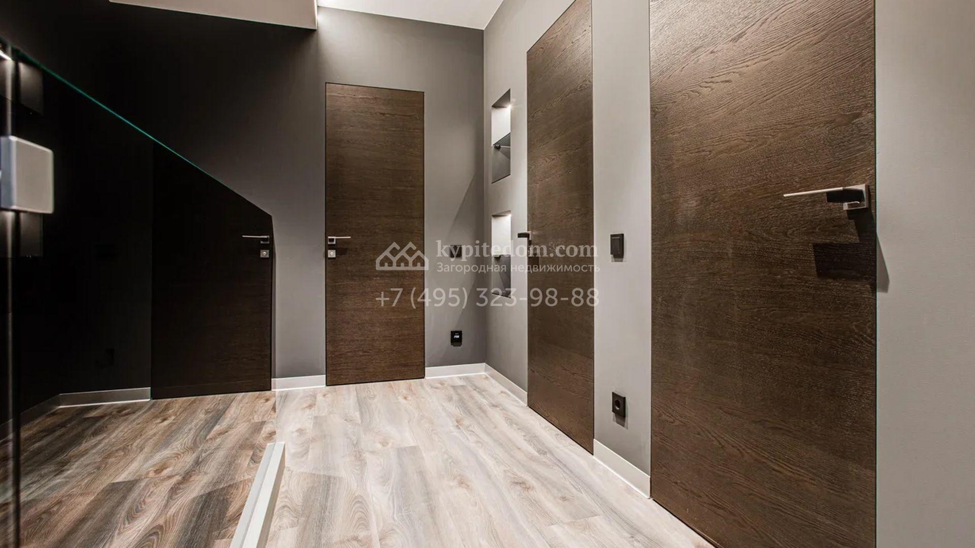 Уютный загородный дом площадью 140 м² в современном стиле расположен на просторном участке 85 соток с соснами, березами и елями. Лаконичный белый фасад дома «составлен» из простых геометрических форм и облицован штукатуркой. На первом этаже расположена кухня-гостиная-столовая в темных сдержанных тонах. На втором этаже 3 спальни в едином современном стиле. Дом полностью меблирован, оборудован выстроенной бытовой техникой и сантехникой. На участке вымостили дорожки, провели уличное освещение. Для детей установили игровую площадку. Машину можно оставить на одном из восьми парковочных мест на территории участка.