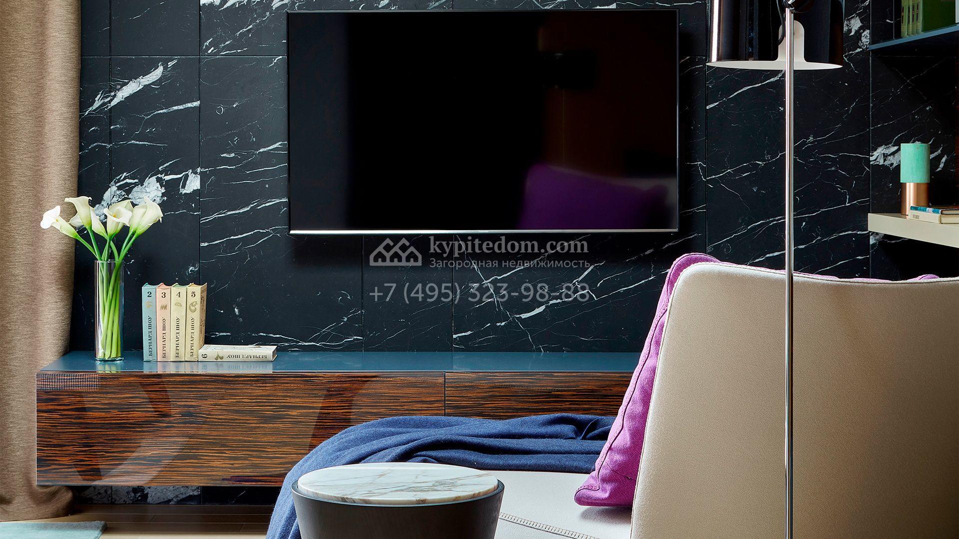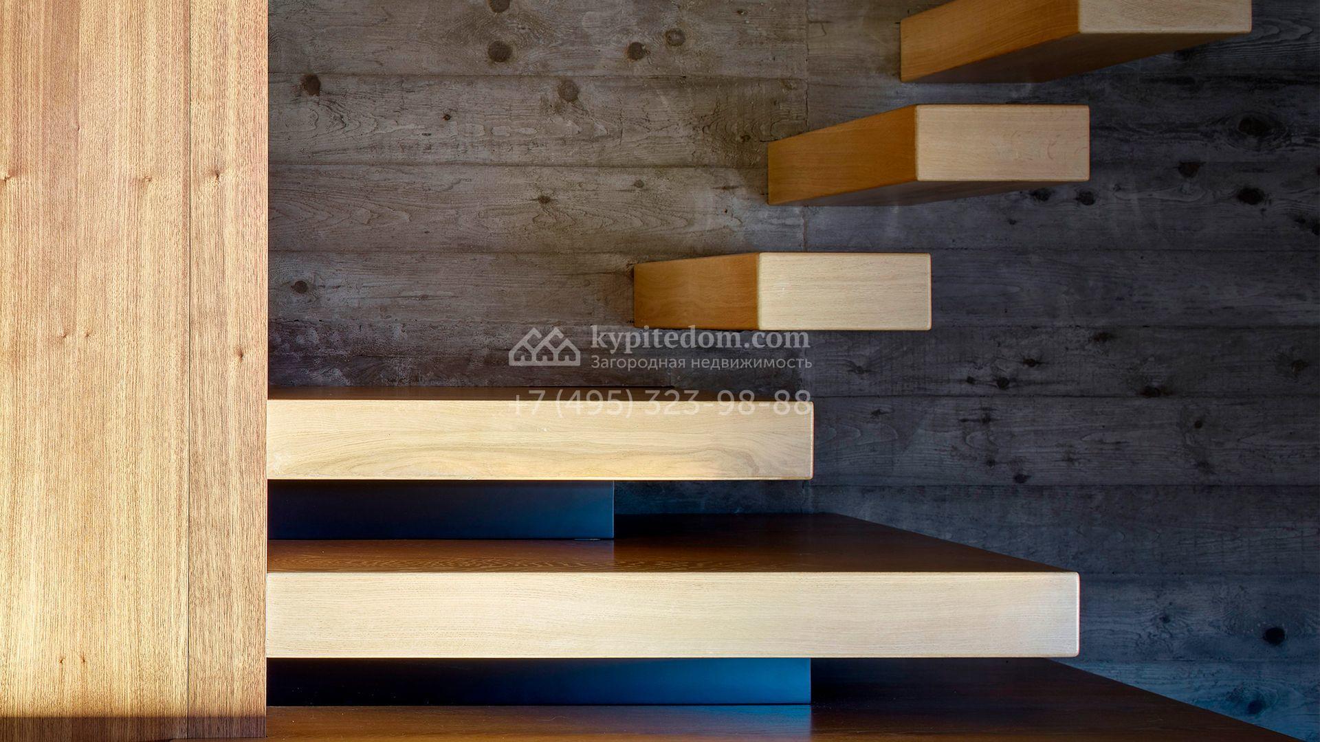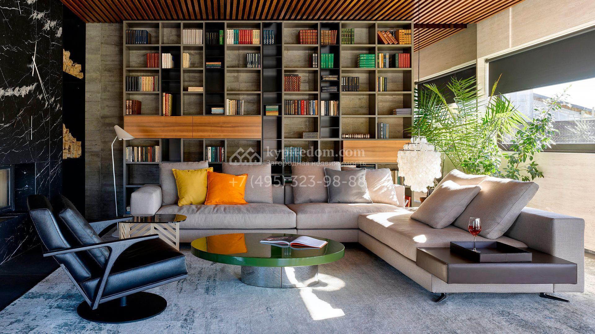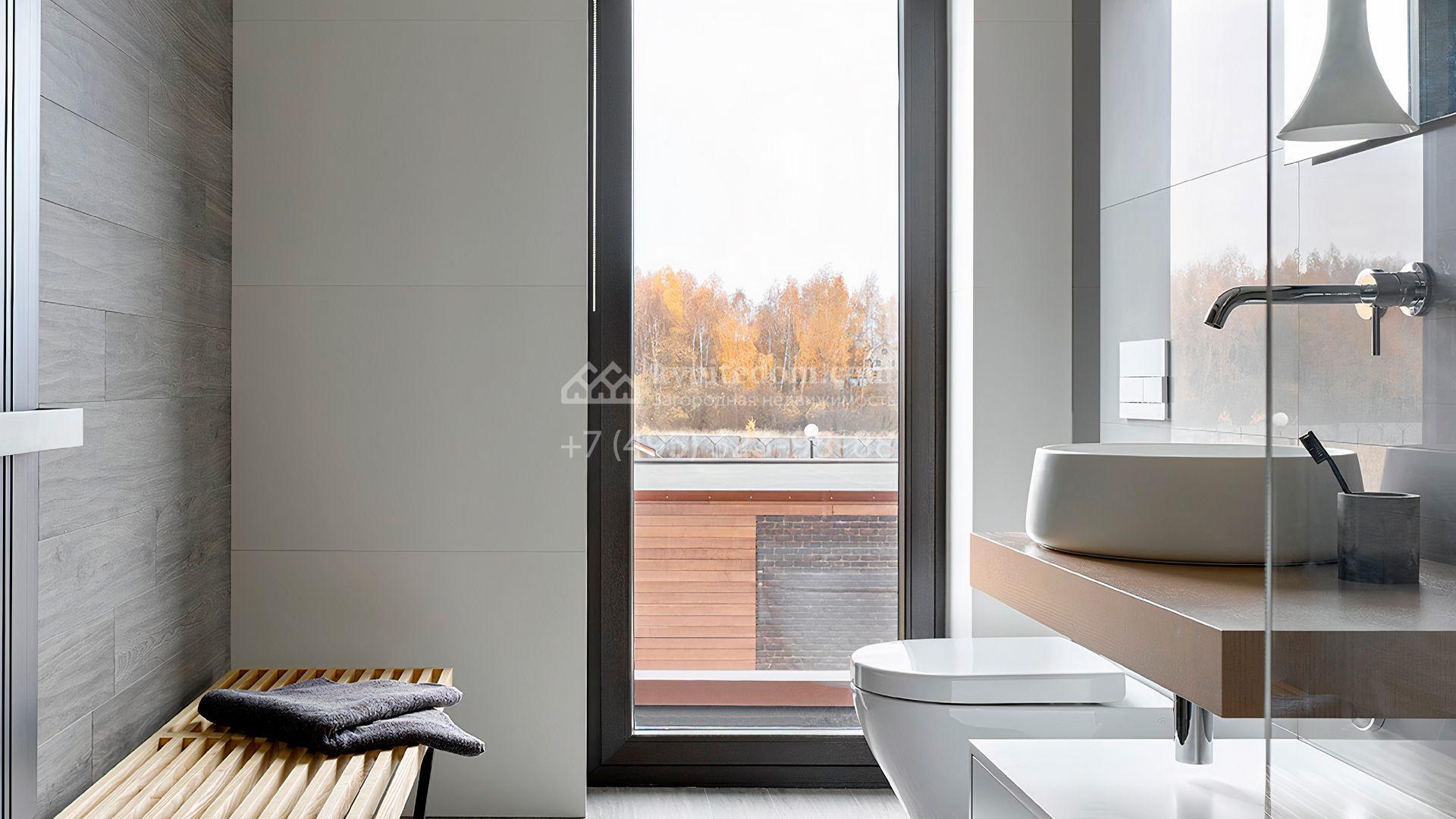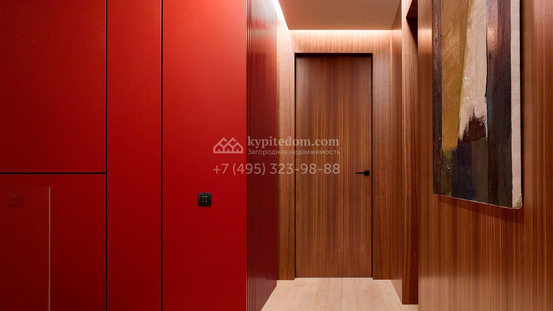 Загородная резиденция с системой «умный дом» площадью 300 м² расположена на участке 16 соток с выходом в лес и к Истринскому водохранилищу. Дом построен по датской технологии Danhaus. На панорамных окнах установлены рольставни. Интерьер выполнен по проекту дизайнера Макса Касимова в приглушенных оттенках в современном стиле. Коттедж полностью меблирован, декорирован коврами и аксессуарами Minotti, Okha, установлена итальянская сантехника. Внутри спланировали 4 спальни, кухню-гостиную с камином и террасу. На территории предусмотрены хозяйственный блок с гаражом, сауна с летней кухней и бассейн с подогревом. На участке вымощены дорожки из гранита, оборудована система полива.