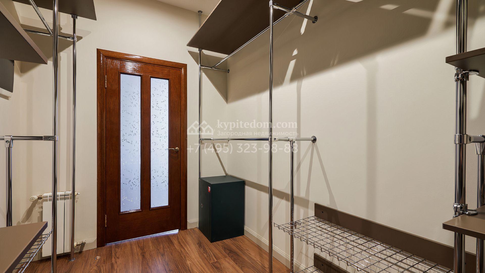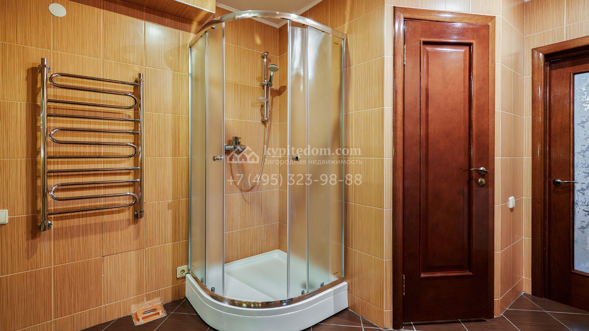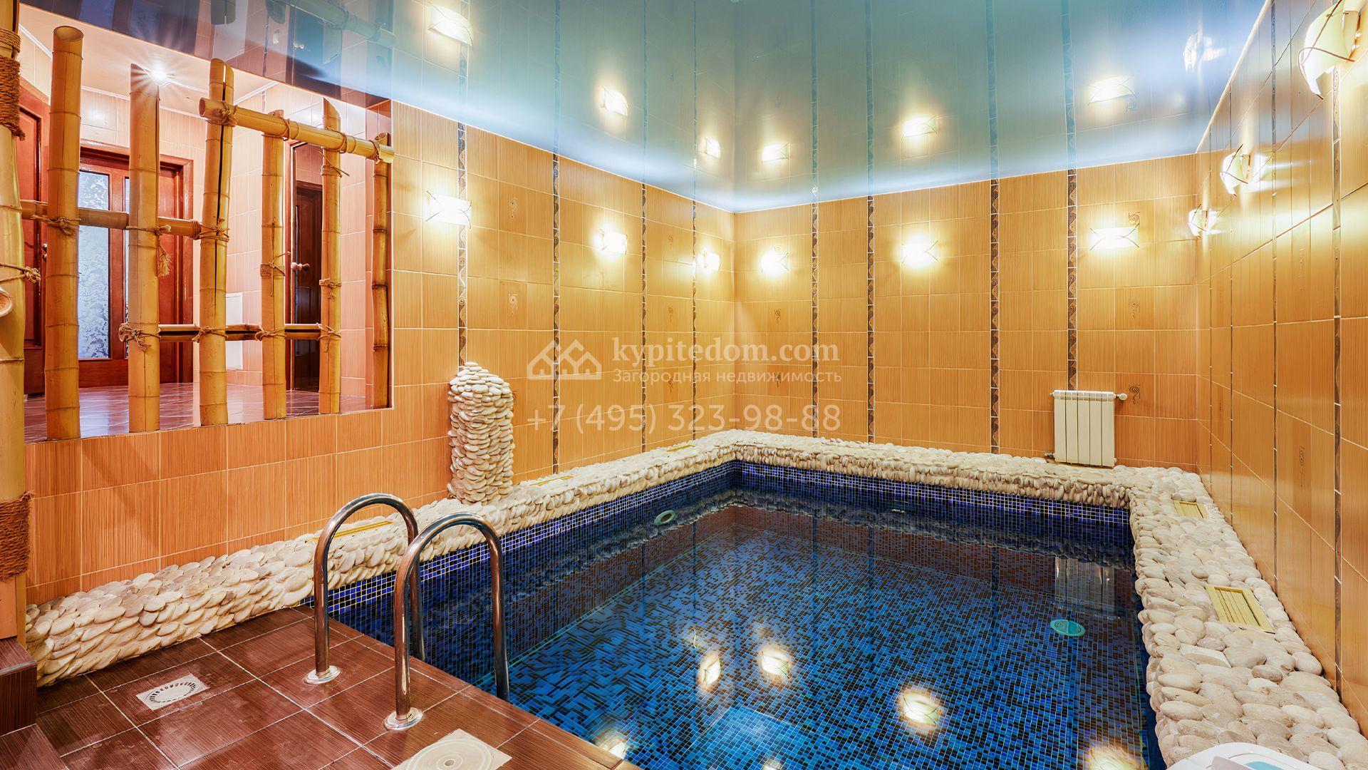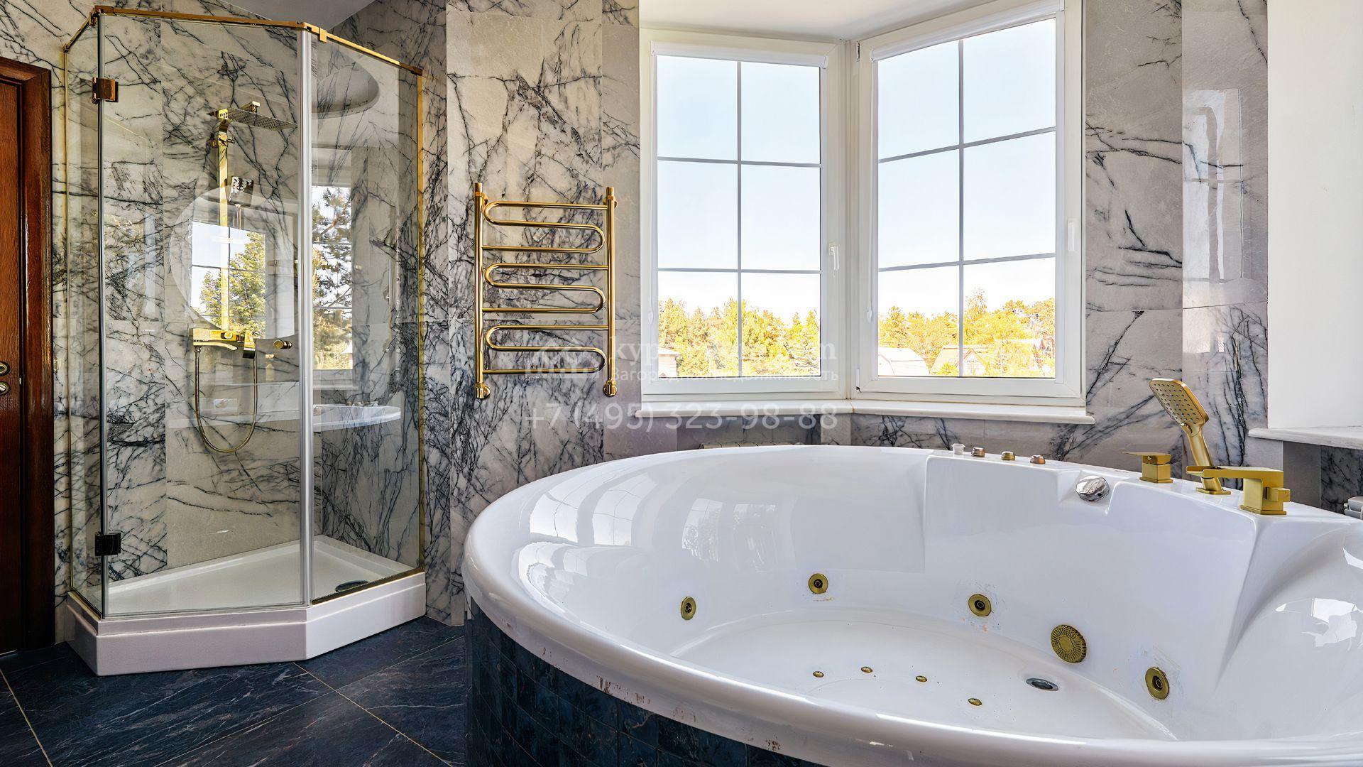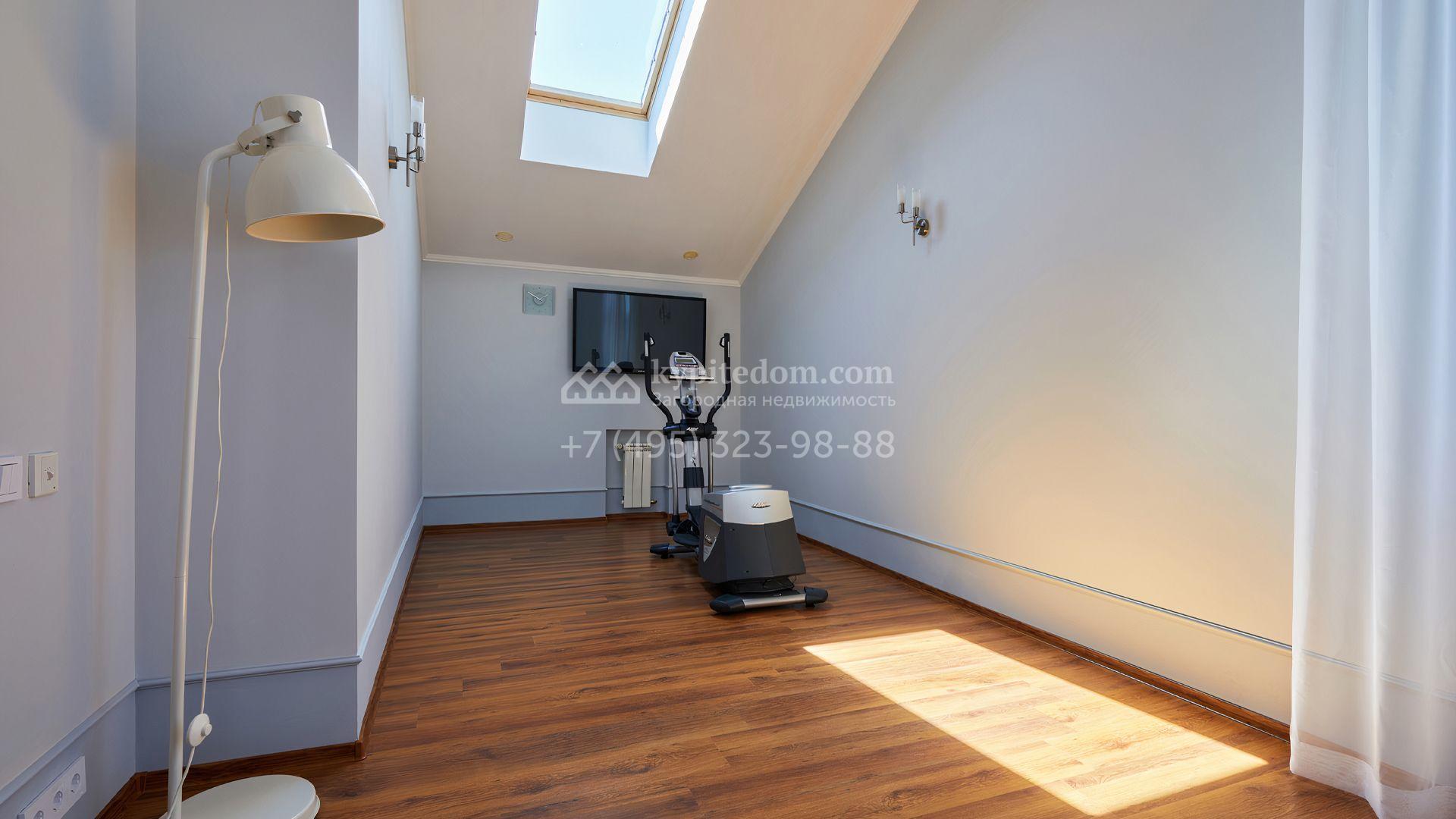 Загородная резиденция площадью 418 м² построена на полевом участке 12 соток. Фасад здания выполнен в неоклассическом стиле и облицован желто-бежевой штукатуркой, декорирован белыми наличниками, карнизами и полуколоннами. В отделке светлого интерьера преобладают теплые оттенки в сочетании с фактурой дерева и камня. Планировка дома включает 4 спальни, уютную гостиную с камином, кухню-столовую, кабинет, спортзал, кинотеатр и спа-зону с бассейном и сауной. В контуре коттеджа предусмотрен гараж на 1 машину. На участке выполнен ландшафтный дизайн, вымощены площадки и обустроена зона барбекю.