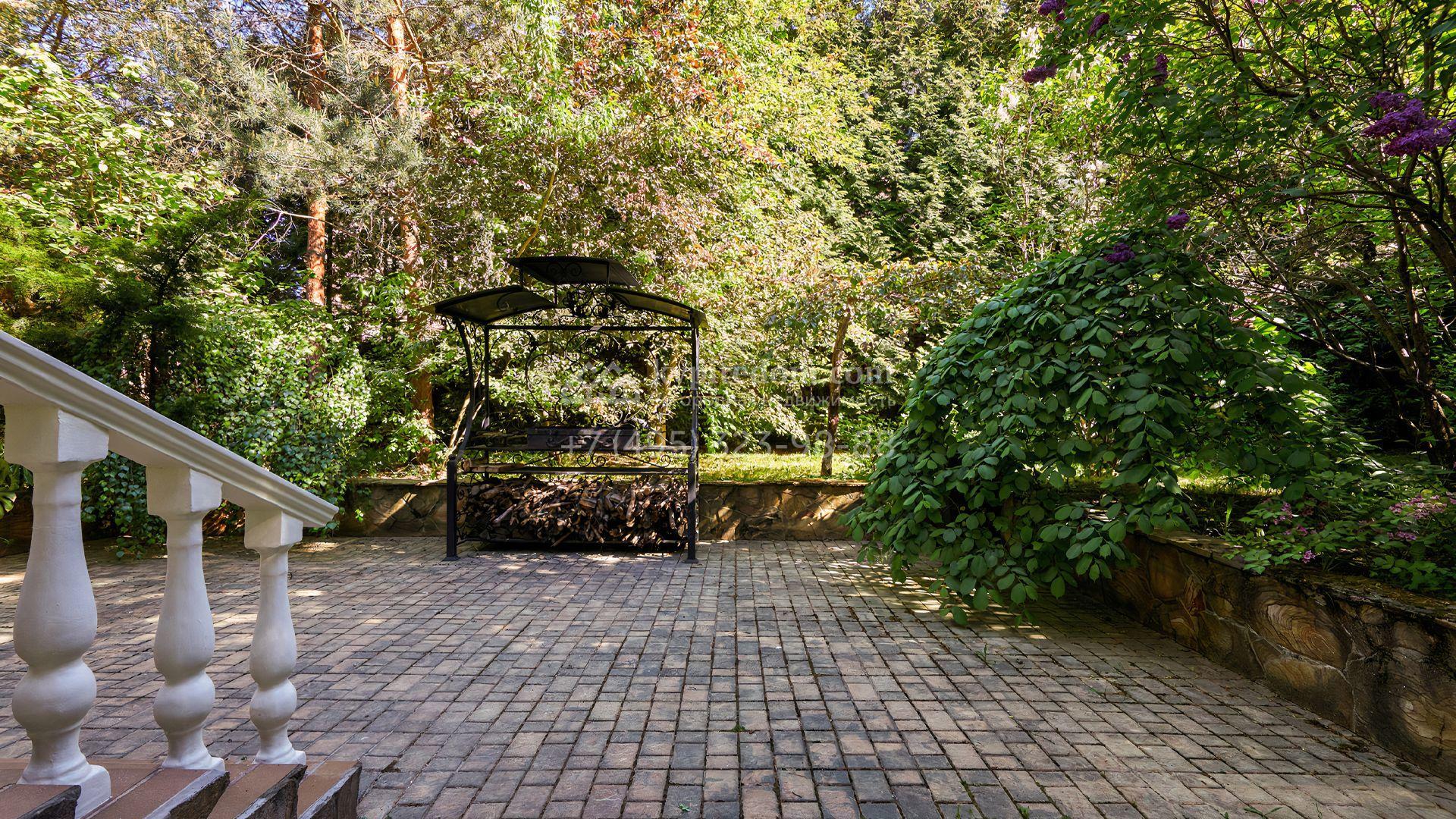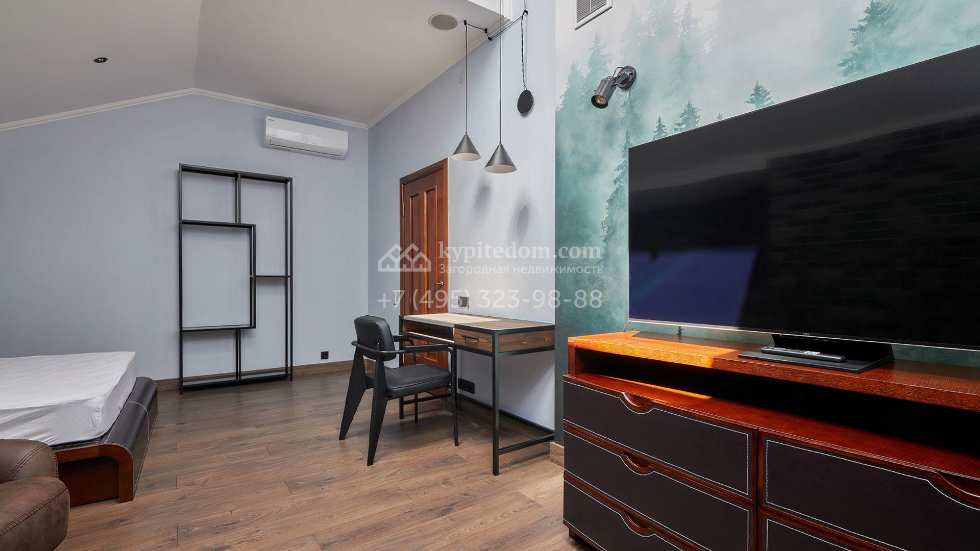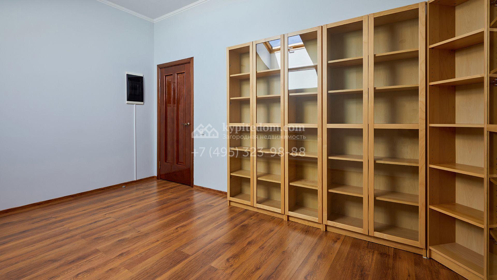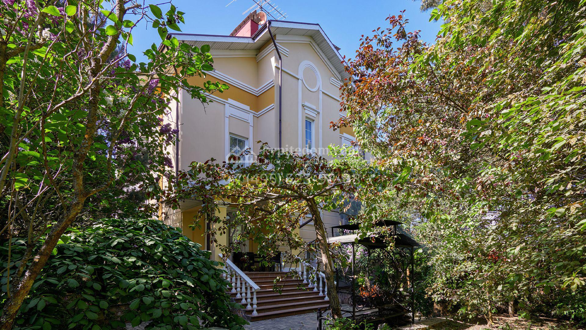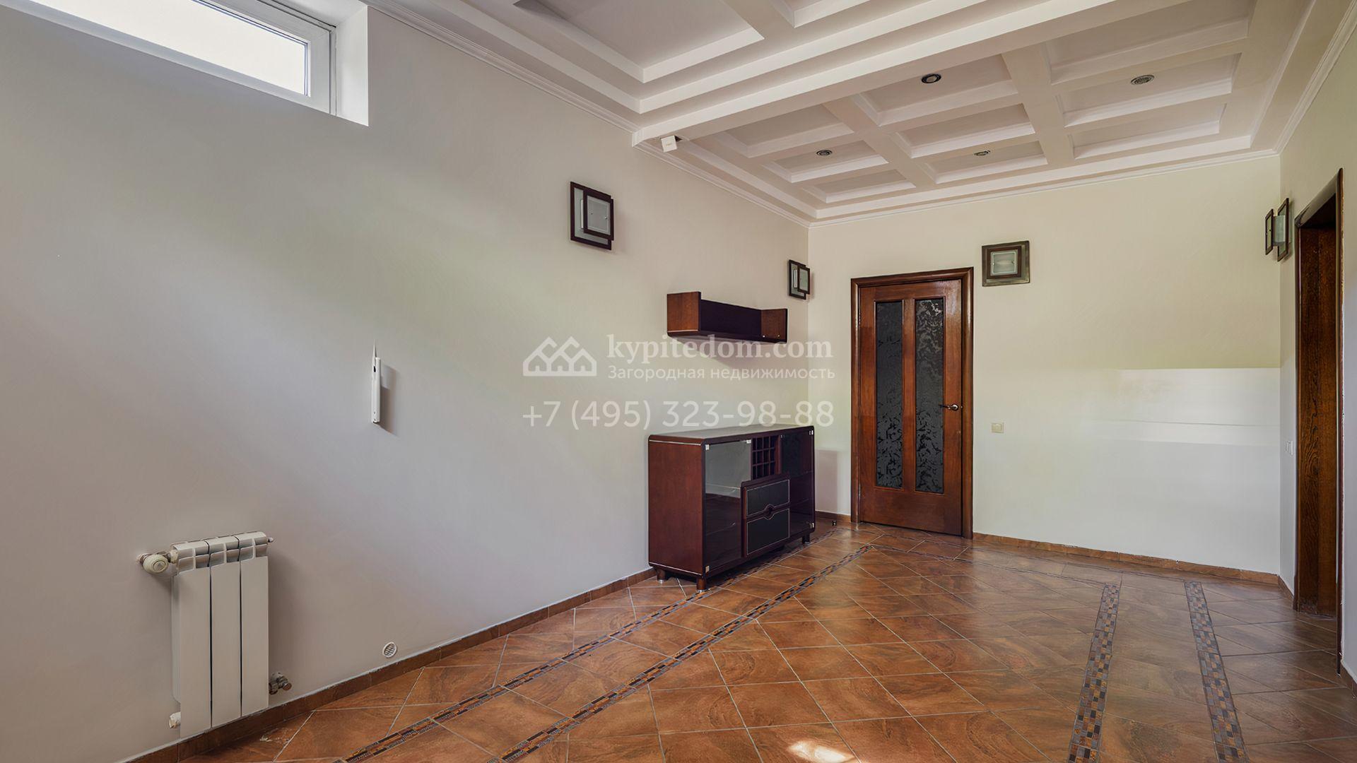 Загородная резиденция площадью 418 м² построена на полевом участке 12 соток. Фасад здания выполнен в неоклассическом стиле и облицован желто-бежевой штукатуркой, декорирован белыми наличниками, карнизами и полуколоннами. В отделке светлого интерьера преобладают теплые оттенки в сочетании с фактурой дерева и камня. Планировка дома включает 4 спальни, уютную гостиную с камином, кухню-столовую, кабинет, спортзал, кинотеатр и спа-зону с бассейном и сауной. В контуре коттеджа предусмотрен гараж на 1 машину. На участке выполнен ландшафтный дизайн, вымощены площадки и обустроена зона барбекю.