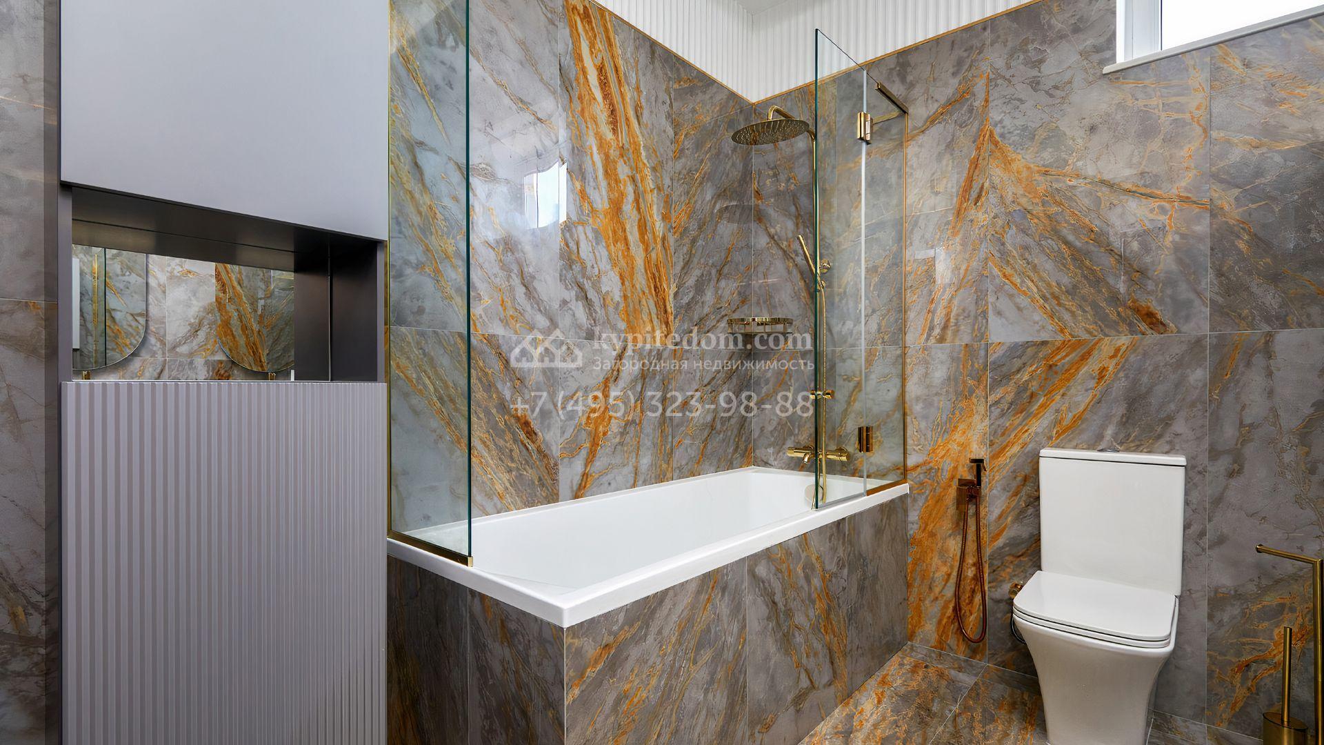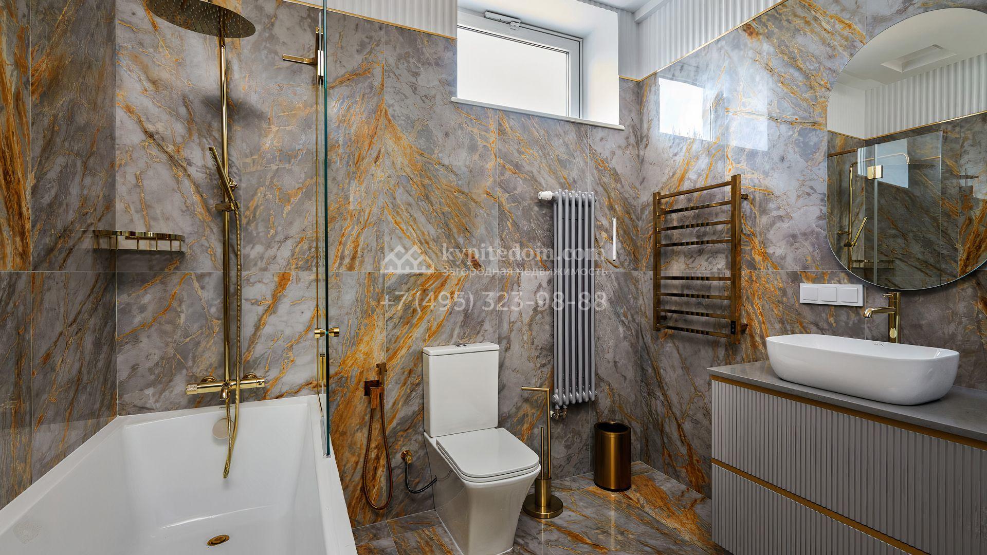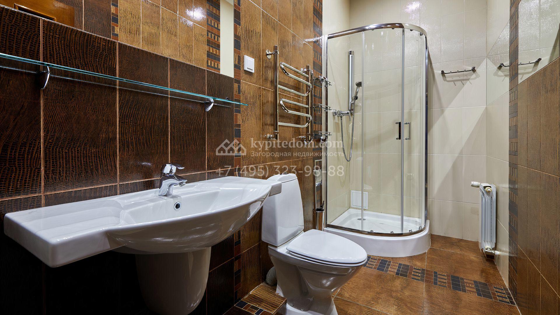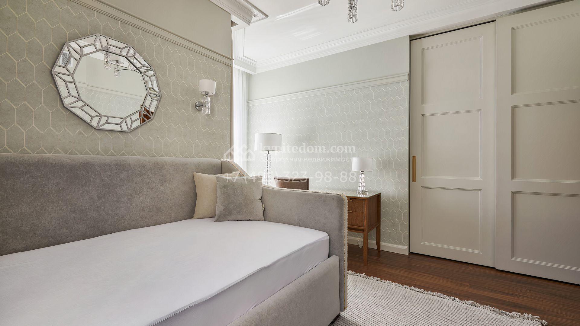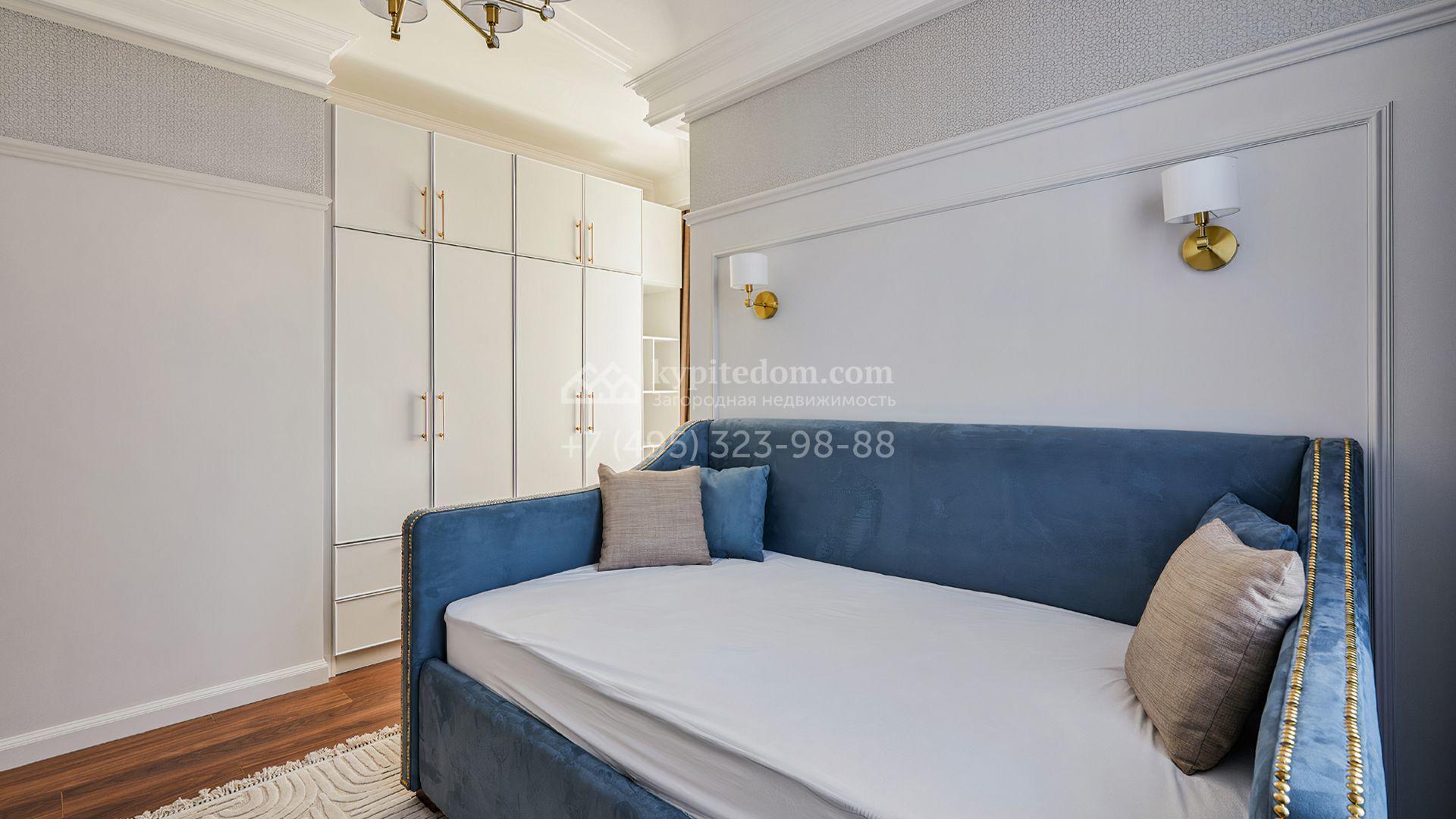 Загородная резиденция площадью 418 м² построена на полевом участке 12 соток. Фасад здания выполнен в неоклассическом стиле и облицован желто-бежевой штукатуркой, декорирован белыми наличниками, карнизами и полуколоннами. В отделке светлого интерьера преобладают теплые оттенки в сочетании с фактурой дерева и камня. Планировка дома включает 4 спальни, уютную гостиную с камином, кухню-столовую, кабинет, спортзал, кинотеатр и спа-зону с бассейном и сауной. В контуре коттеджа предусмотрен гараж на 1 машину. На участке выполнен ландшафтный дизайн, вымощены площадки и обустроена зона барбекю.