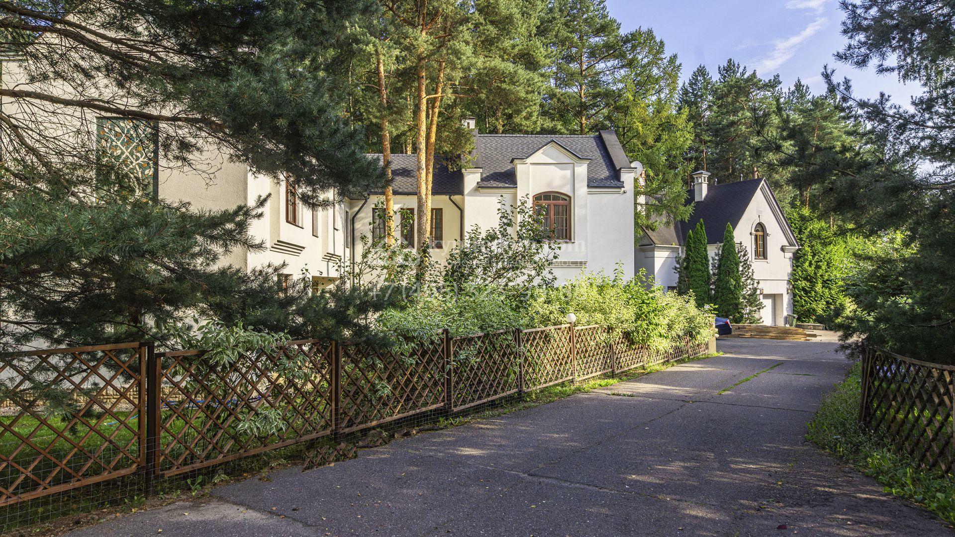 Загородный особняк площадью 1960 м² построен на просторном участке 20 соток рядом с лесом. Фасад здания облицован белой клинкерной плиткой. В резиденции без отделки можно реализовать дизайн-проект, отвечающий индивидуальным потребностям. В резиденции спланировали 4 спальни, гостиную с камином и кухню с выходом во двор, рабочую кухню, кабинет и SPA-зону с бассейном с морской водой. В контуре дома предусмотрены гараж на 2 машины и квартира для персонала с отдельным входом. На участке можно выполнить ландшафтный дизайн и обустроить зону барбекю.