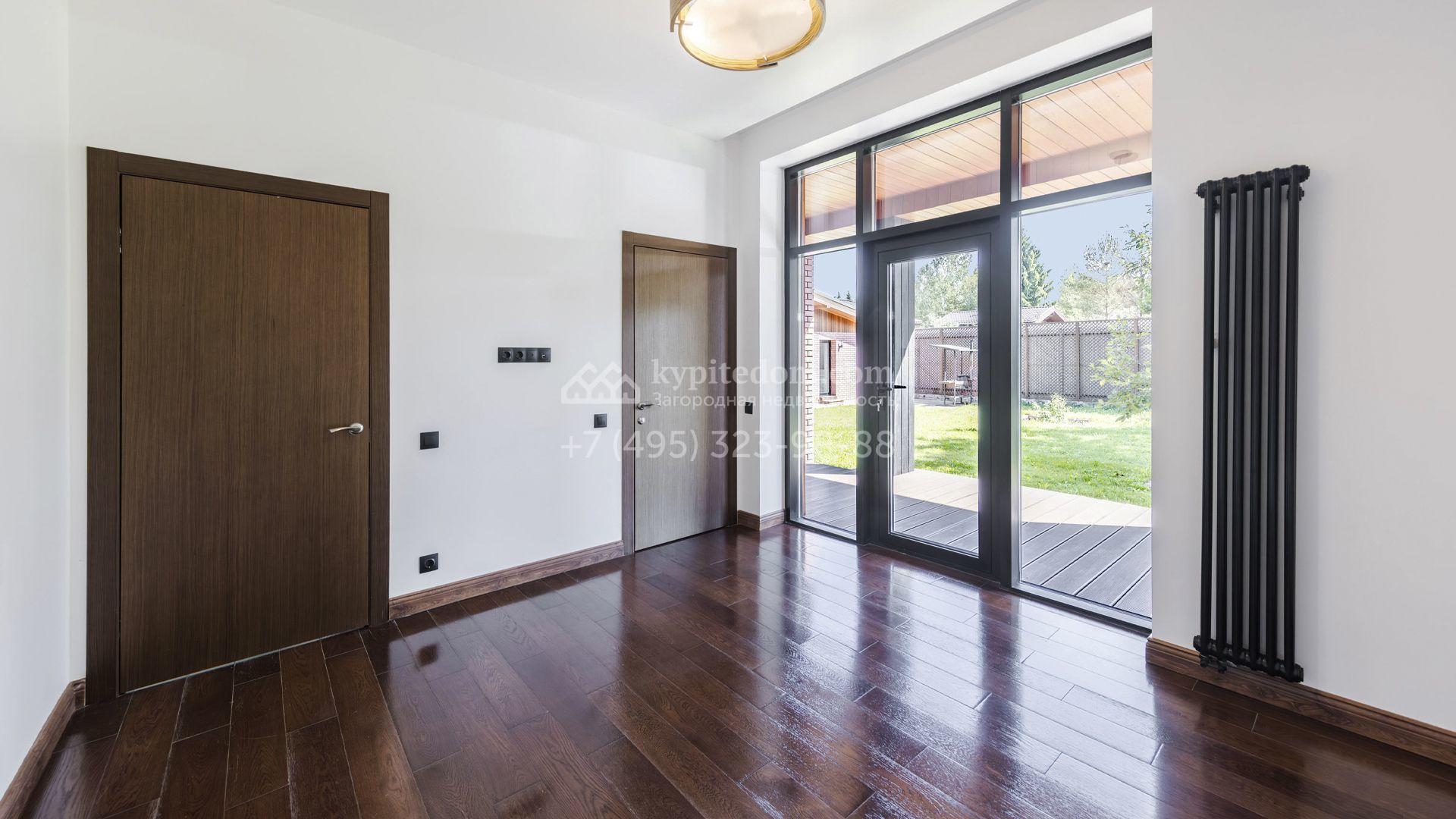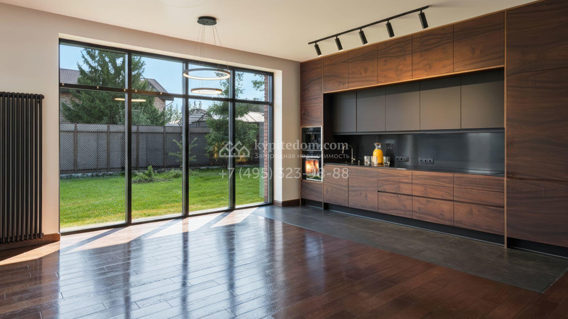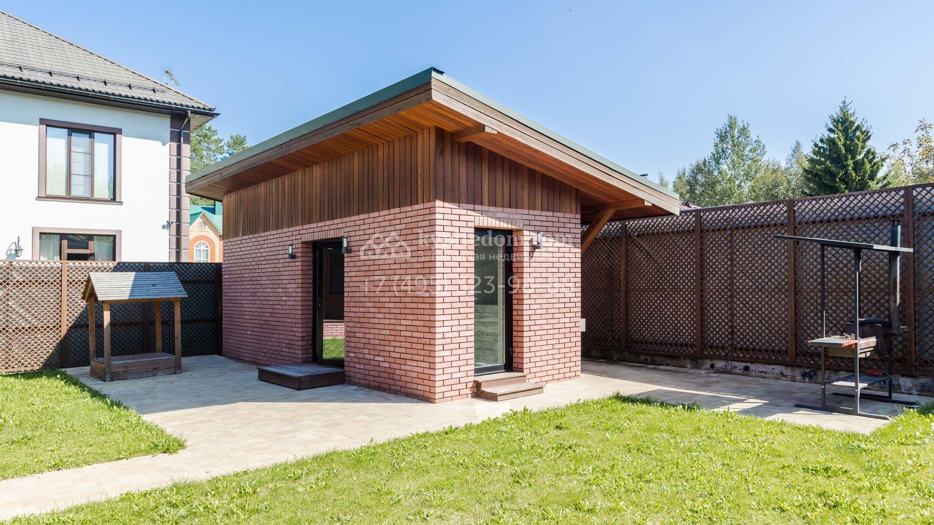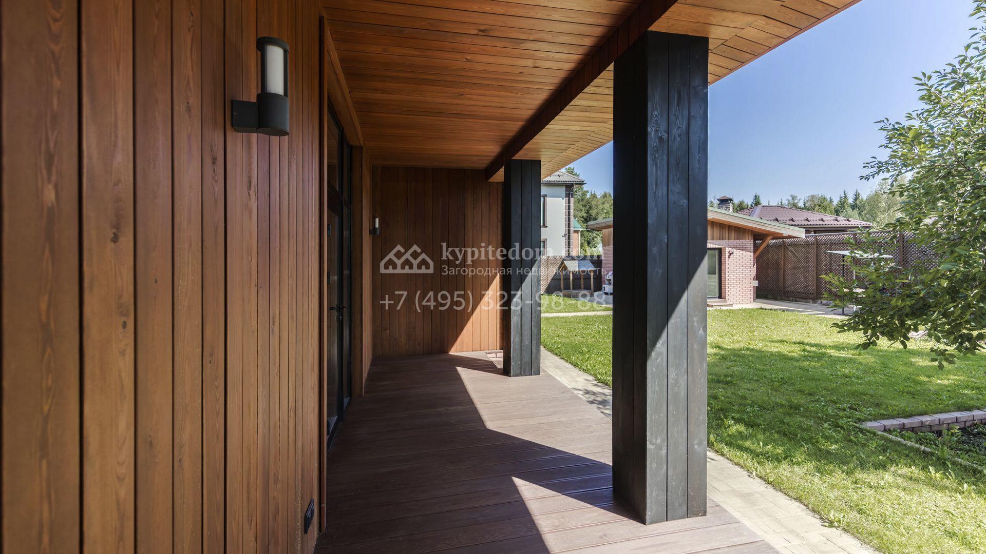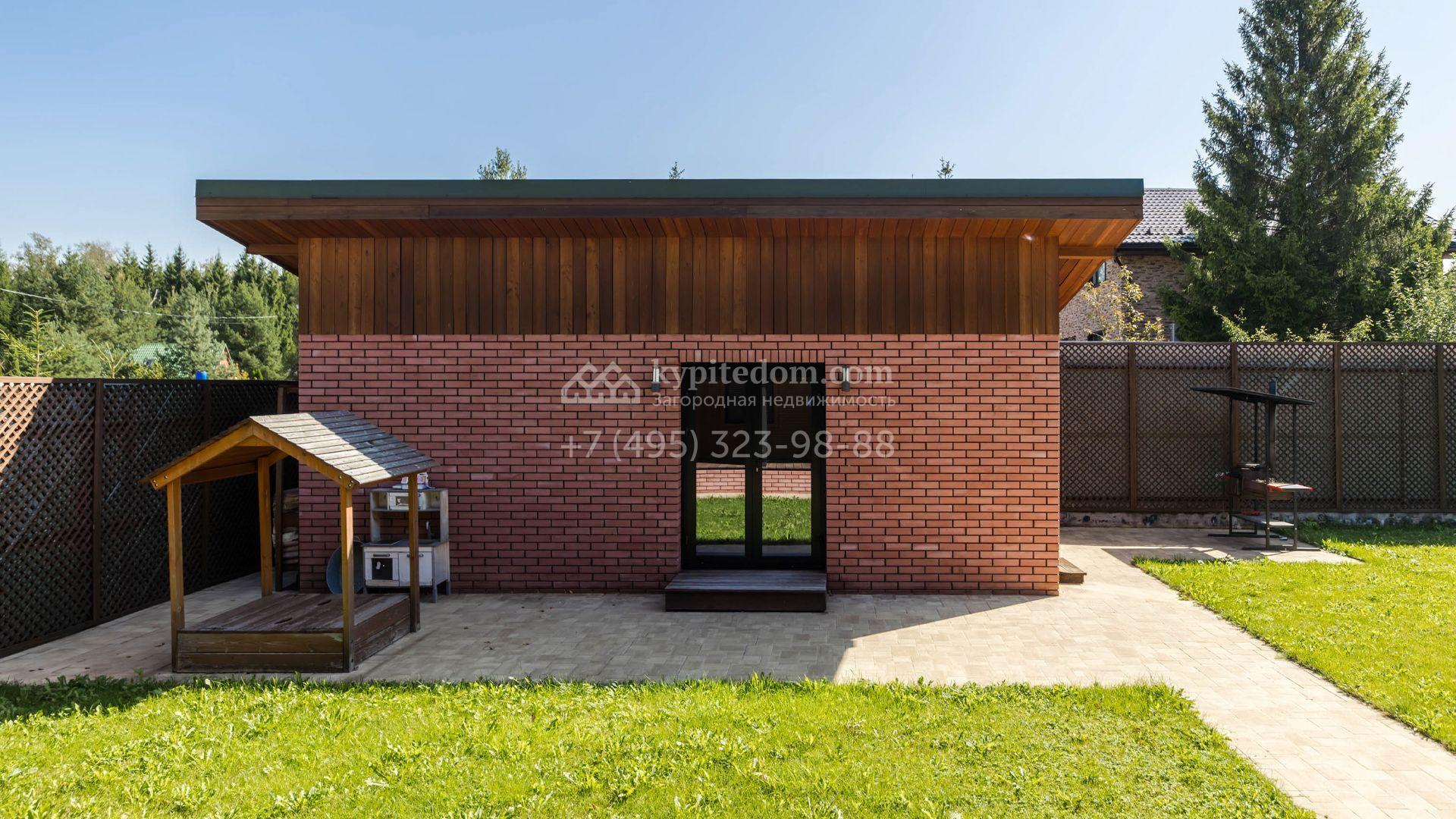 Загородный дом площадью 167 м² построен на уютном полевом участке 8 соток. Одноэтажный фасад здания выполнен в современном стиле, облицован красным клинкерным кирпичом и деревом, а также декорирован подсветкой. Благодаря панорамным окнам пространство наполнено воздухом и светом. В отделке лаконичного интерьера сочетаются молочные оттенки с фактурой темного дерева. Планировка дома включает 4 спальни, кухню-гостиную, укомплектованную встроенными гарнитуром и бытовой техникой премиум-класса, и просторную террасу, разделенную на 2 части. На участке расположена отдельностоящая баня с комнатой отдыха и оборудован паркинг на 4 машины, вымощенный брусчаткой.