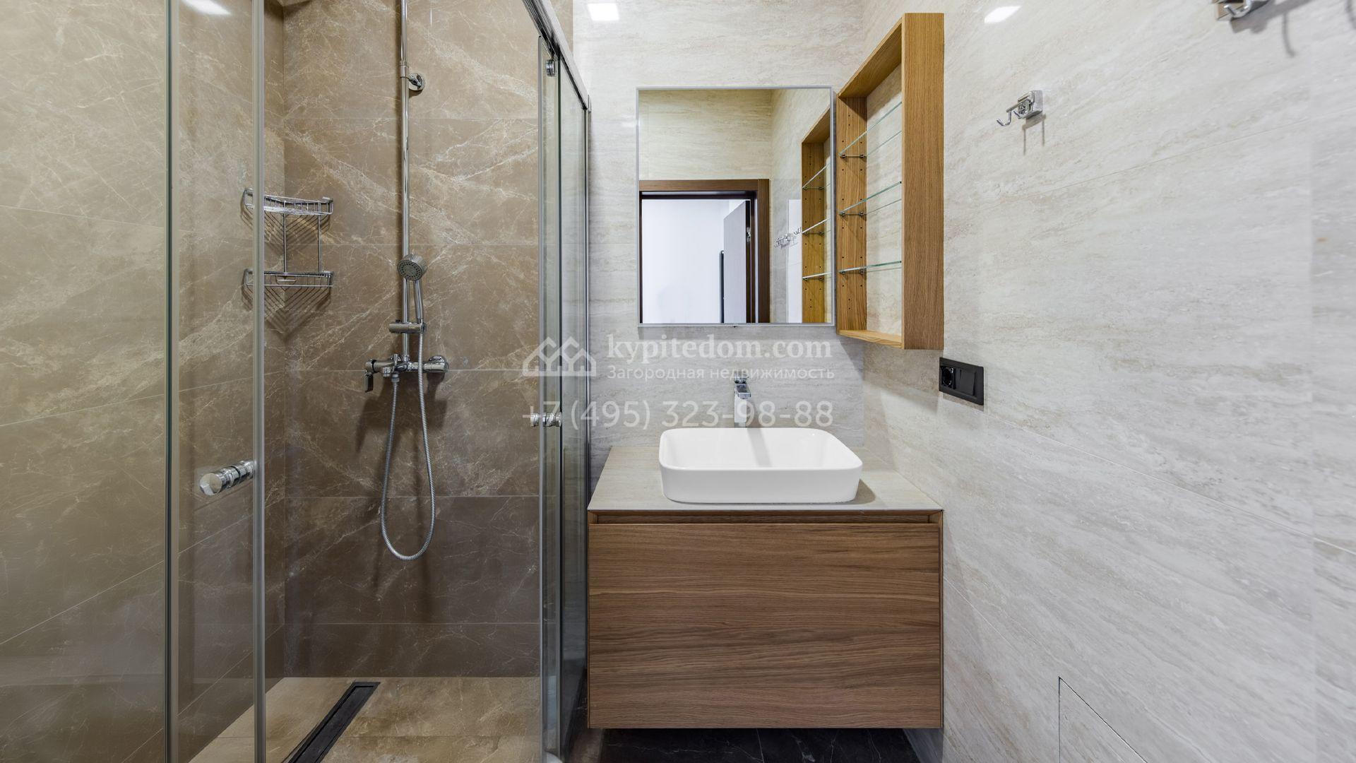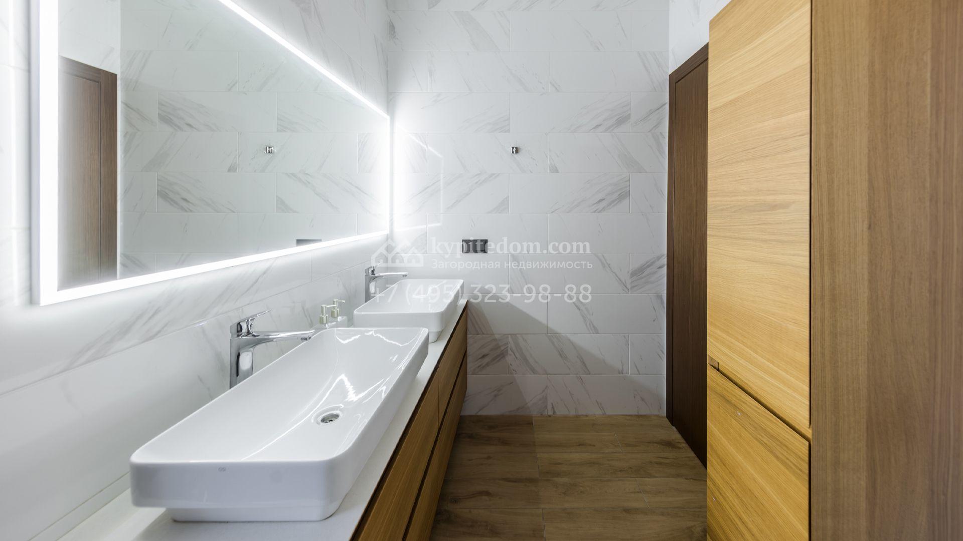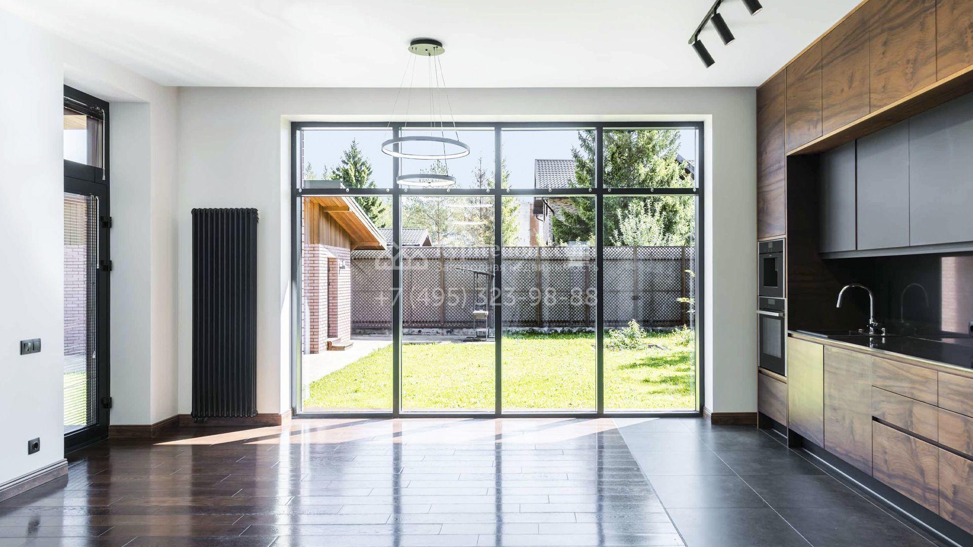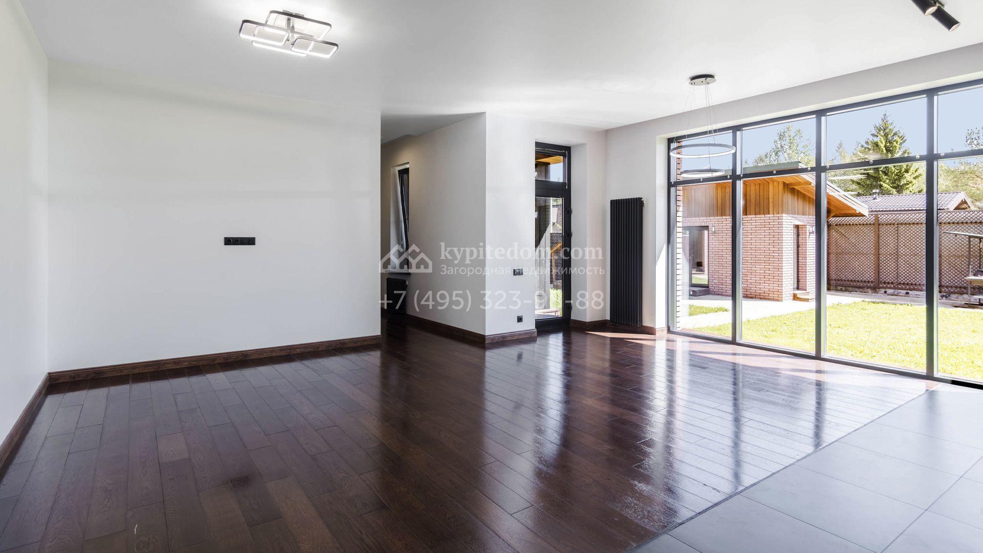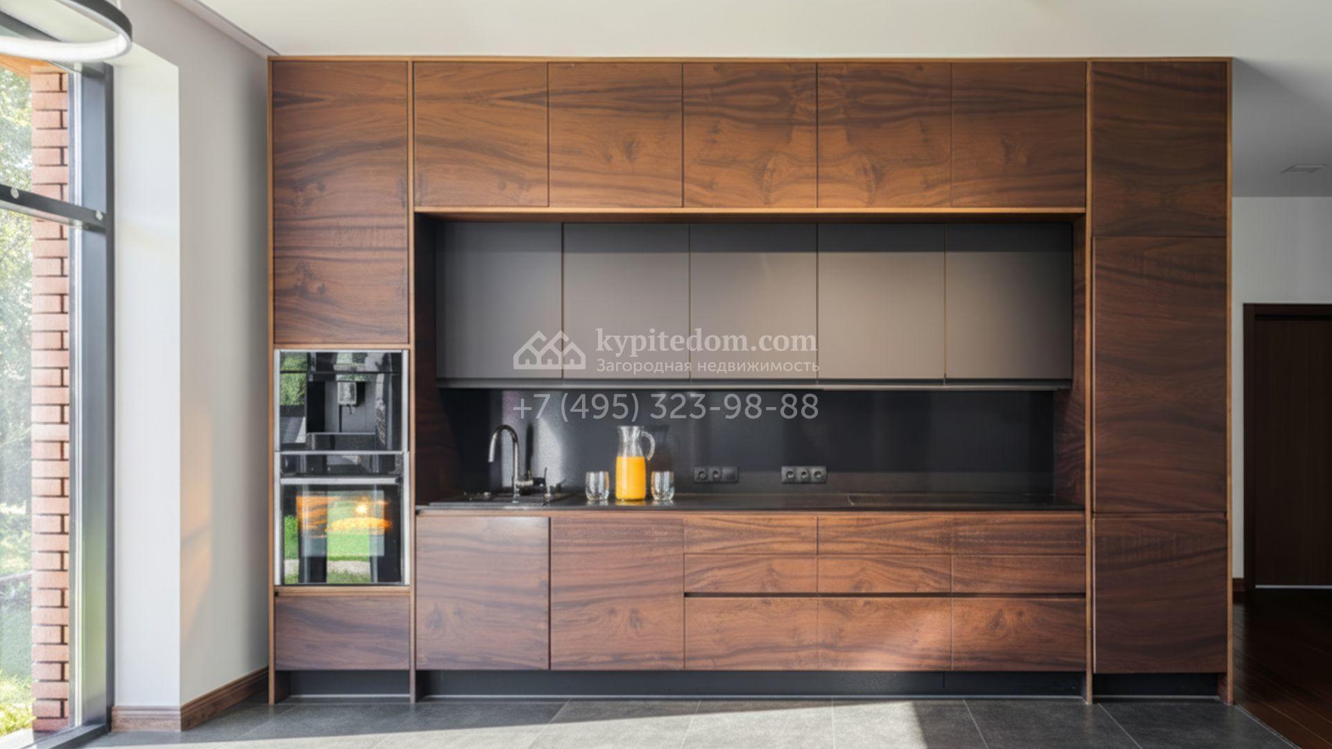 Загородный дом площадью 167 м² построен на уютном полевом участке 8 соток. Одноэтажный фасад здания выполнен в современном стиле, облицован красным клинкерным кирпичом и деревом, а также декорирован подсветкой. Благодаря панорамным окнам пространство наполнено воздухом и светом. В отделке лаконичного интерьера сочетаются молочные оттенки с фактурой темного дерева. Планировка дома включает 4 спальни, кухню-гостиную, укомплектованную встроенными гарнитуром и бытовой техникой премиум-класса, и просторную террасу, разделенную на 2 части. На участке расположена отдельностоящая баня с комнатой отдыха и оборудован паркинг на 4 машины, вымощенный брусчаткой.