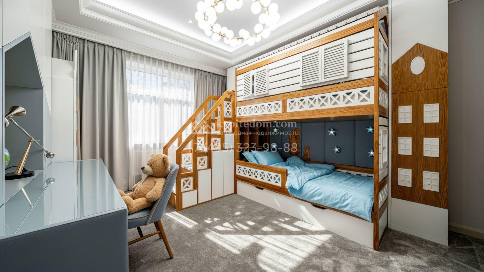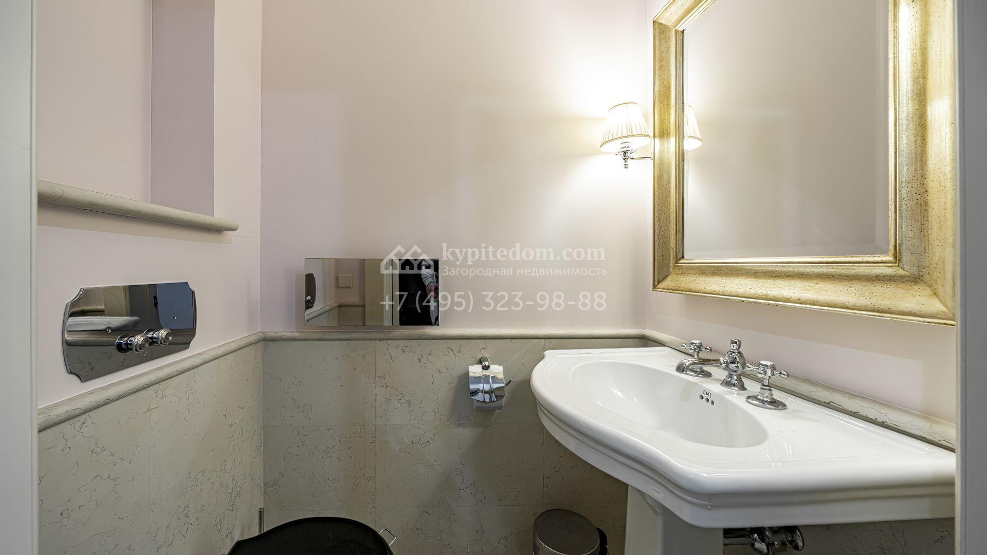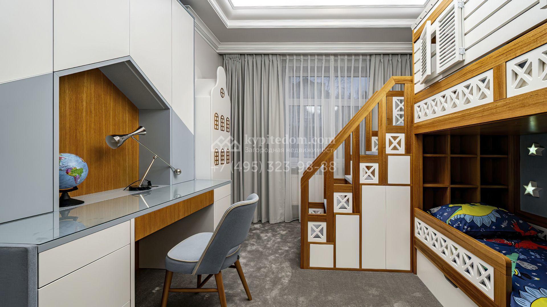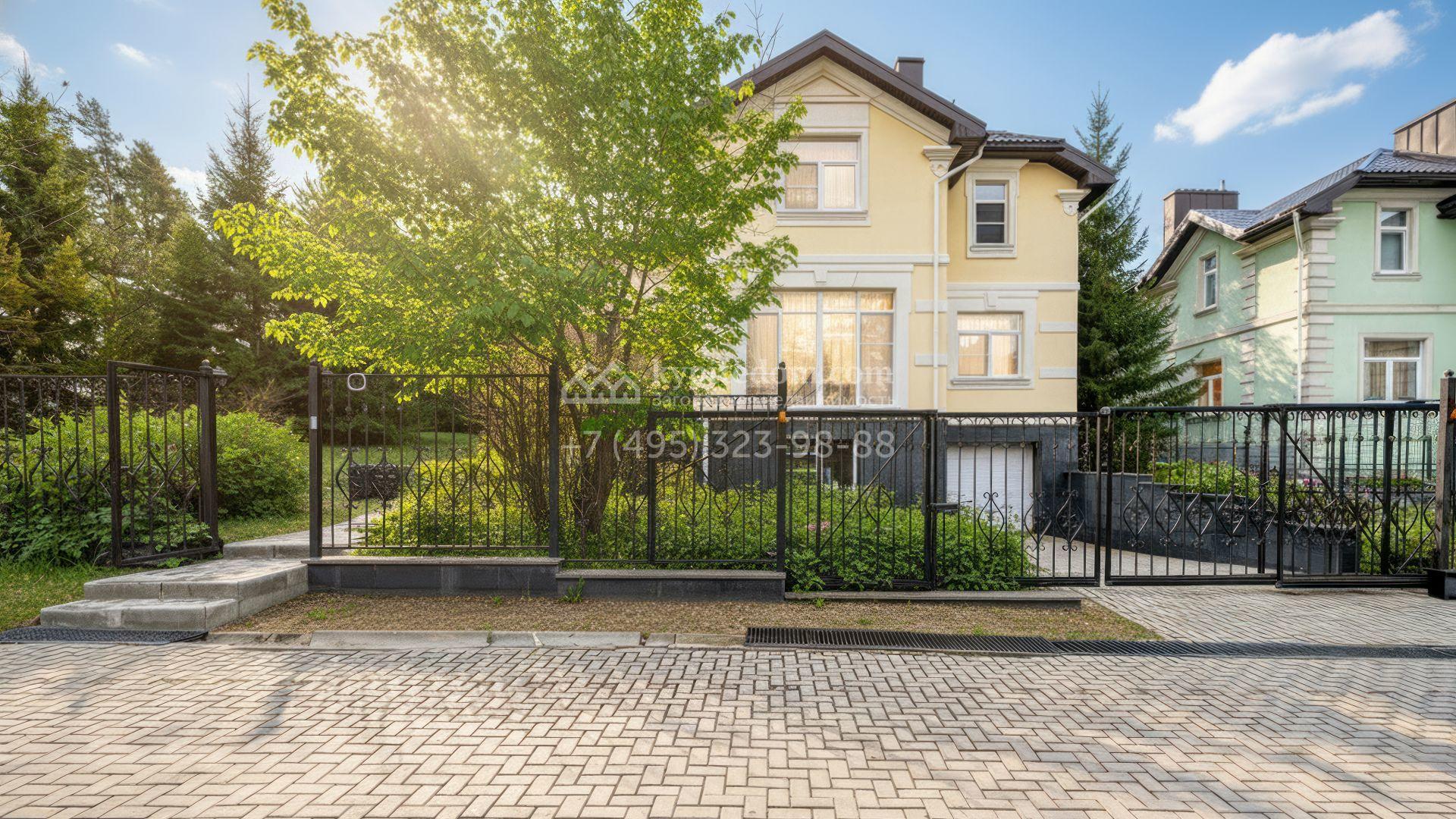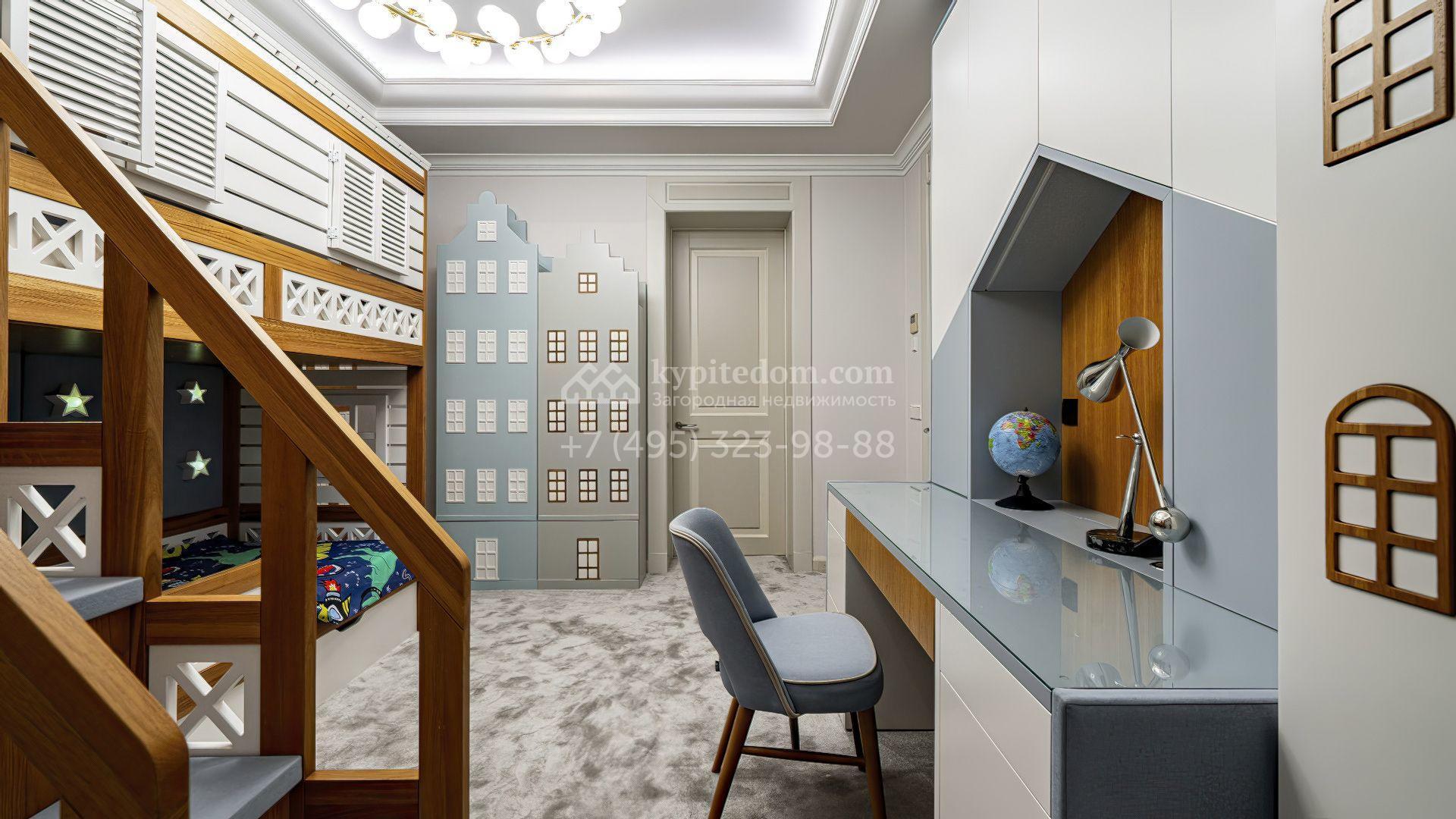 Загородный дом площадью 300 м² расположен на полевом участке 8 соток. Фасад выполнен в неоклассическом стиле и облицован кремовой штукатуркой и плиткой с фактурой камня по цоколю. Светлый интерьер выполнен по дизайн-проекту с использованием премиальных материалов, дополнен мебелью, бытовой техникой и сантехникой.