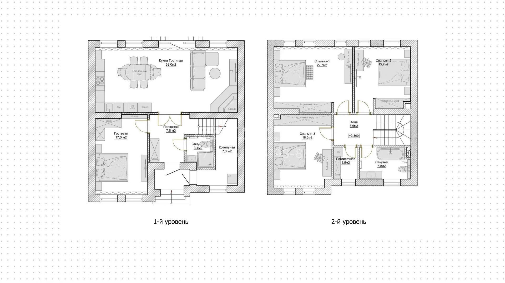 Загородный дом в английском стиле площадью 150 м² на полевом участке 4,3 сотки. Фасад здания облицован красно-коричневым клинкерным кирпичом. Свободная планировка позволяет организовать пространство по собственному усмотрению, есть возможность выбрать готовый дизайн-проект с учетом особенностей планировки. Проектом предусмотрены 4 спальни, кухня-гостиная, 2 санузла, постирочная и котельная. На ухоженном участке можно обустроить уютные места для отдыха с барбекю-зоной.