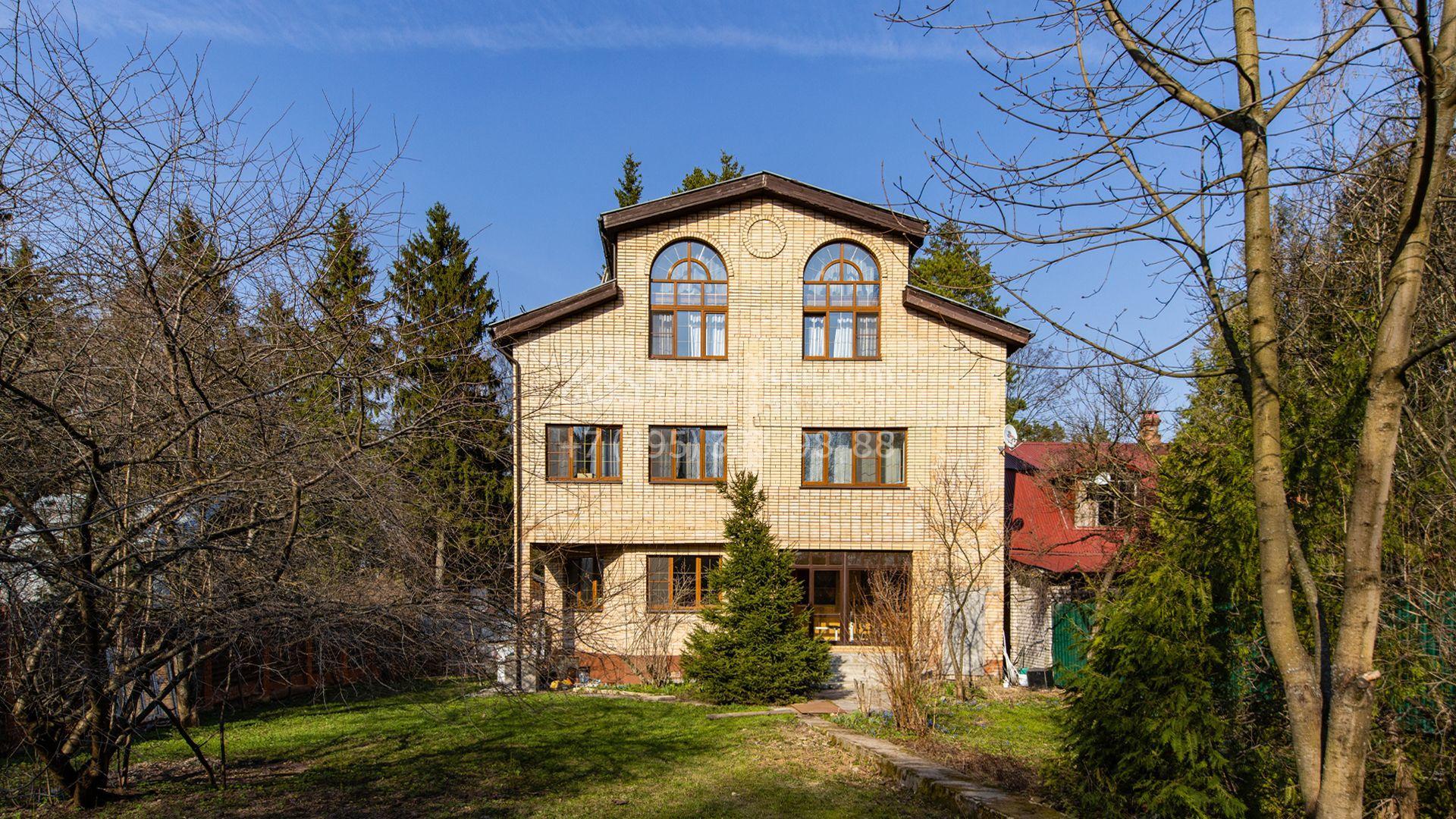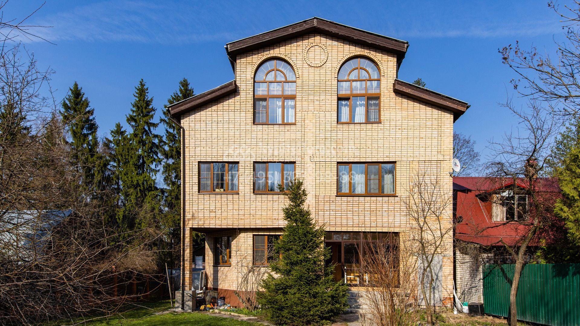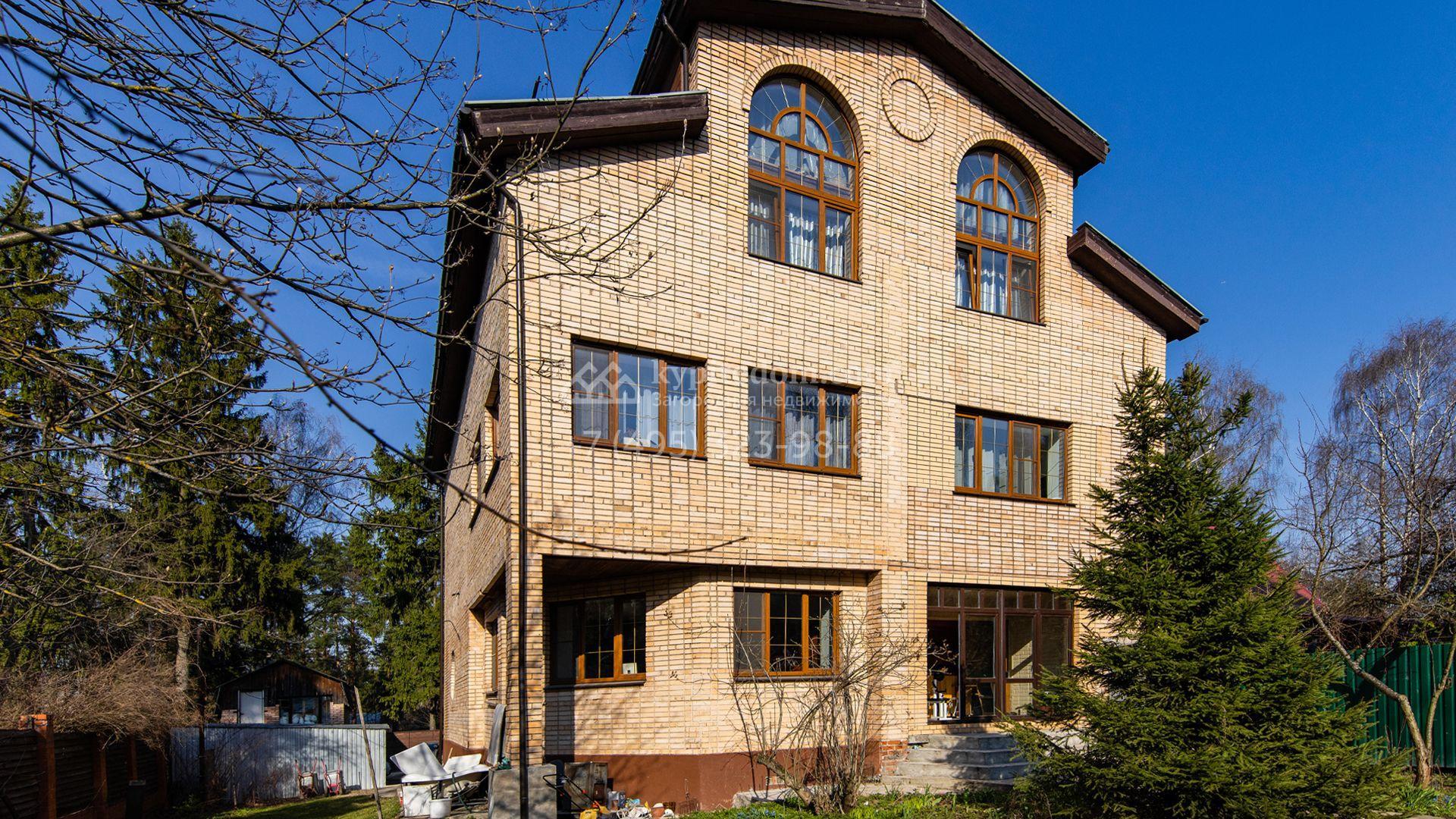 Загородный дом площадью 600 м² построен на участке 20 соток с деревьями. Фасад здания облицован бежевым клинкерным кирпичом, установлены прямоугольные и арочные коричневые рамы. Светлый интерьер оформлен в теплых оттенках в сочетании с фактурой дерева, создающих домашний уют. В резиденции разместили 5 спален, просторную гостиную с камином, кухню-столовую, спортзал с выходом на участок, баню и зону отдыха. На участке вымощены дорожки, засеян газон и обустроена беседка с зоной барбекю.