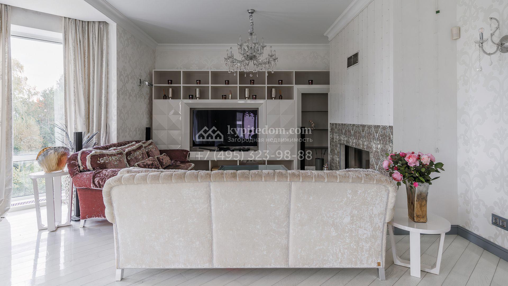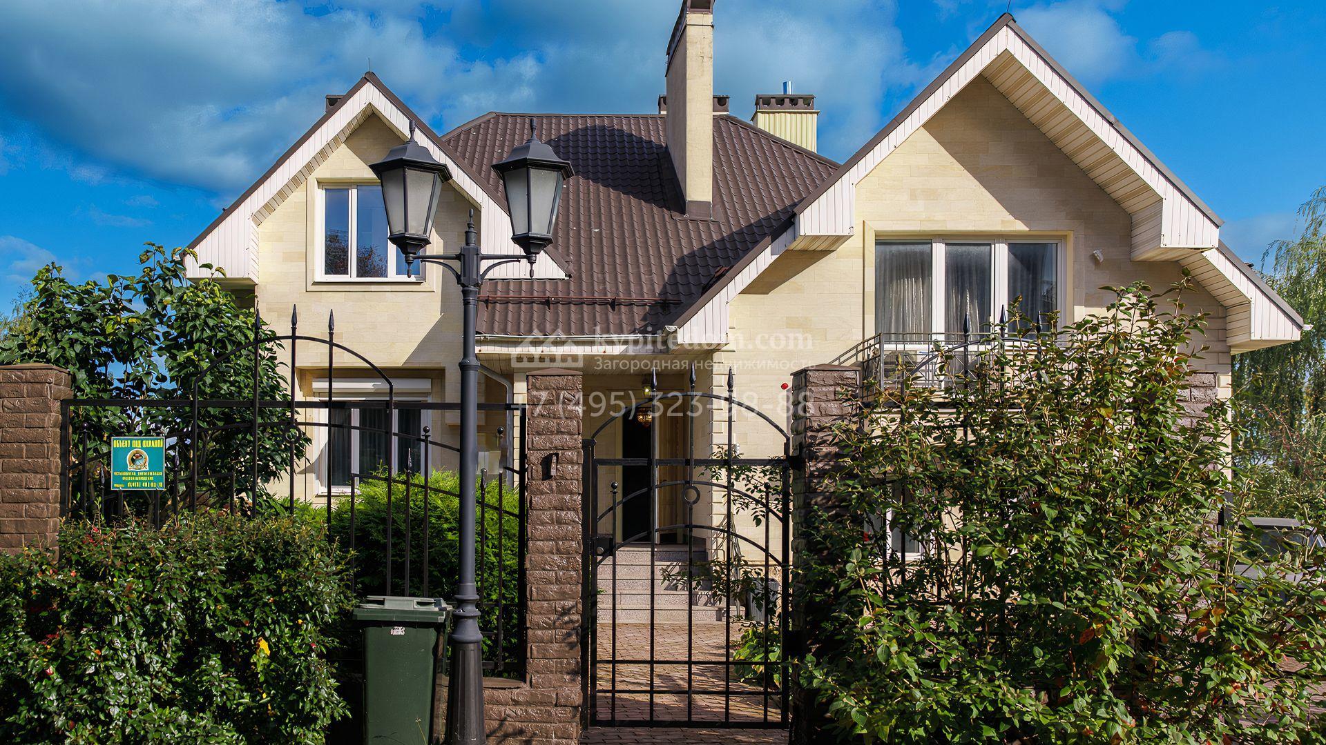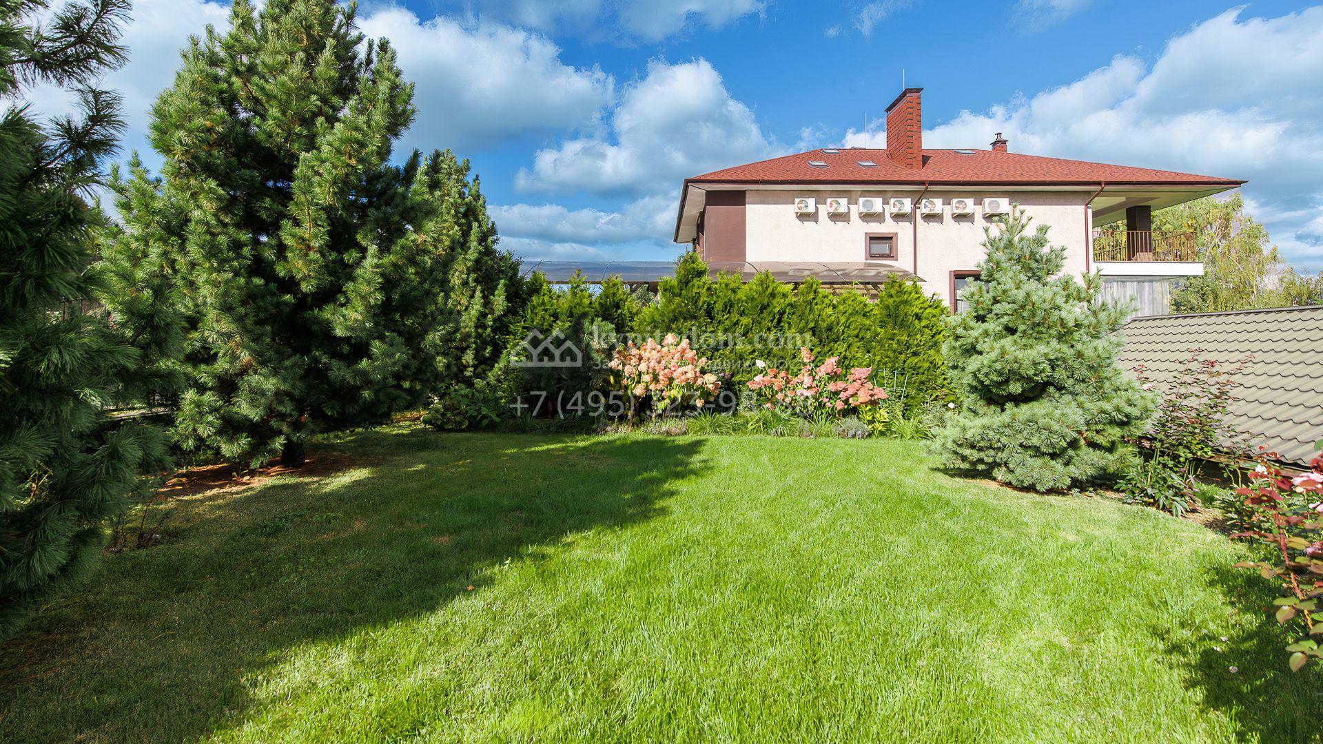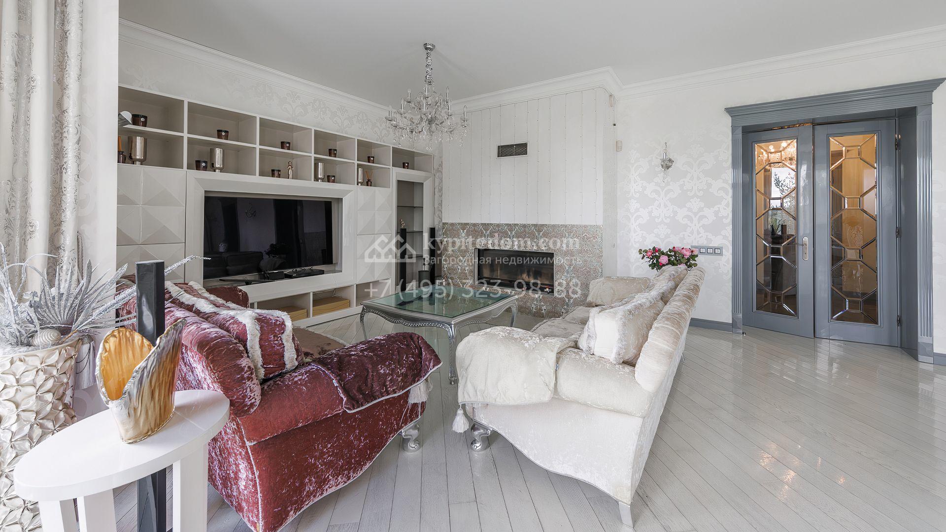 Загородный дом площадью 400 м² расположен на просторном полевом участке 22 сотки. Фасад в европейском стиле облицован бежевым камнем. В отделке интерьера преобладют светлые бежевые и серые оттенки. Резиденция меблирована эксклюзивной итальянской мебелью и укомплектована премиальной бытовой техникой. Планировкой предусмотрены 5 спален, 2 кухни, 2 гостиные с камином и пианино. Отдохнуть на свежем воздухе можно на двух террасах, одна из которых оборудована зоной барбекю и джакузи. На разноуровневом участке выполнен ландшафтный дизайн, обустроен сад с цветущей магнолией, сакурой, соснами, кедрами, туями и плодоносными деревьями.