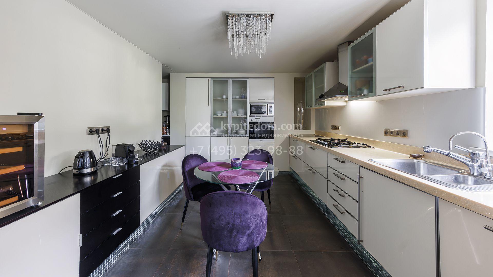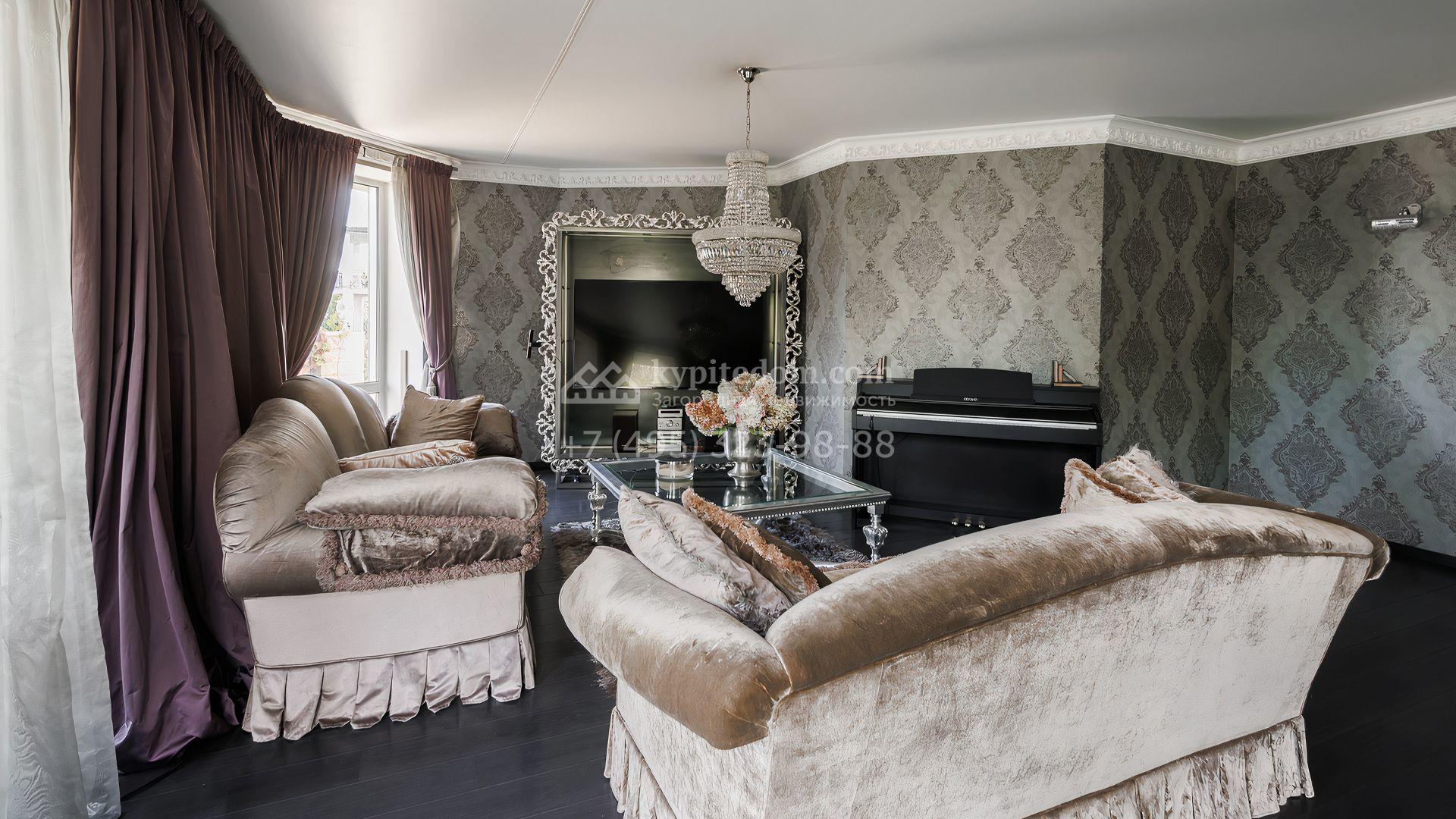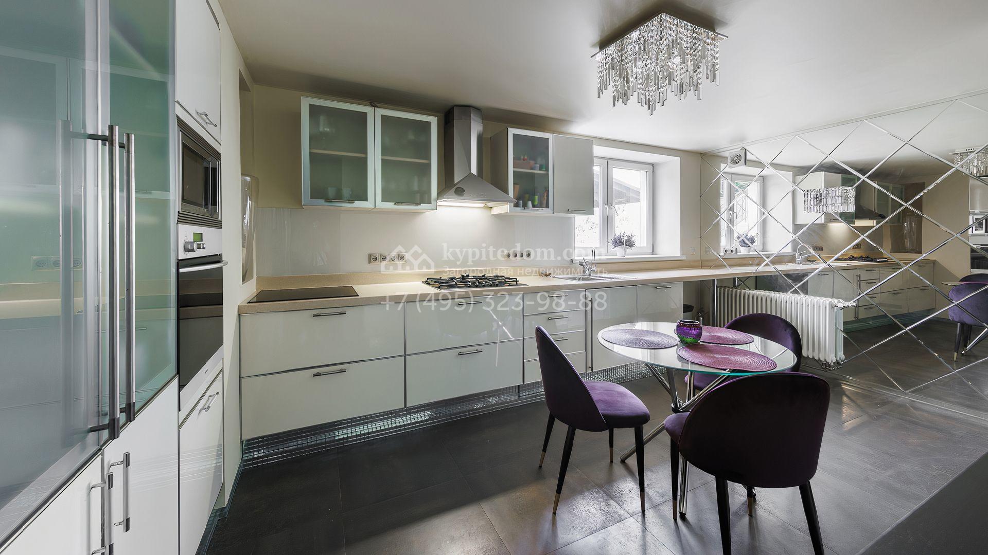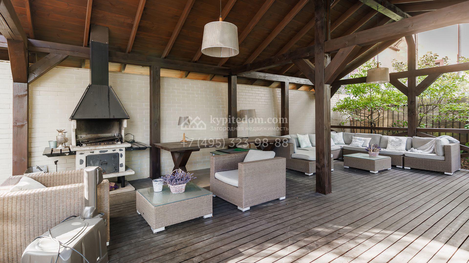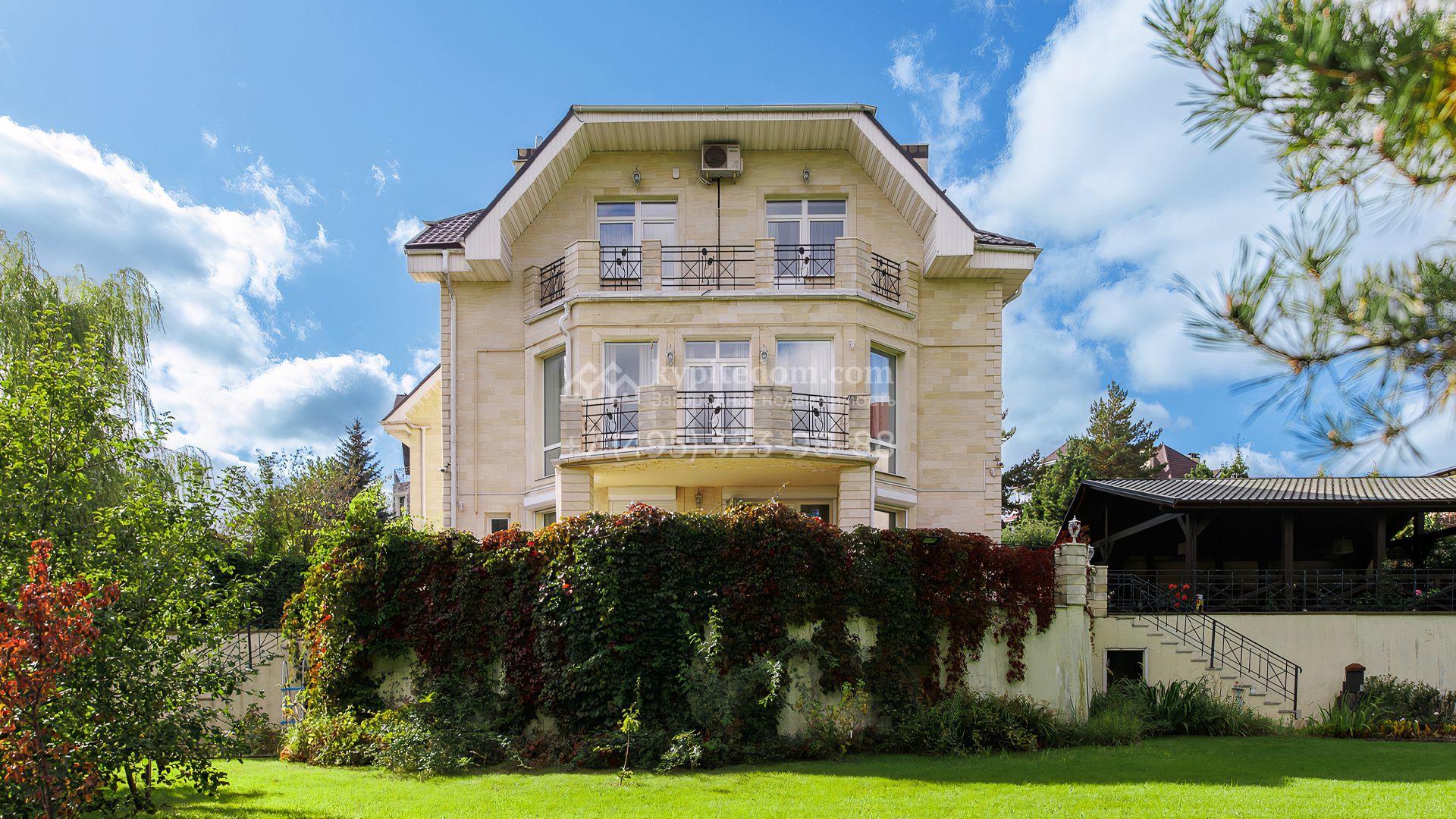 Загородный дом площадью 400 м² расположен на просторном полевом участке 22 сотки. Фасад в европейском стиле облицован бежевым камнем. В отделке интерьера преобладют светлые бежевые и серые оттенки. Резиденция меблирована эксклюзивной итальянской мебелью и укомплектована премиальной бытовой техникой. Планировкой предусмотрены 5 спален, 2 кухни, 2 гостиные с камином и пианино. Отдохнуть на свежем воздухе можно на двух террасах, одна из которых оборудована зоной барбекю и джакузи. На разноуровневом участке выполнен ландшафтный дизайн, обустроен сад с цветущей магнолией, сакурой, соснами, кедрами, туями и плодоносными деревьями.