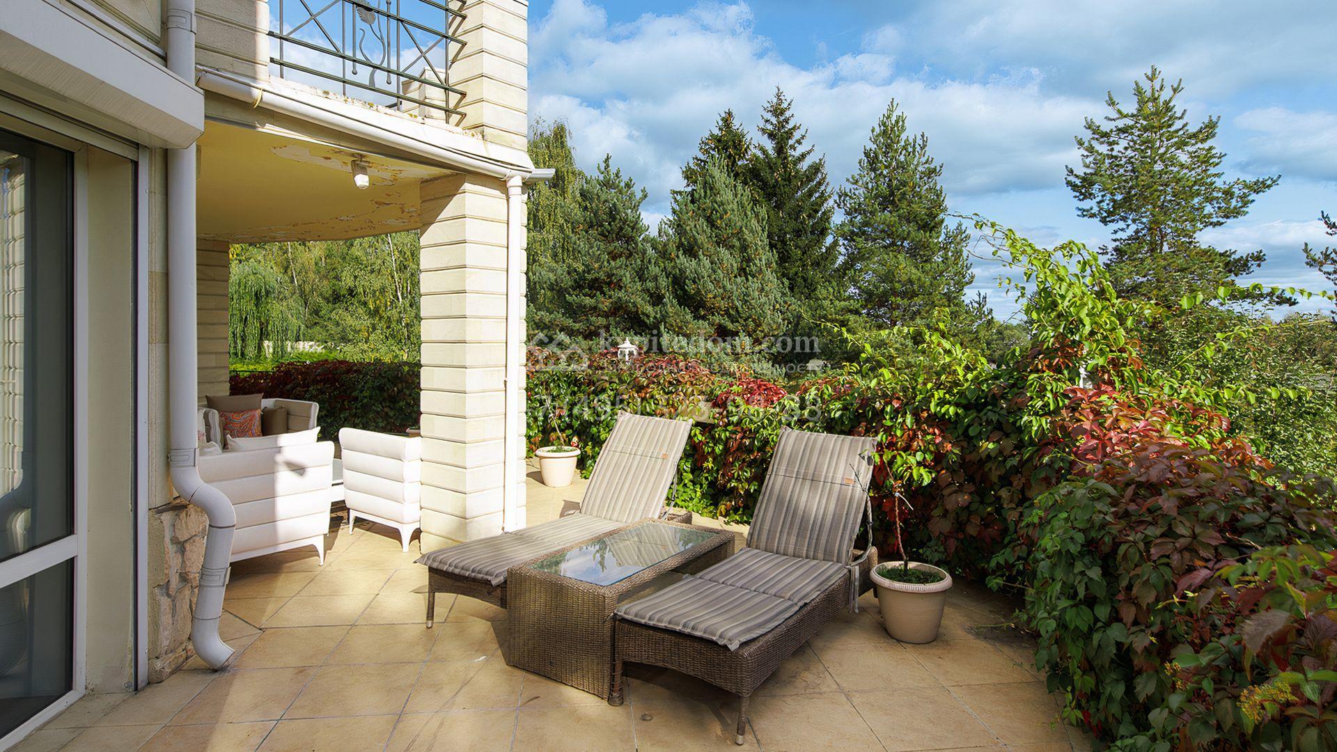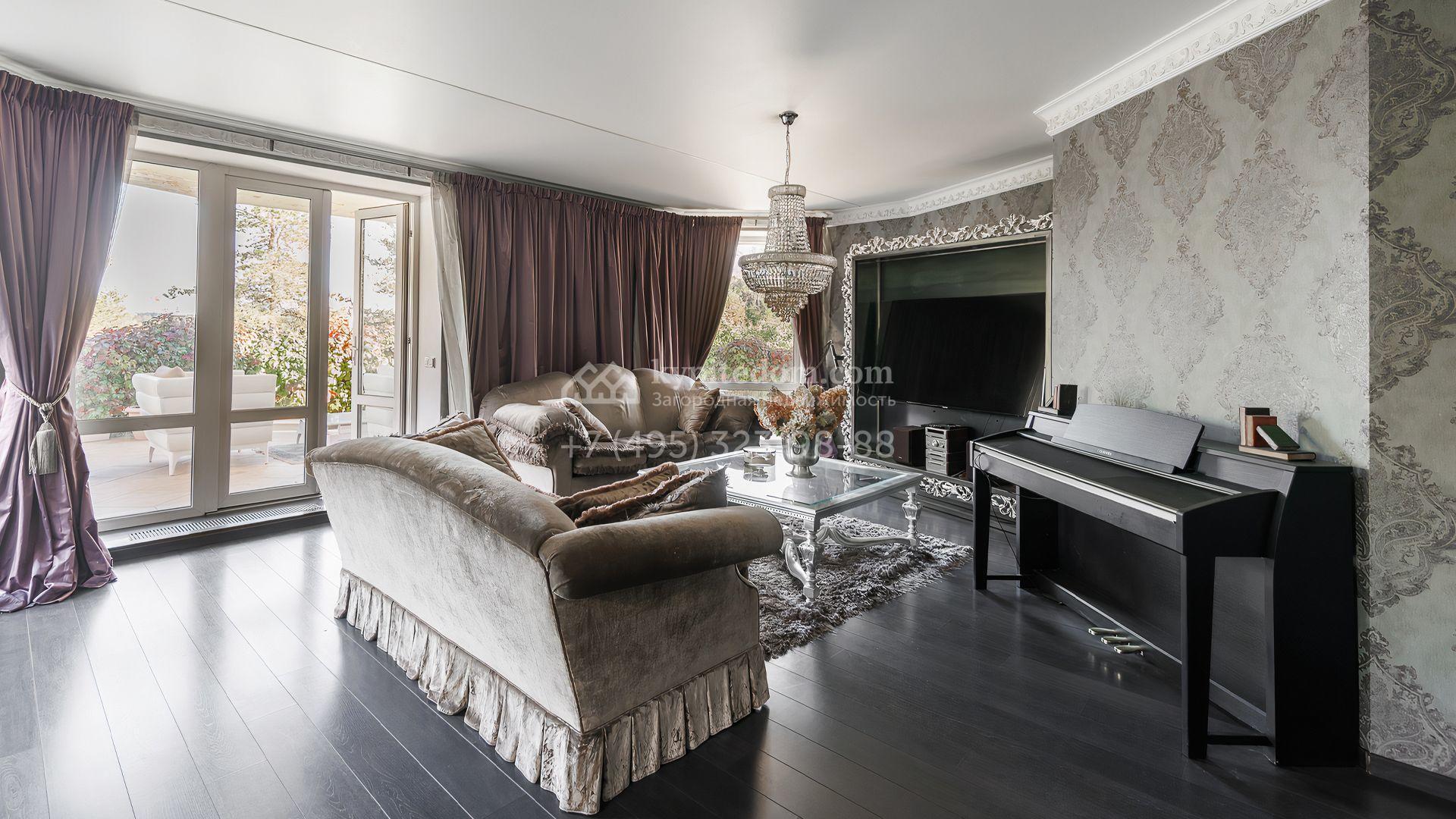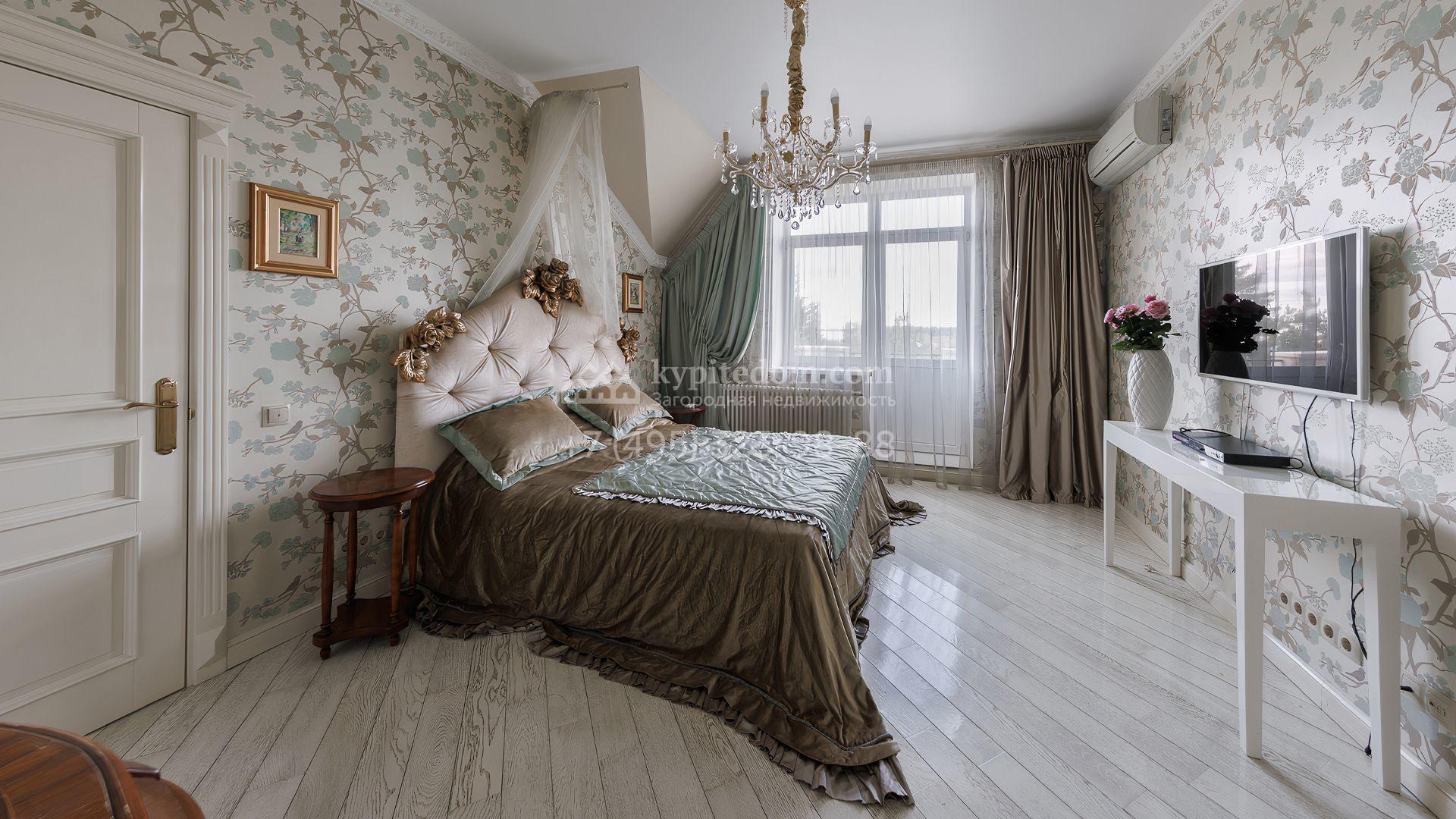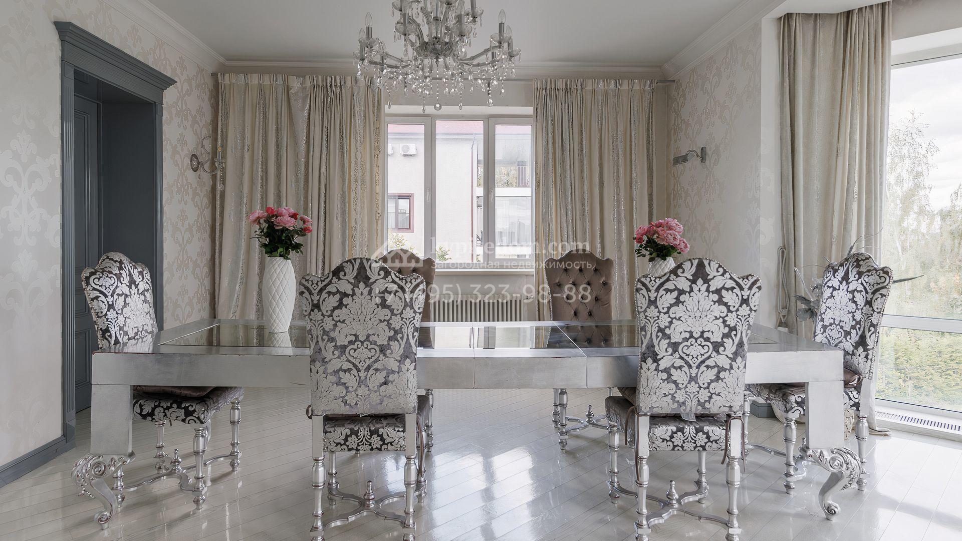 Загородный дом площадью 400 м² расположен на просторном полевом участке 22 сотки. Фасад в европейском стиле облицован бежевым камнем. В отделке интерьера преобладют светлые бежевые и серые оттенки. Резиденция меблирована эксклюзивной итальянской мебелью и укомплектована премиальной бытовой техникой. Планировкой предусмотрены 5 спален, 2 кухни, 2 гостиные с камином и пианино. Отдохнуть на свежем воздухе можно на двух террасах, одна из которых оборудована зоной барбекю и джакузи. На разноуровневом участке выполнен ландшафтный дизайн, обустроен сад с цветущей магнолией, сакурой, соснами, кедрами, туями и плодоносными деревьями.