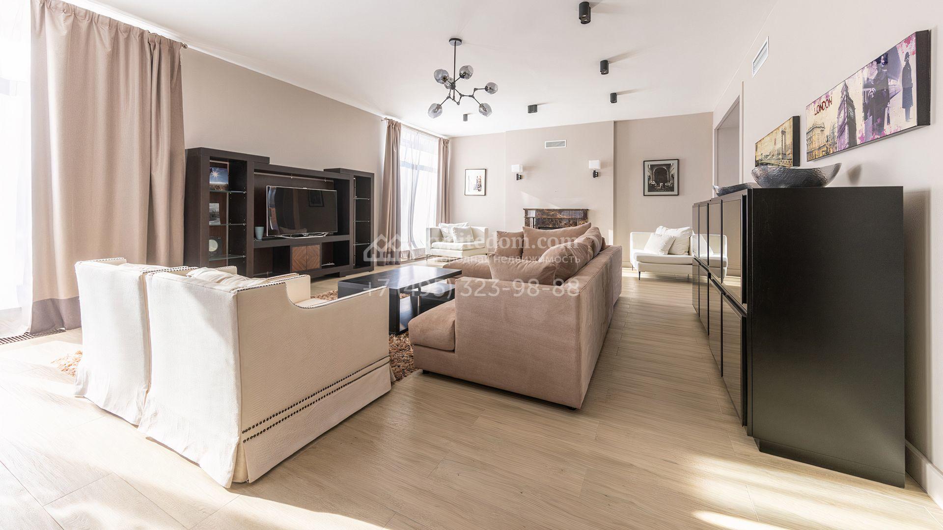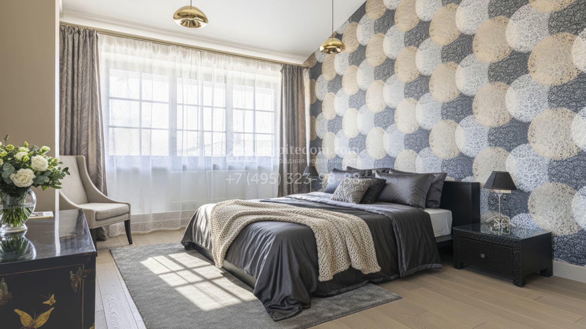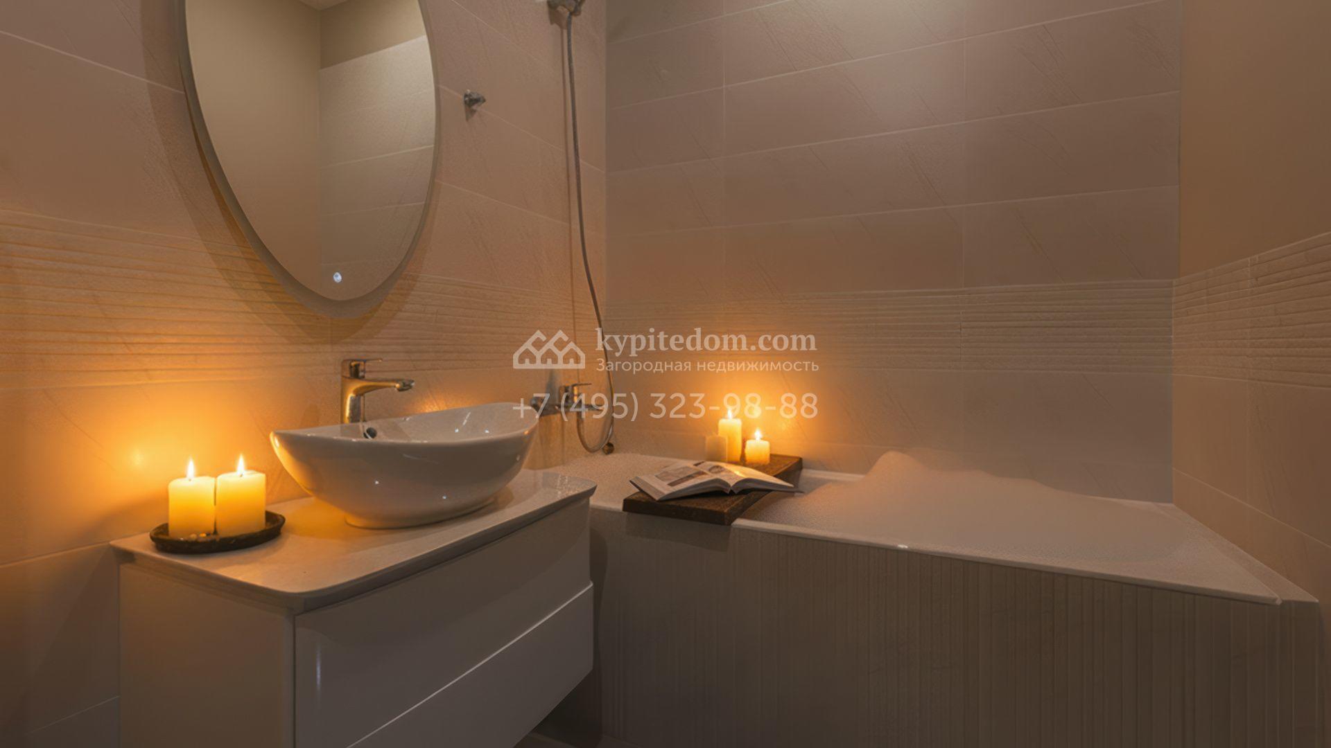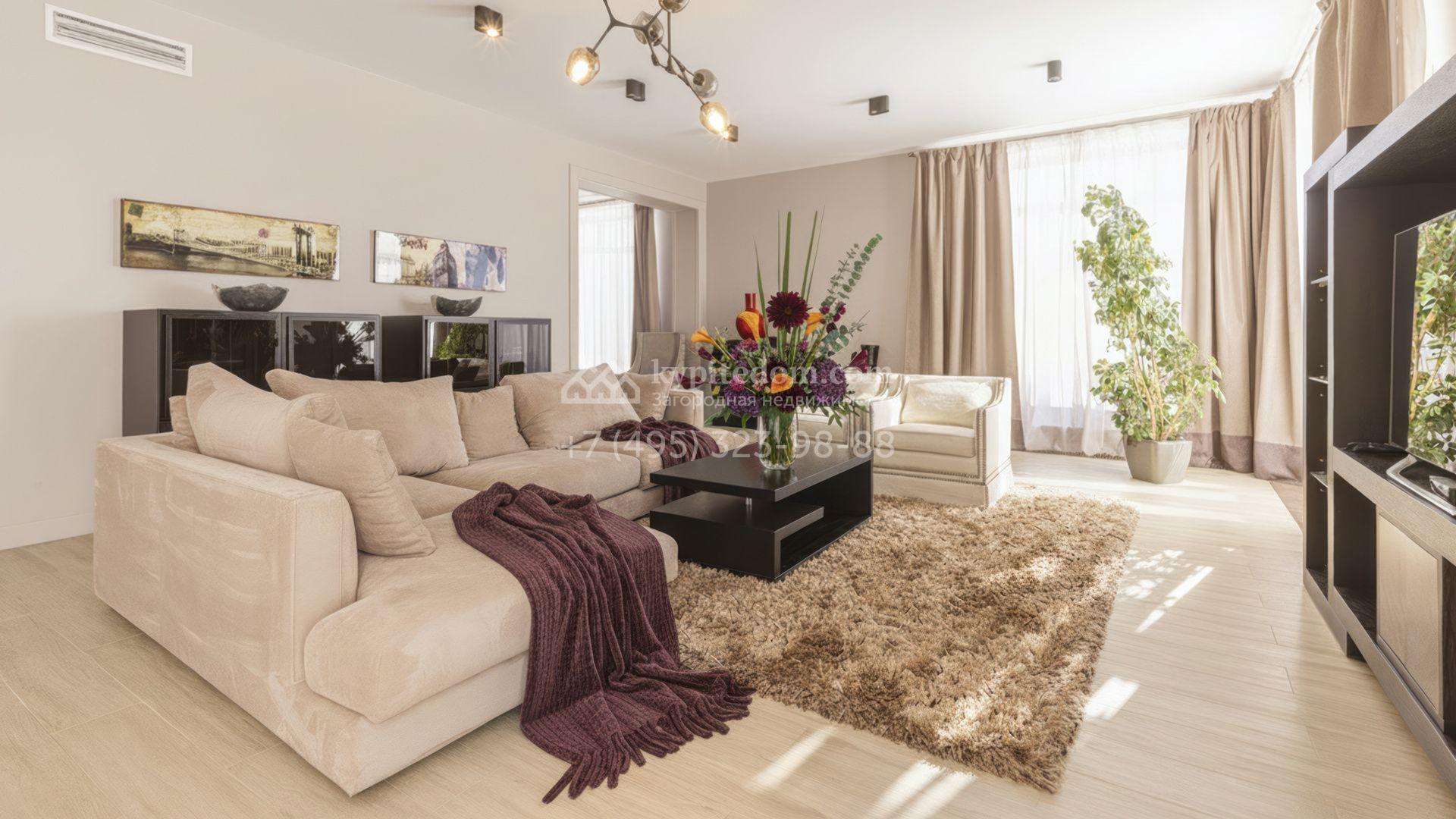Загородный дом площадью 422 м² построен на просторном полевом участке 22 сотки. Фасад здания облицован бежевым клинкерным кирпичом и декорирован вставками с фактурой дерева. Интерьер выполнен в современном стиле, в отделке использованы на стенах краска и вставки из высококачественных обоев, на полу итальянская плитка и инженерная доска, установлены дубовая лестница и двери с натуральным шпоном. Дом укомплектован встроенными шкафами и гардеробными. Планировка резиденции включает 6 спален, гостиную с камином, кухню-столовую, кабинет и террасу, на которой можно обустроить зону барбекю. В контуре коттеджа предусмотрен гараж на 2 машины.