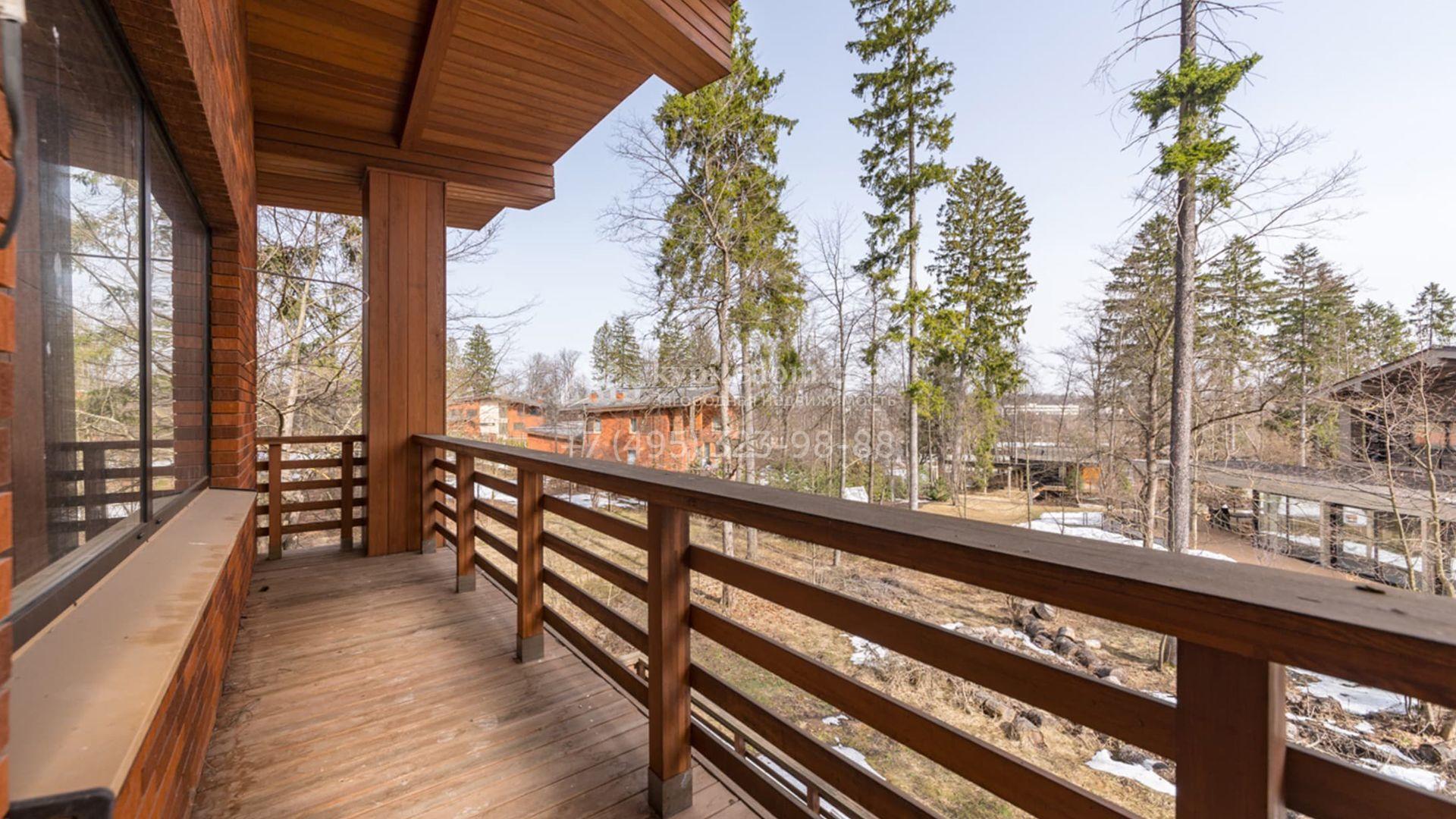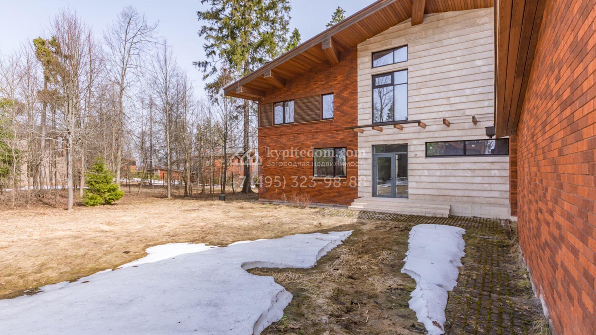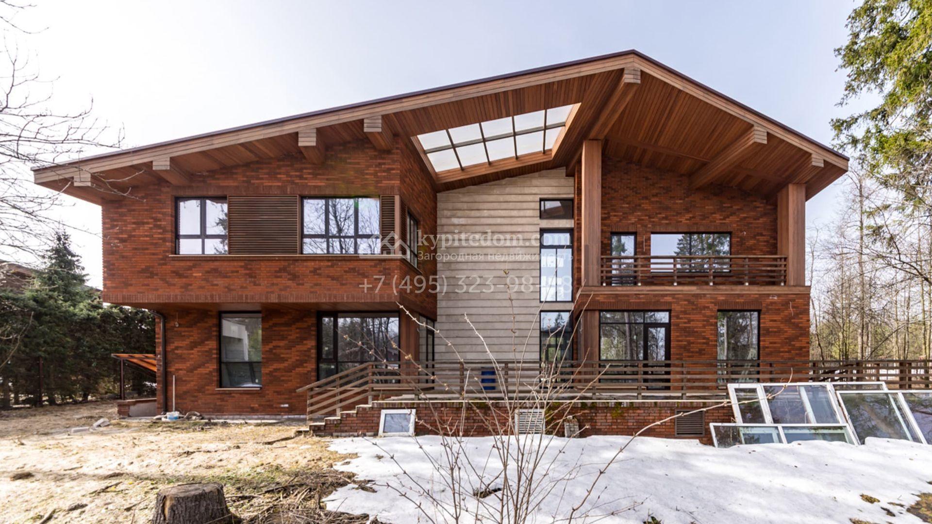 Загородный дом площадью 630 м² построен на просторном участке 28 соток с лесными деревьями в центральной части поселка. Фасад здания в современном стиле облицован красным клинкерным кирпичом и травертином. Внутри выполнена отделка whitebox — осталось лишь выбрать финишные покрытия, мебель и технику. В резиденции спланировали 5 спален, кухню-гостиную, кабинет, парную с купелью и большую террасу. В контуре дома предусмотрен гараж. На участке можно выполнить ландшафтный дизайн и обустроить беседку с зоной барбекю.