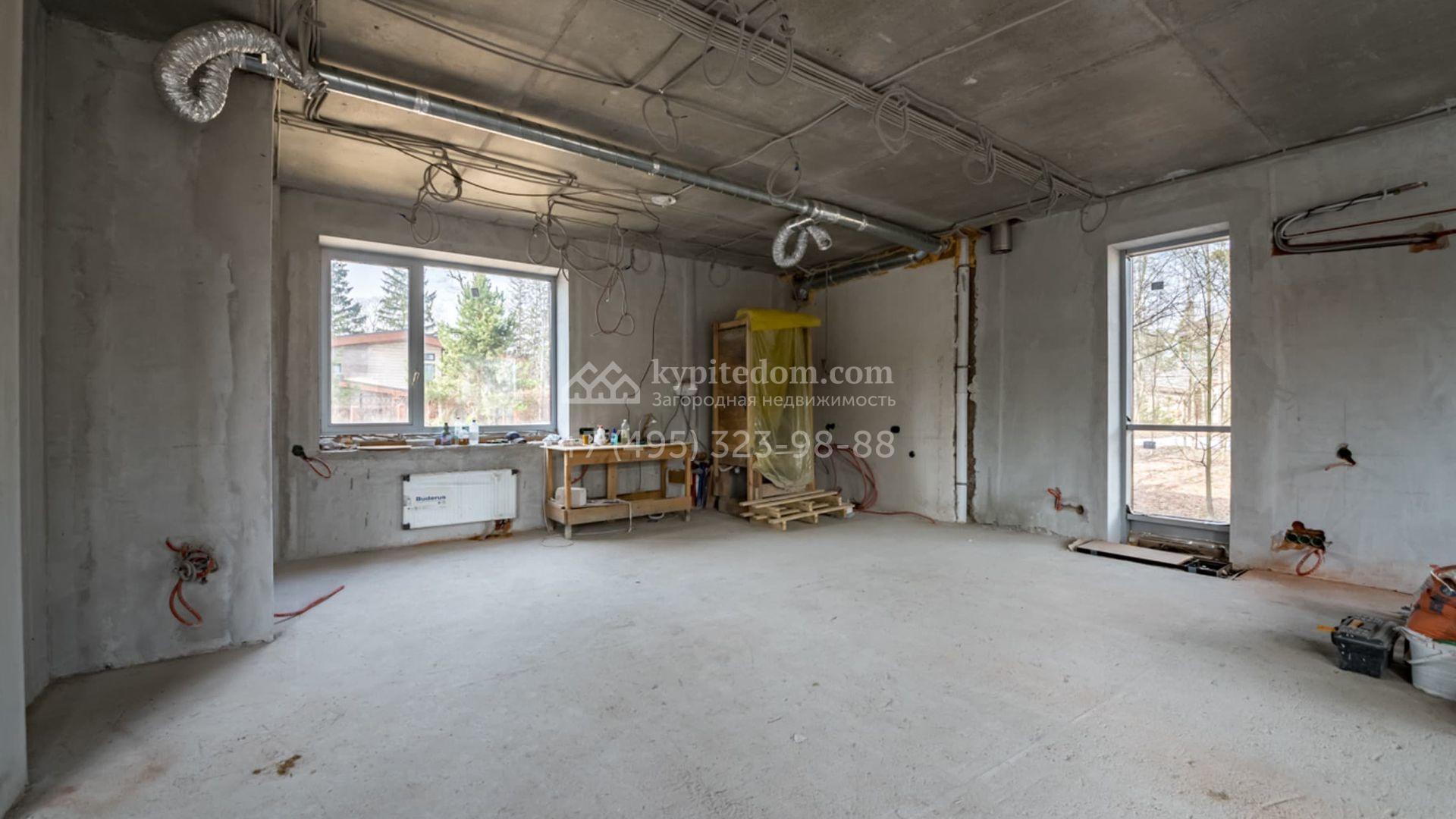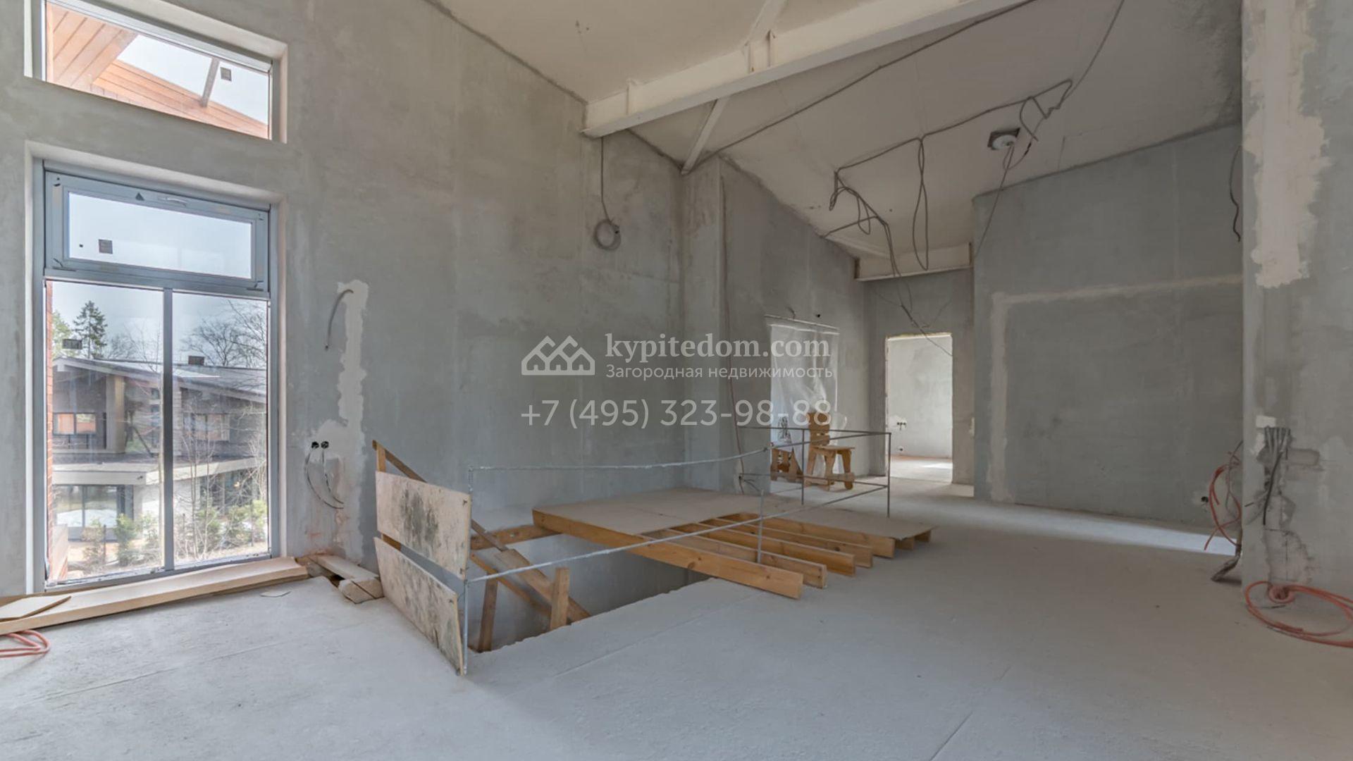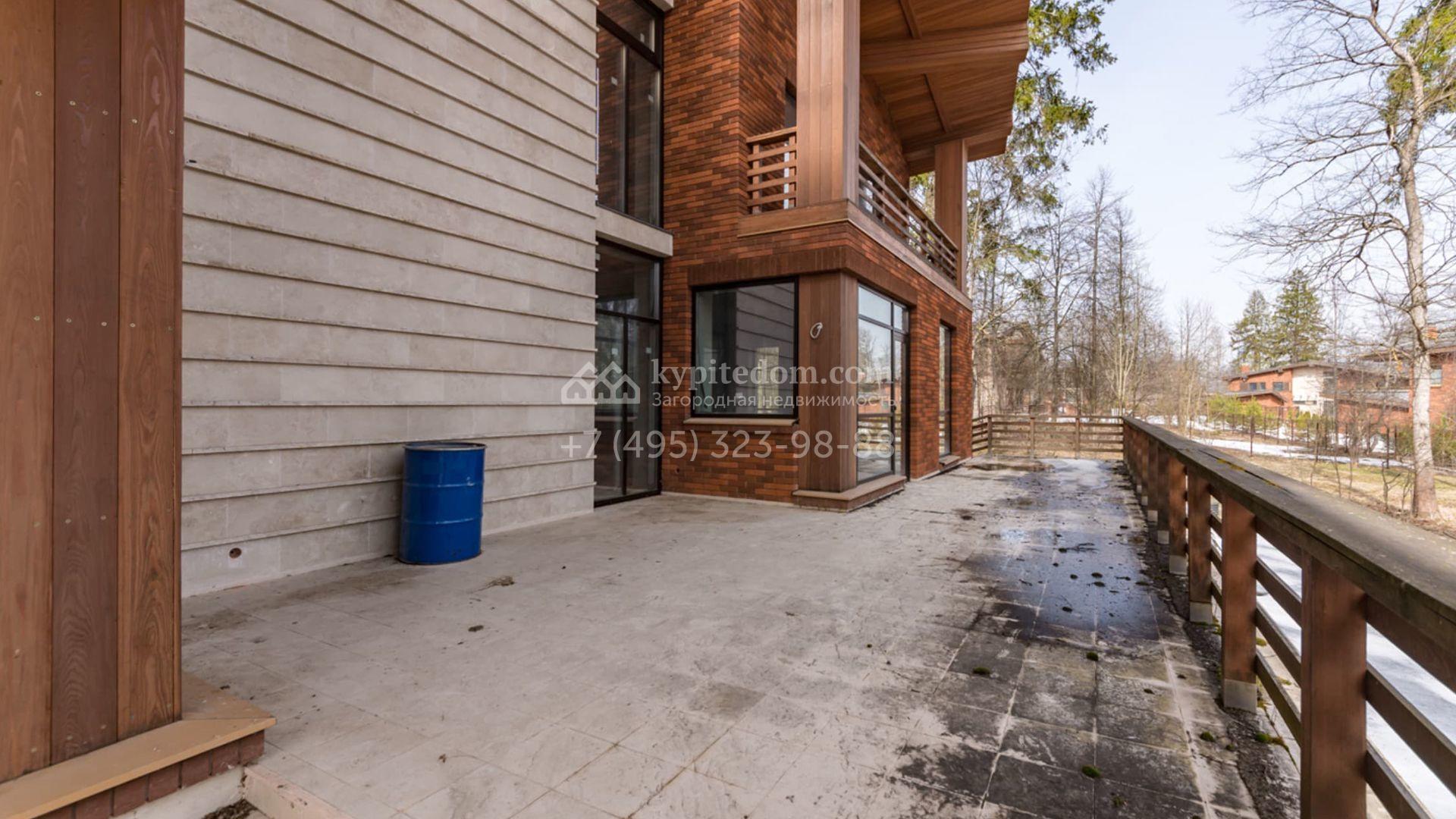 Загородный дом площадью 630 м² построен на просторном участке 28 соток с лесными деревьями в центральной части поселка. Фасад здания в современном стиле облицован красным клинкерным кирпичом и травертином. Внутри выполнена отделка whitebox — осталось лишь выбрать финишные покрытия, мебель и технику. В резиденции спланировали 5 спален, кухню-гостиную, кабинет, парную с купелью и большую террасу. В контуре дома предусмотрен гараж. На участке можно выполнить ландшафтный дизайн и обустроить беседку с зоной барбекю.