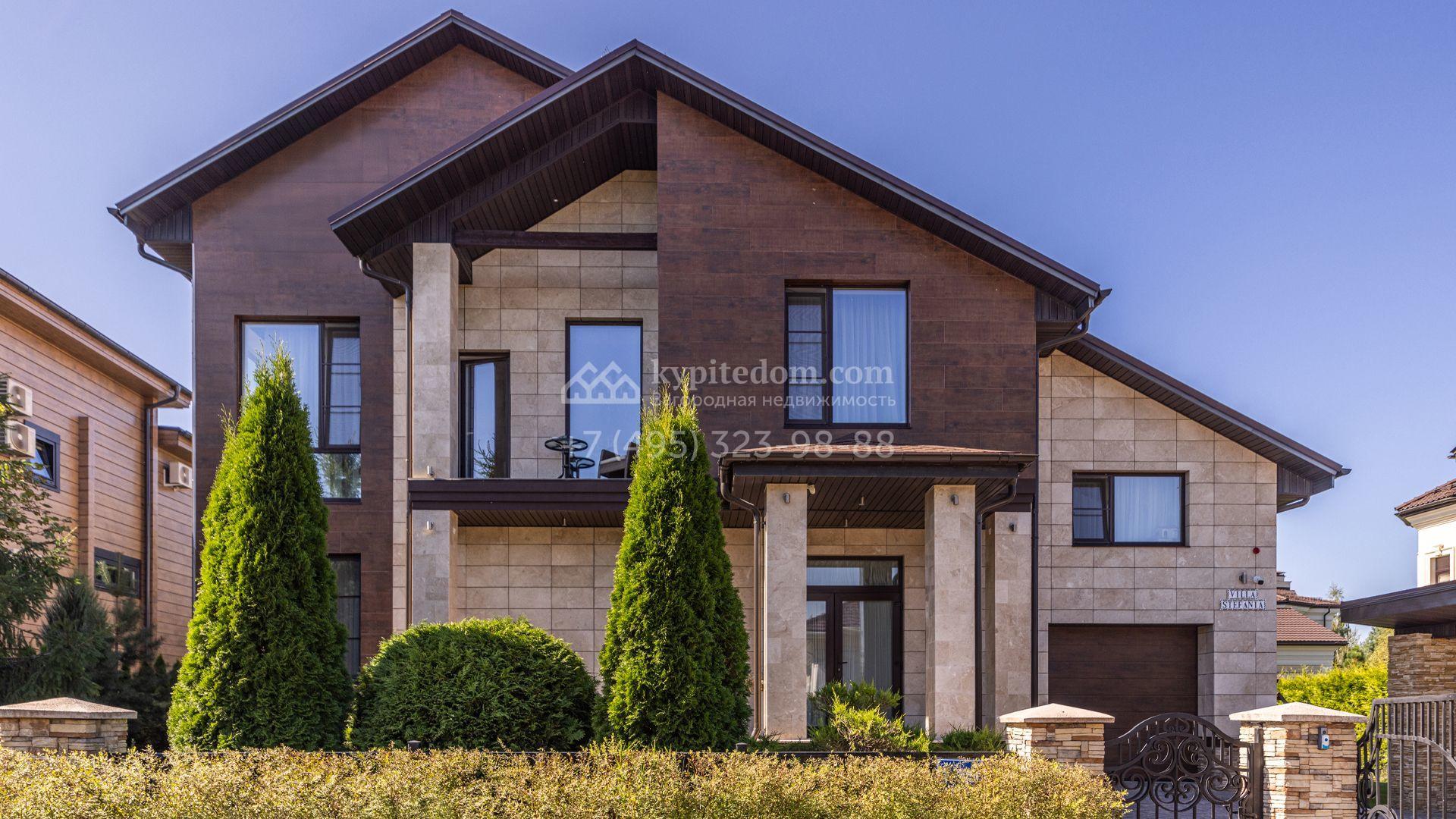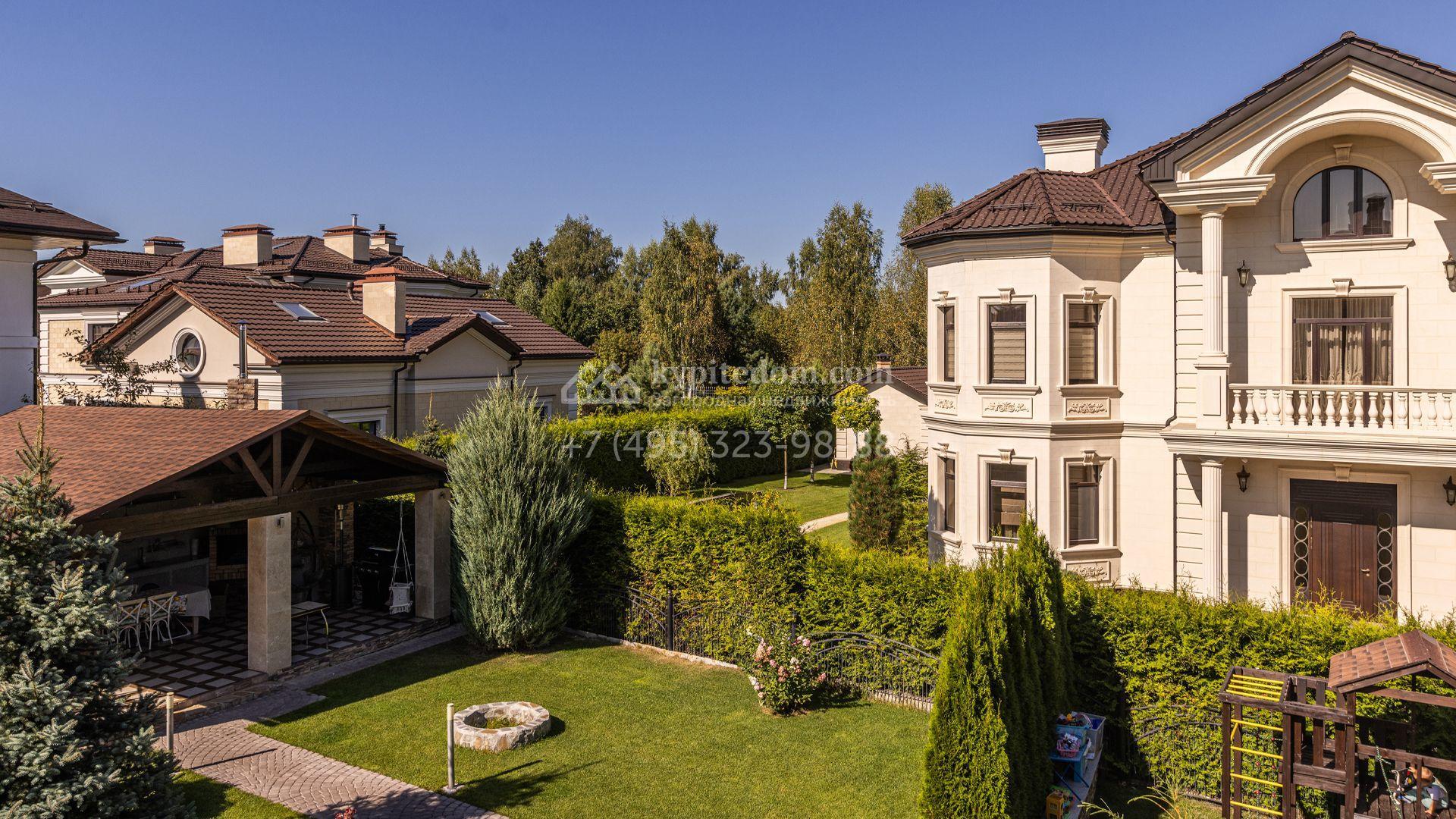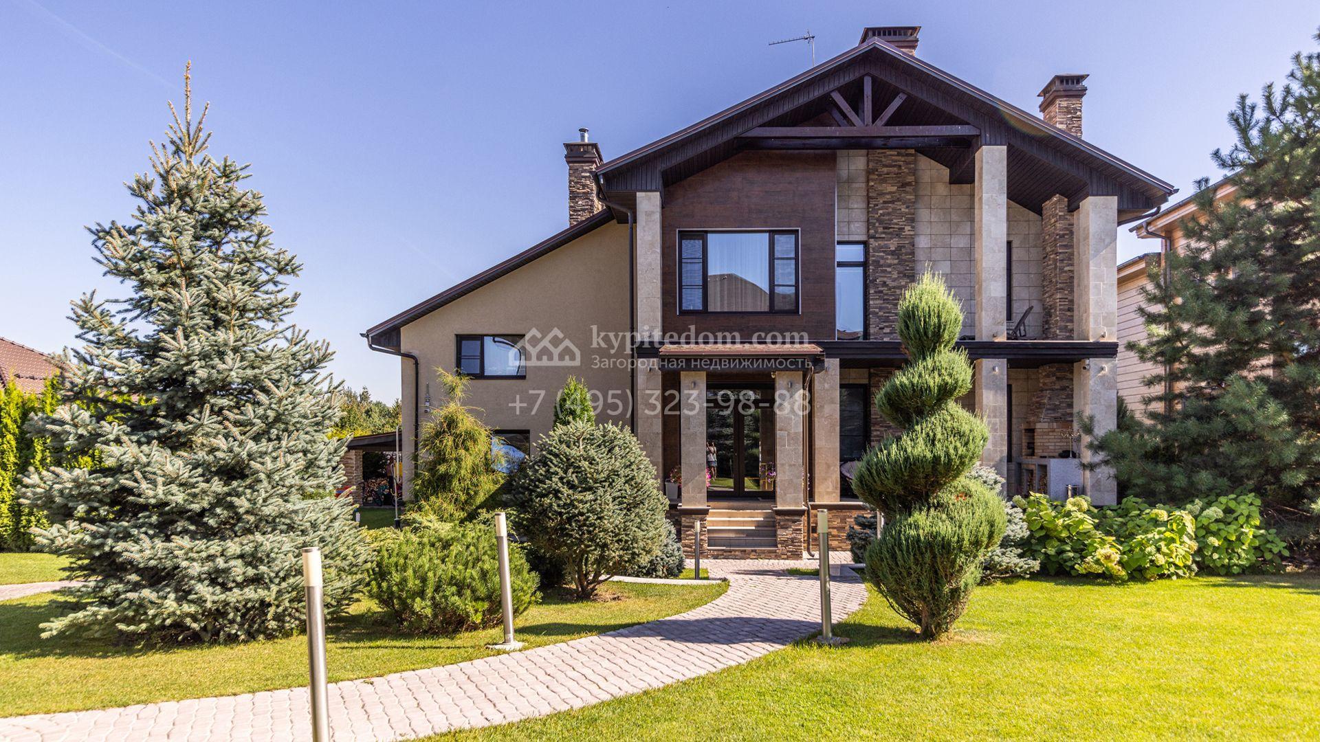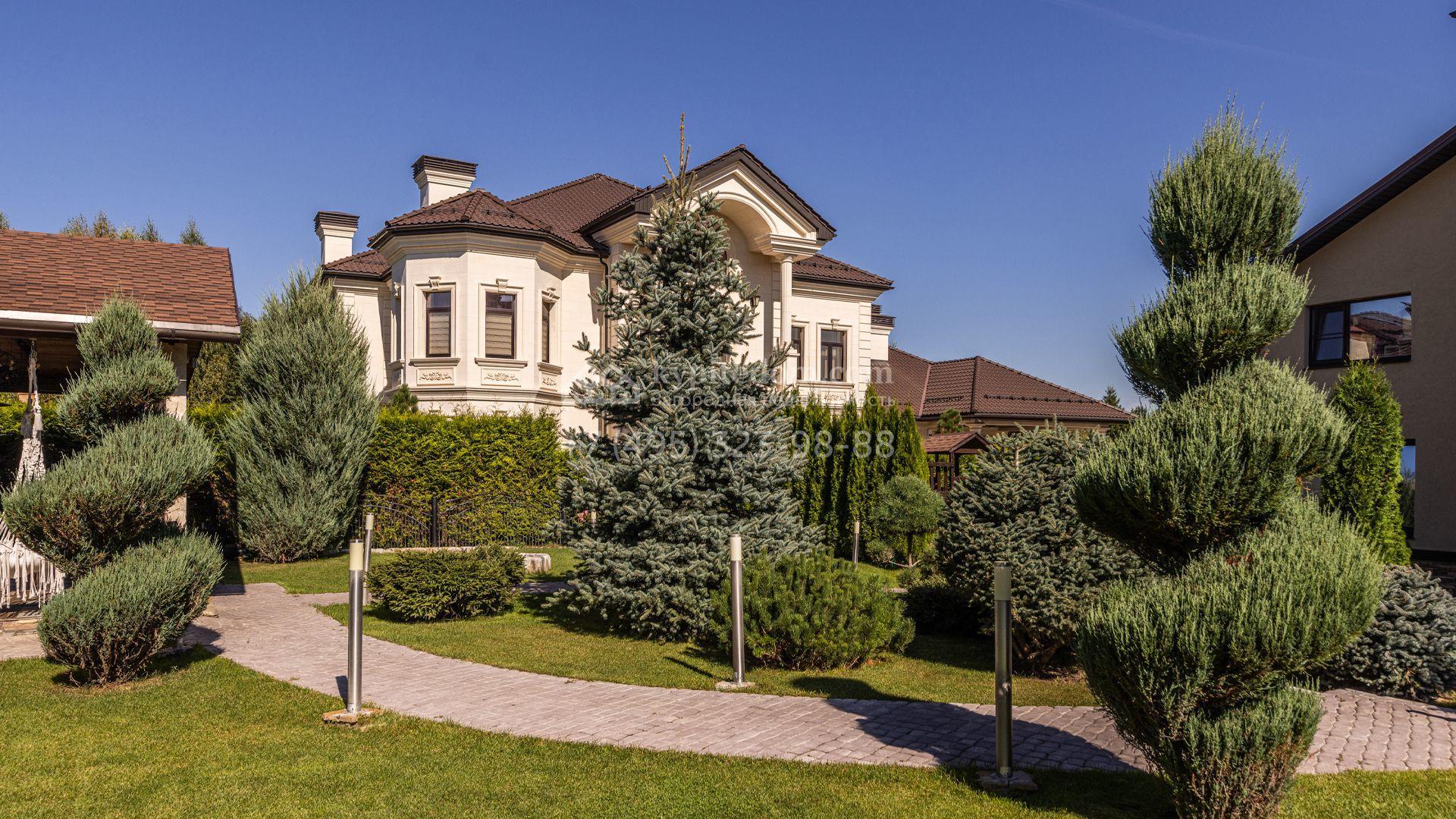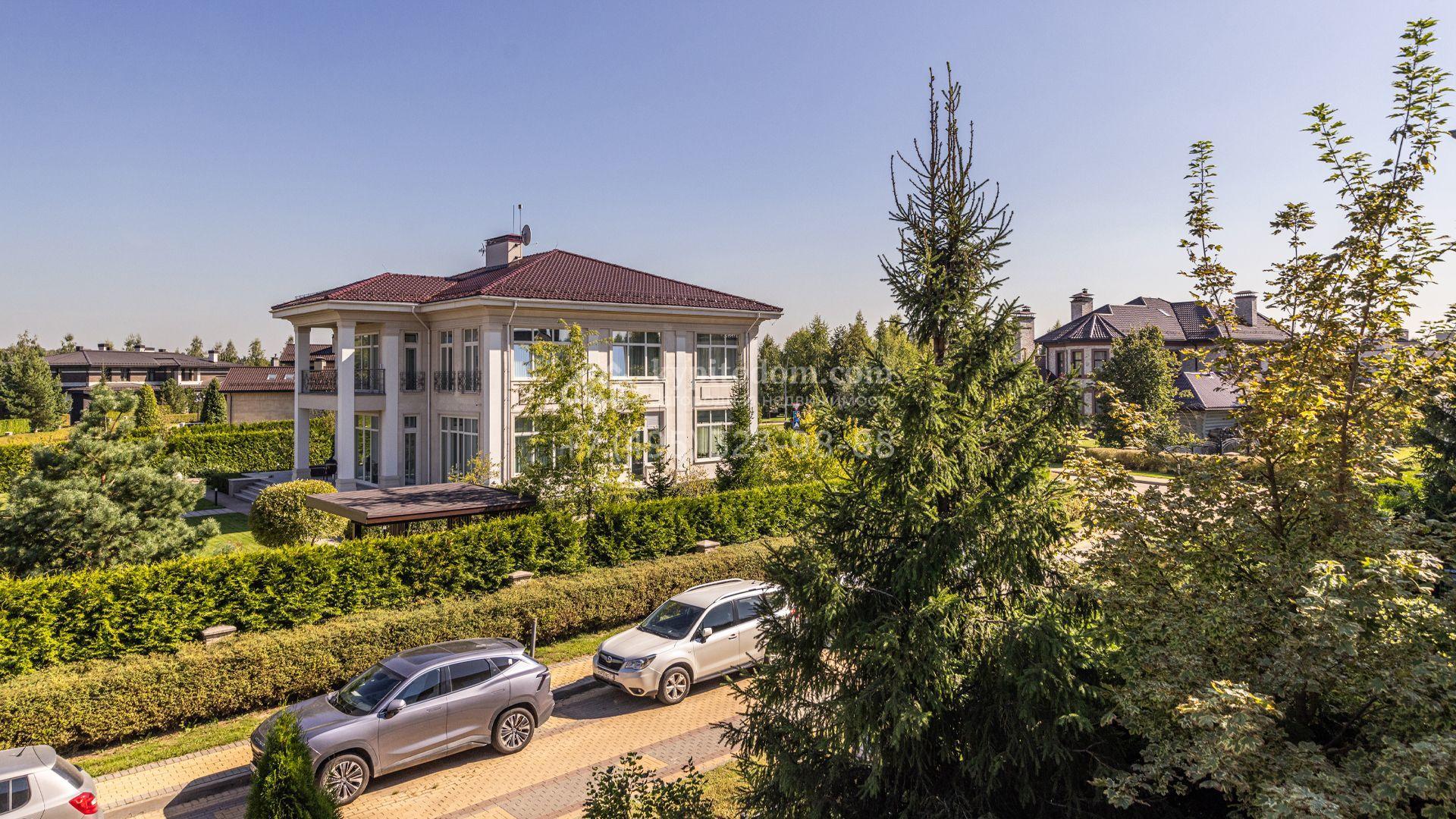 Загородная резиденция площадью 470 м² построена на полевом участке 11 соток в самом центре поселка, на второй линии от реки Беляны. Фасад здания в современном стиле облицован итальянским мрамором и керамогранитом. В отделке интерьера с элементами классики пробладают теплые оттенки, фактура камня и дерева. Планировка коттеджа включает 5 спален, уютную кухню-столовую-гостиную с камином, кабинет с камином и видом на парковую зону, бильярдную, кинотеатр, баню на дровах и SPA с циркулярным душем. В контуре дома предусмотрен гараж на 1 машину. Рядом расположены навес на 2 машины и беседка с огнищем и кухней. На участке выполнены ландшафтный дизайн и трехуровневые дренажные работы, высажены сортовые голубые ели и другие хвойные деревья, а также кустарники и бонсаи.