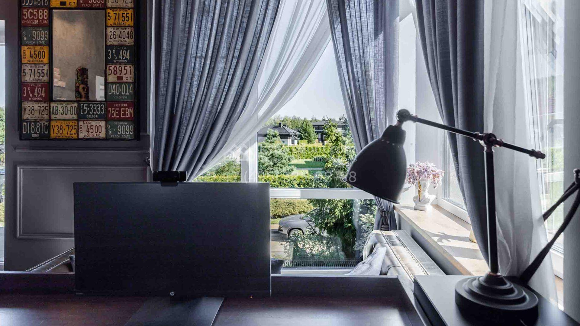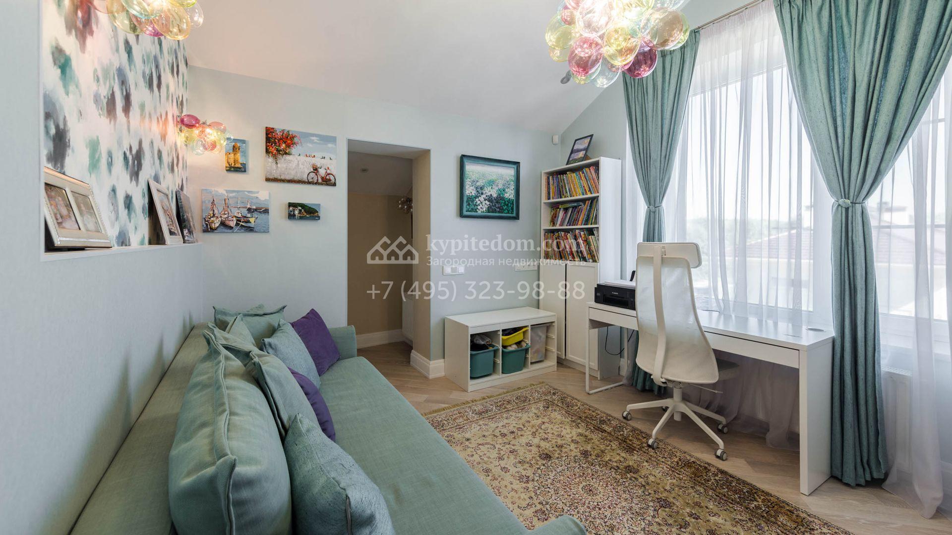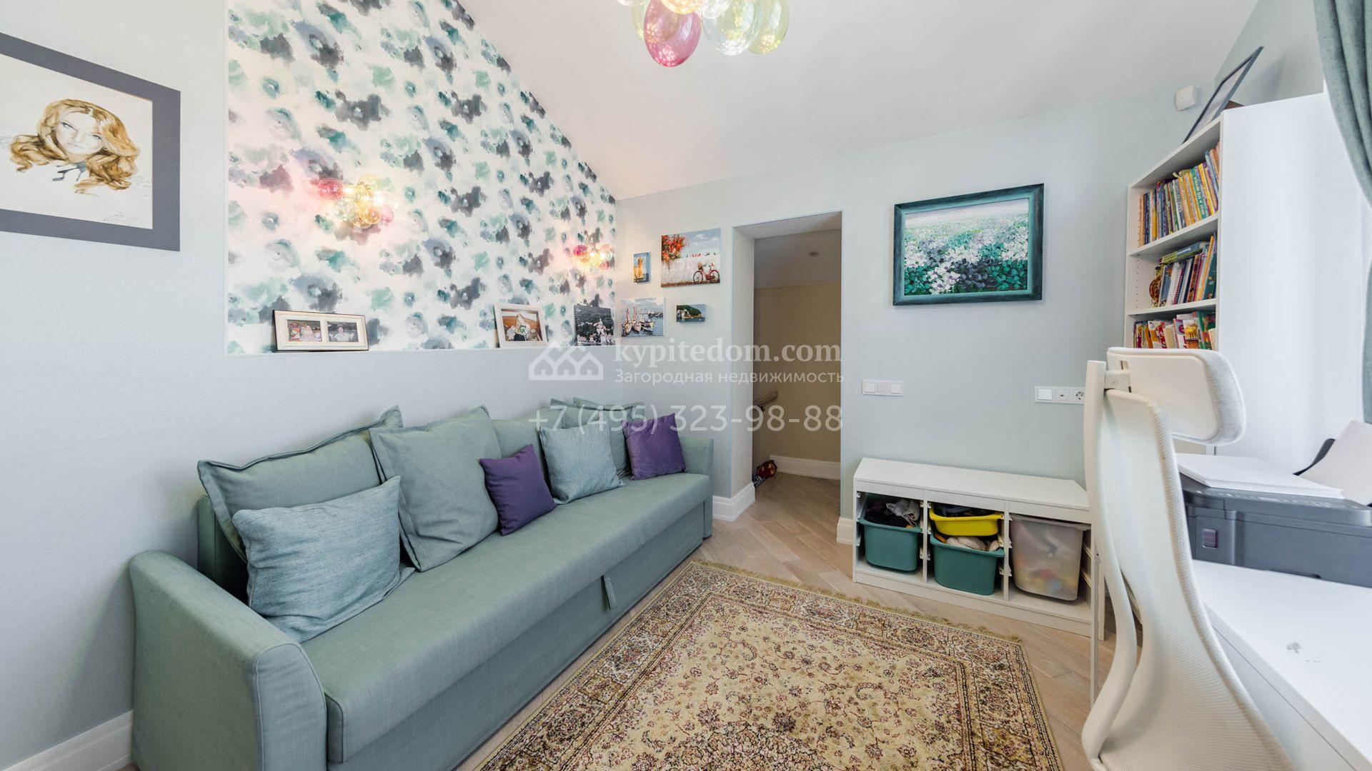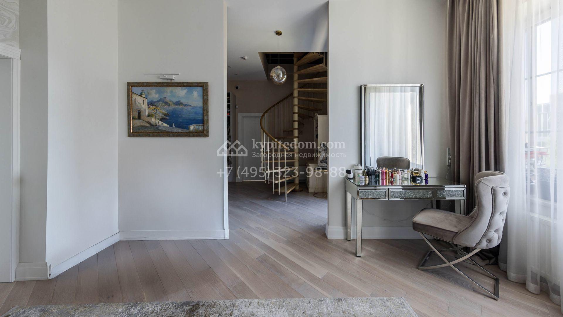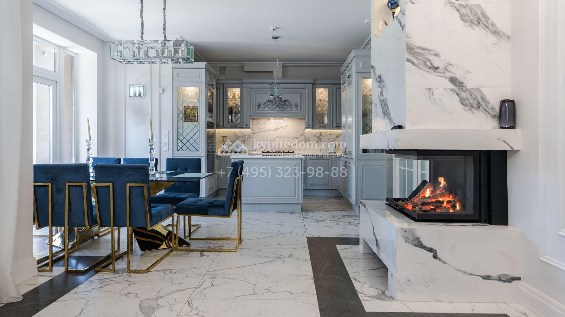 Загородная резиденция площадью 470 м² построена на полевом участке 11 соток в самом центре поселка, на второй линии от реки Беляны. Фасад здания в современном стиле облицован итальянским мрамором и керамогранитом. В отделке интерьера с элементами классики пробладают теплые оттенки, фактура камня и дерева. Планировка коттеджа включает 5 спален, уютную кухню-столовую-гостиную с камином, кабинет с камином и видом на парковую зону, бильярдную, кинотеатр, баню на дровах и SPA с циркулярным душем. В контуре дома предусмотрен гараж на 1 машину. Рядом расположены навес на 2 машины и беседка с огнищем и кухней. На участке выполнены ландшафтный дизайн и трехуровневые дренажные работы, высажены сортовые голубые ели и другие хвойные деревья, а также кустарники и бонсаи.