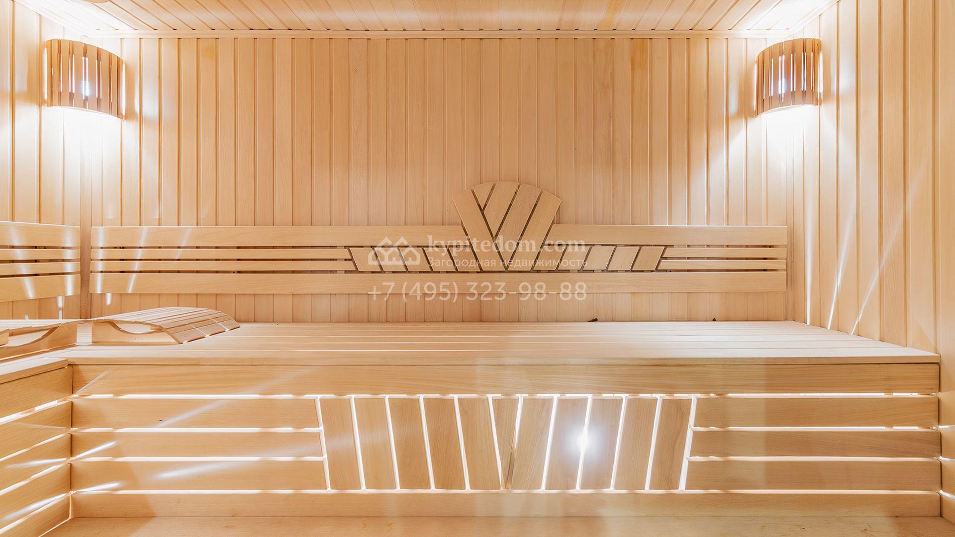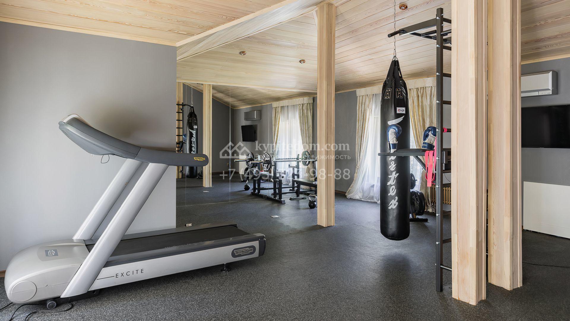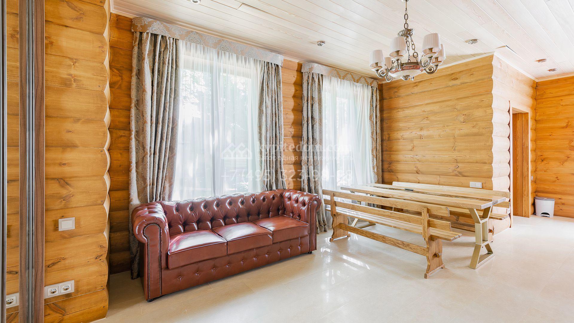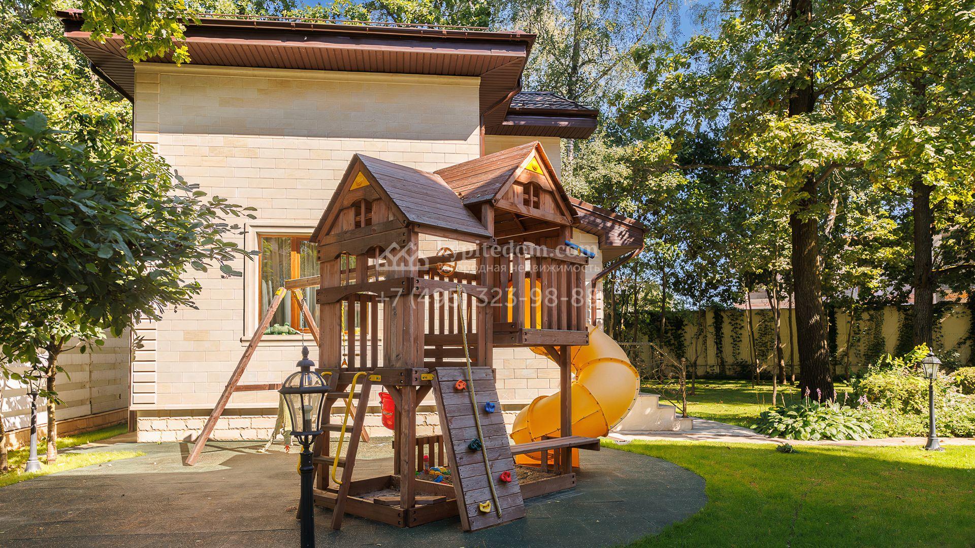 Загородный дом площадью 550 м² построен на просторном участке 20 соток рядом с лесом. Фасад здания облицован бежевым камнем, декорирован резным карнизом и коваными элементами. Интерьер выдержан в классическом стиле, в отделке использованы теплые оттенки, колонны, фактура дерева и камня. В резиденции спланировали 5 спален, гостиную-столовую с камином, кухню, кабинет, хаммам и сауну. Рядом расположены гараж на 2 машины с квартирой для персонала и баня со спортзалом. На участке с ландшафтным дизайном вымощены дорожки, засеян газон, установлено уличное освещение и оборудована закрытая летняя кухня с мангалом, коптильней и тандыром.