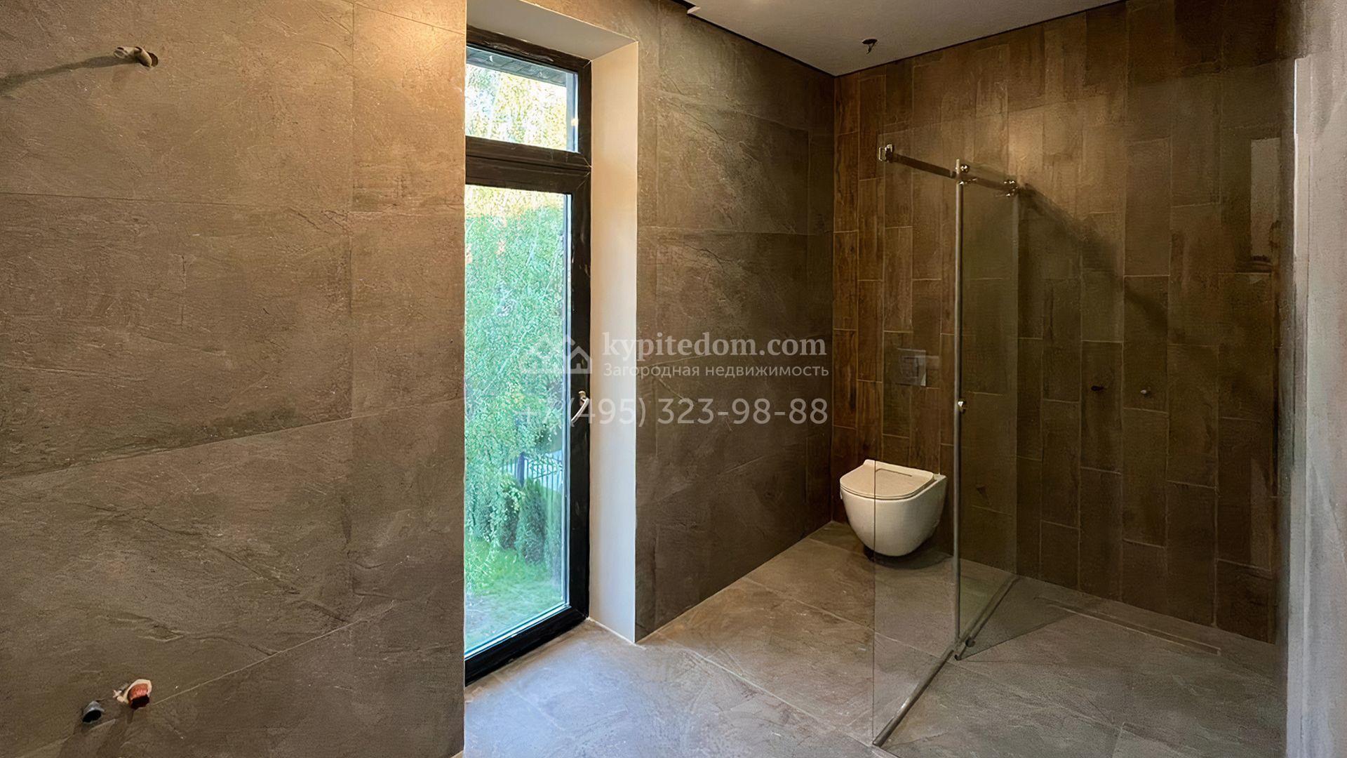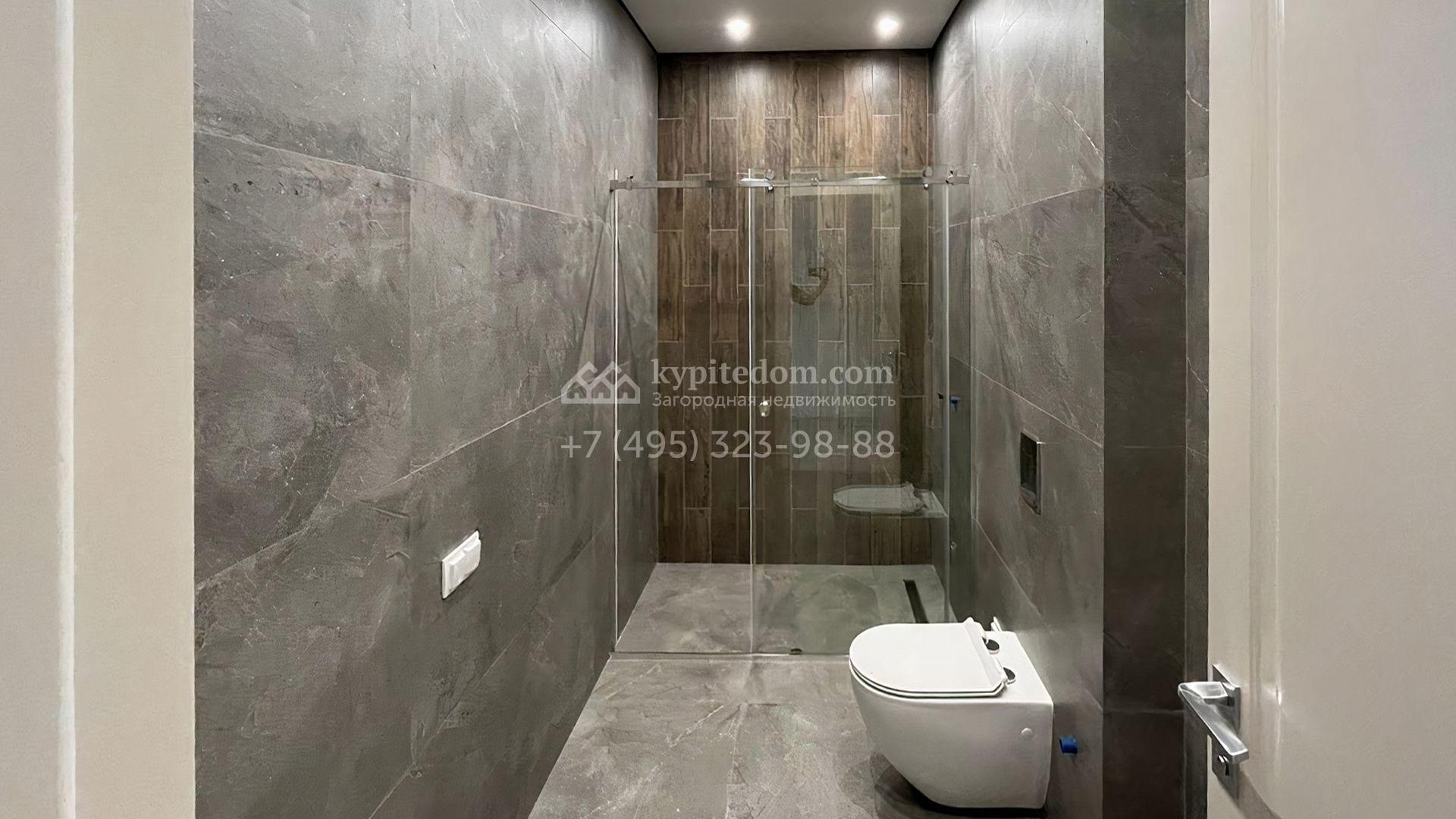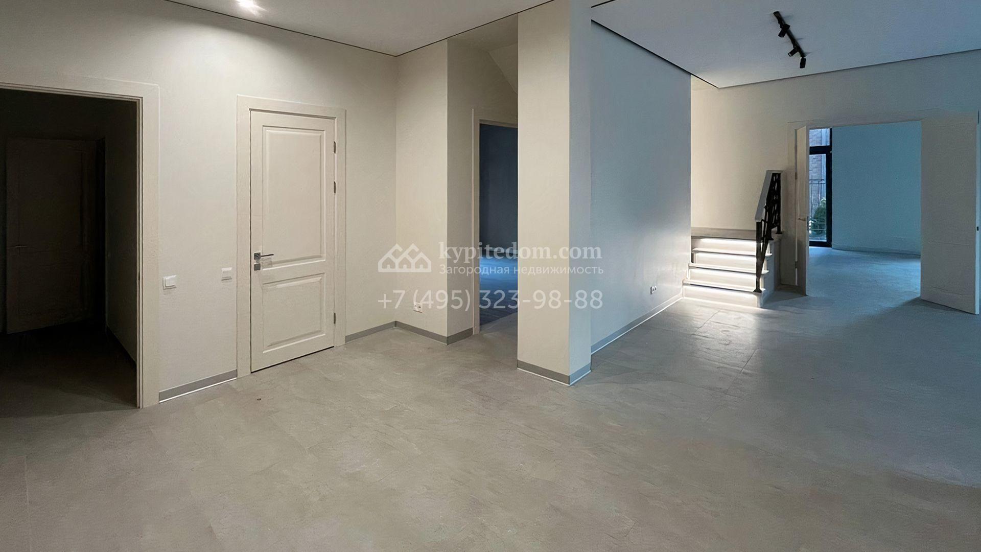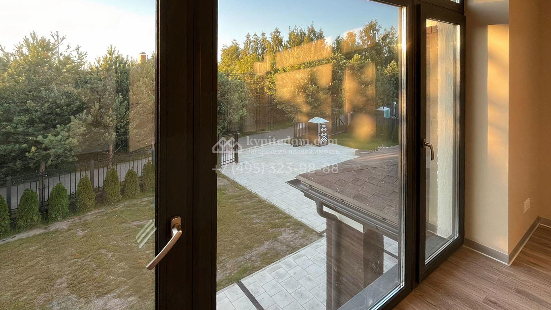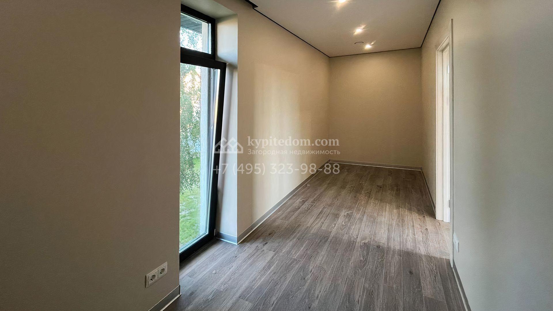 Загородный дом площадью 540 м² построен на уютном полевом участке 12,5 сотки. Фасад здания, вдохновленный архитектурой Фрэнка Ллойда Райта, облицован коричневым клинкером и декорирован подсветкой. В отделке современного интерьера сочетаются теплые оттенки и фактура дерева и камня. Подсветка по периметру комнат создает ощущение парящего потолка. Планировка коттеджа включает 5 спален, гостиную, кухню, кабинет и гараж на 2 машины. На участке с газоном и молодыми березами можно выполнить ландшафтный дизайн и обустроить зону барбекю.