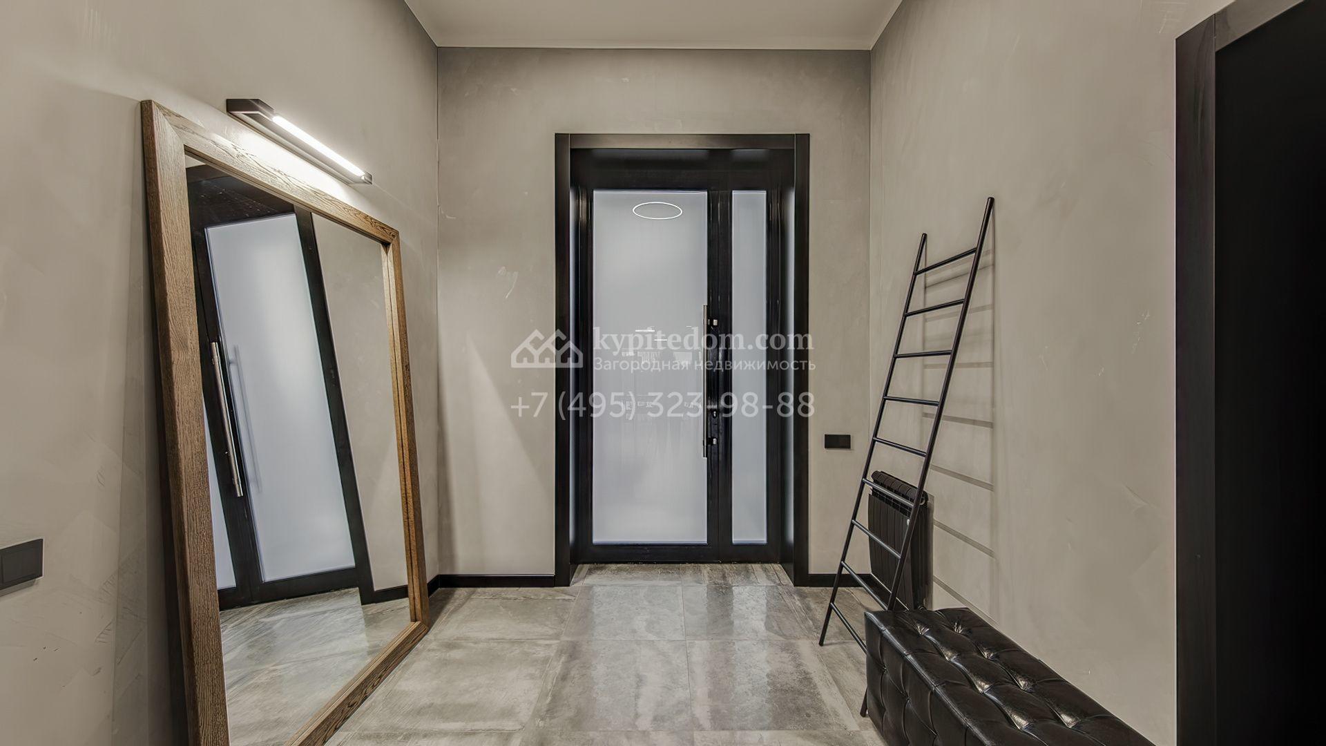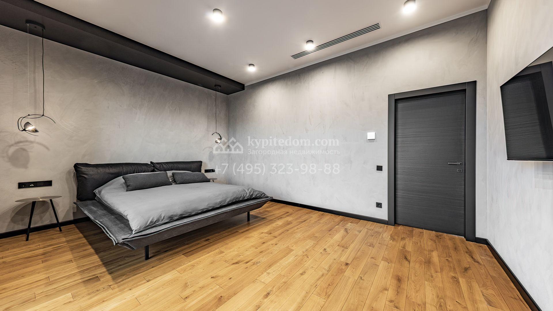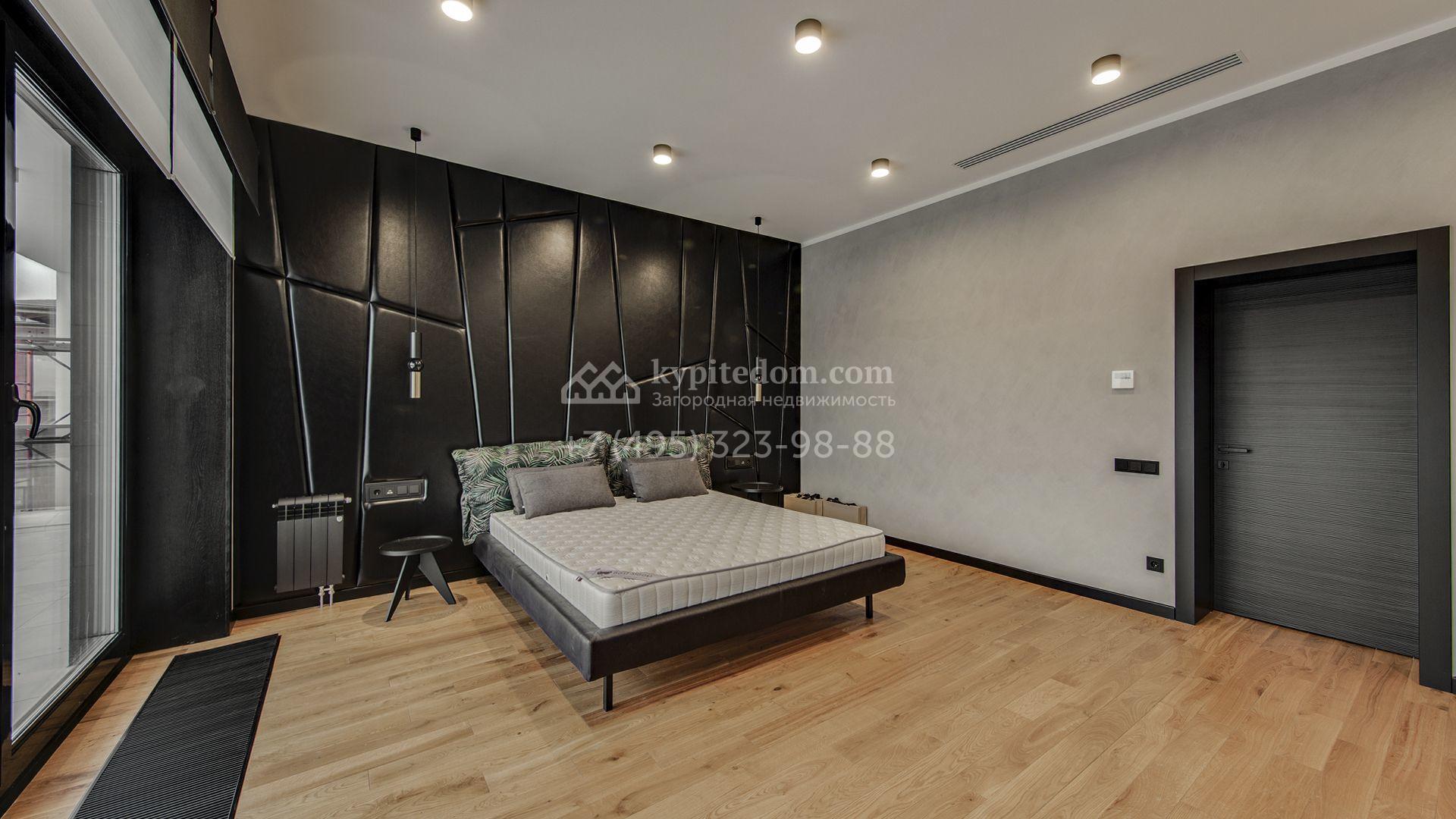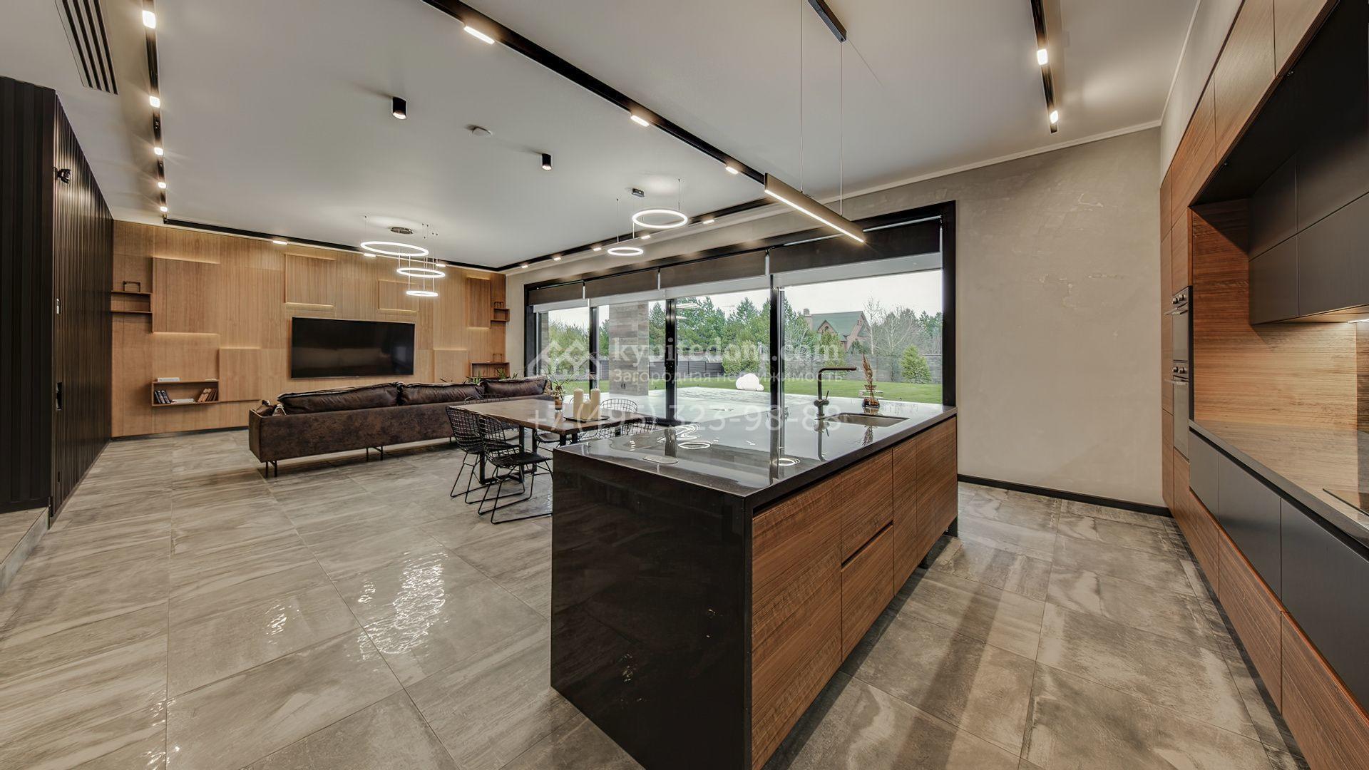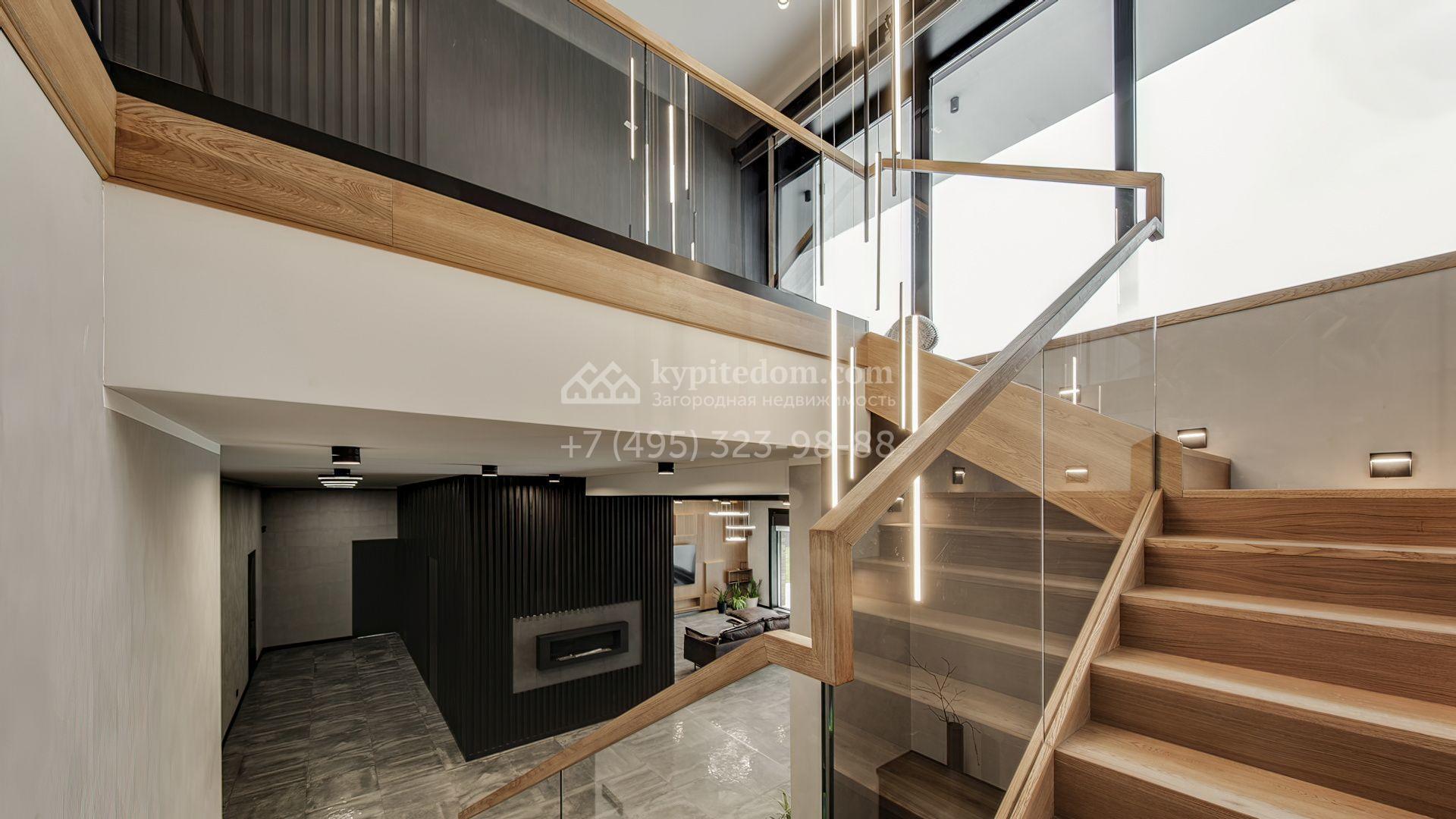 Дом оснащён современными инженерными системами — приточно-вытяжной вентиляцией, кондиционированием, «умным домом», тёплыми полами и многоступенчатой фильтрацией воды. Интерьеры оформлены в стиле ар-деко, с минималистичным подходом, контрастной черно-белой палитрой и выразительными акцентами из тёплого дерева редких пород. Высота потолков достигает 3,7 метра, а широкие панорамные окна Schuco создают эффект бесшовного перехода между домом и улицей.
