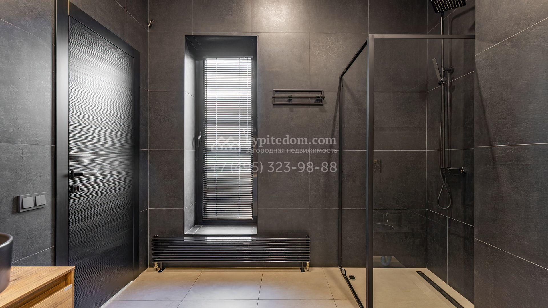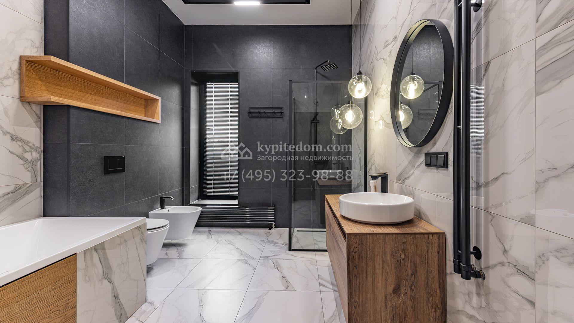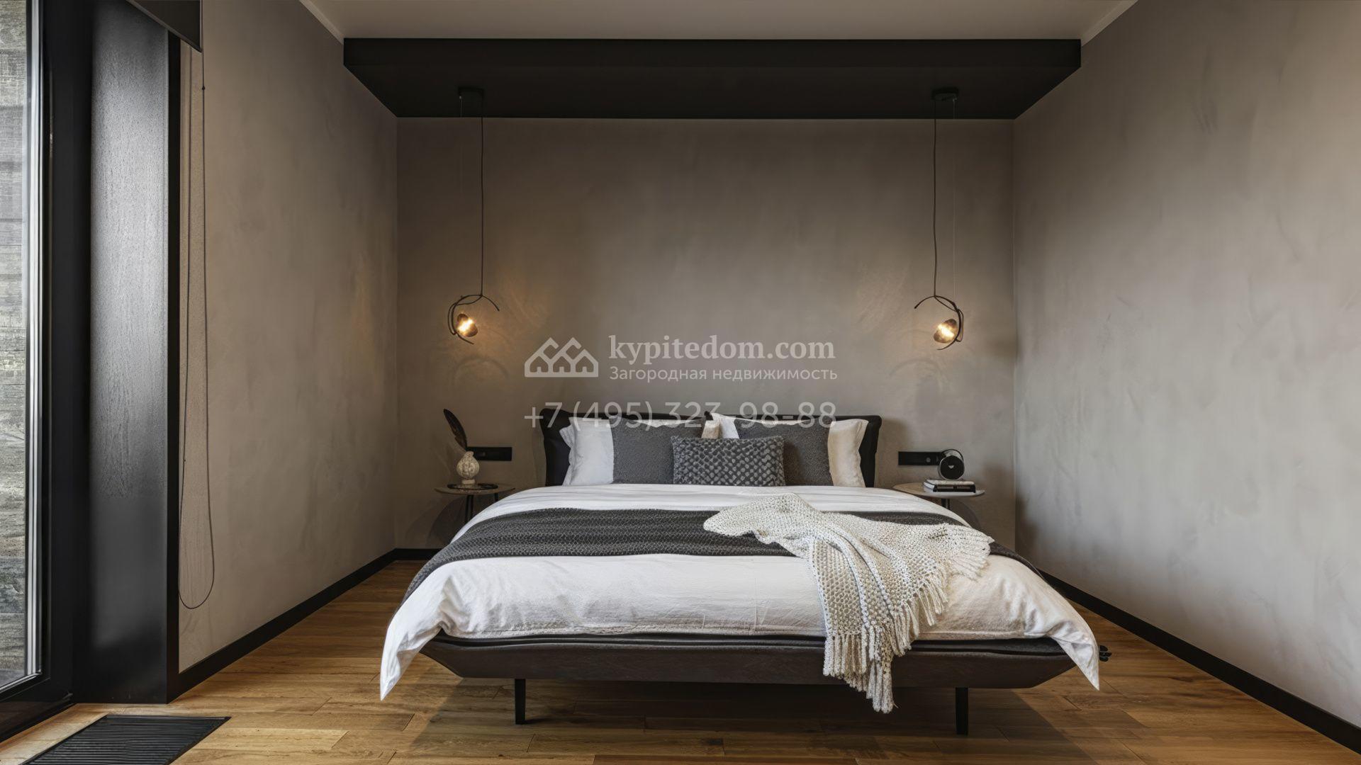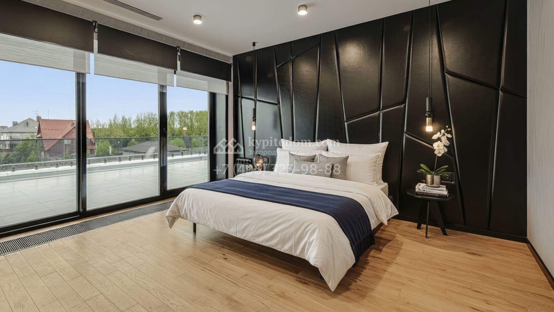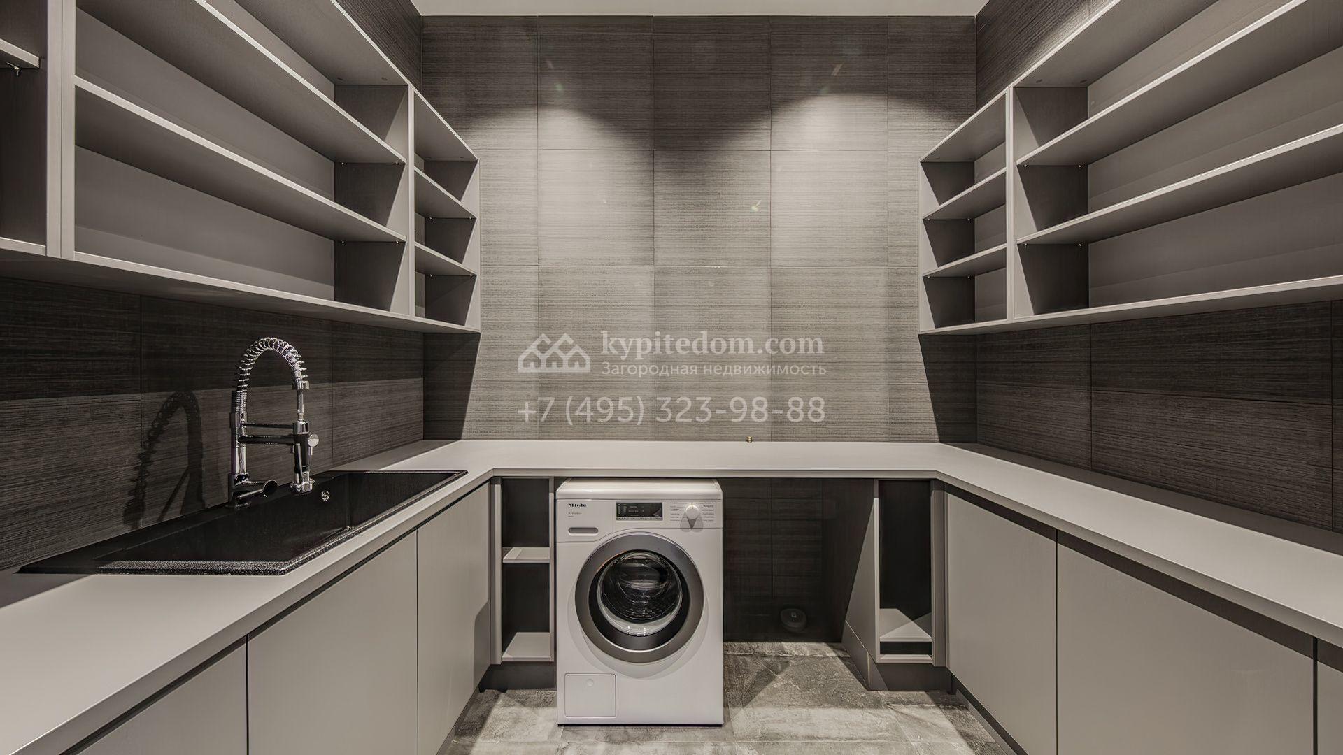 Дом оснащён современными инженерными системами — приточно-вытяжной вентиляцией, кондиционированием, «умным домом», тёплыми полами и многоступенчатой фильтрацией воды. Интерьеры оформлены в стиле ар-деко, с минималистичным подходом, контрастной черно-белой палитрой и выразительными акцентами из тёплого дерева редких пород. Высота потолков достигает 3,7 метра, а широкие панорамные окна Schuco создают эффект бесшовного перехода между домом и улицей.