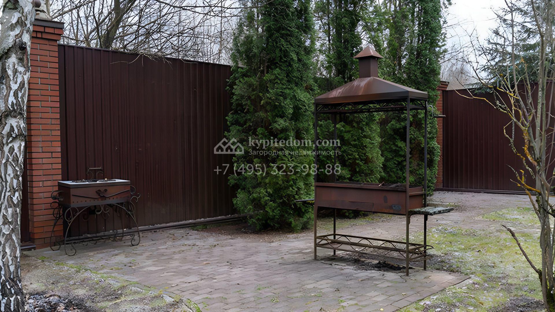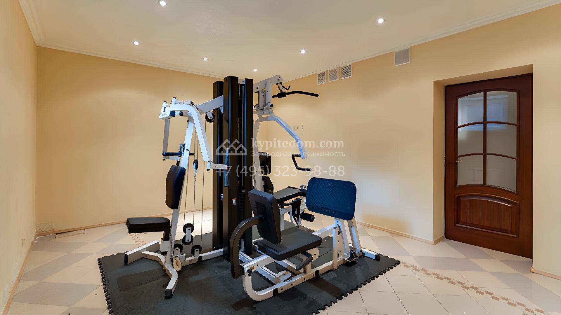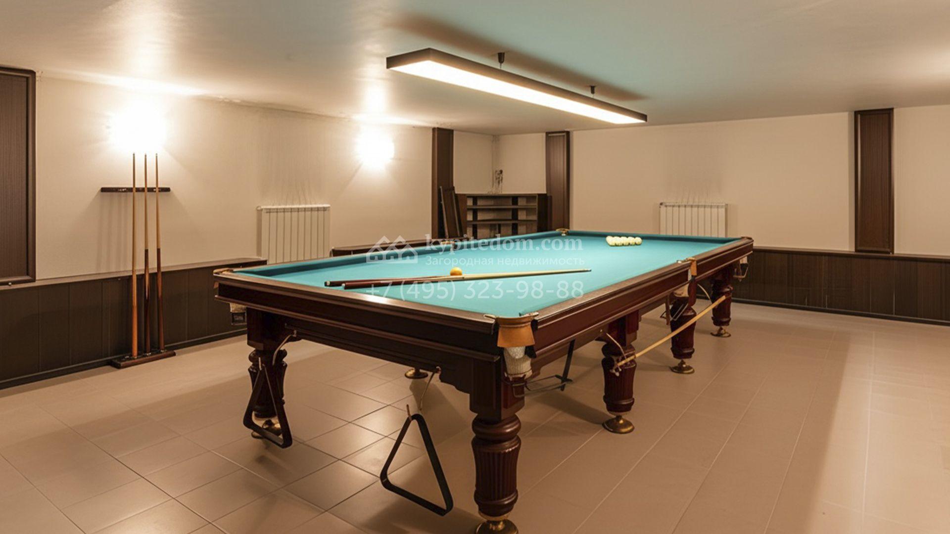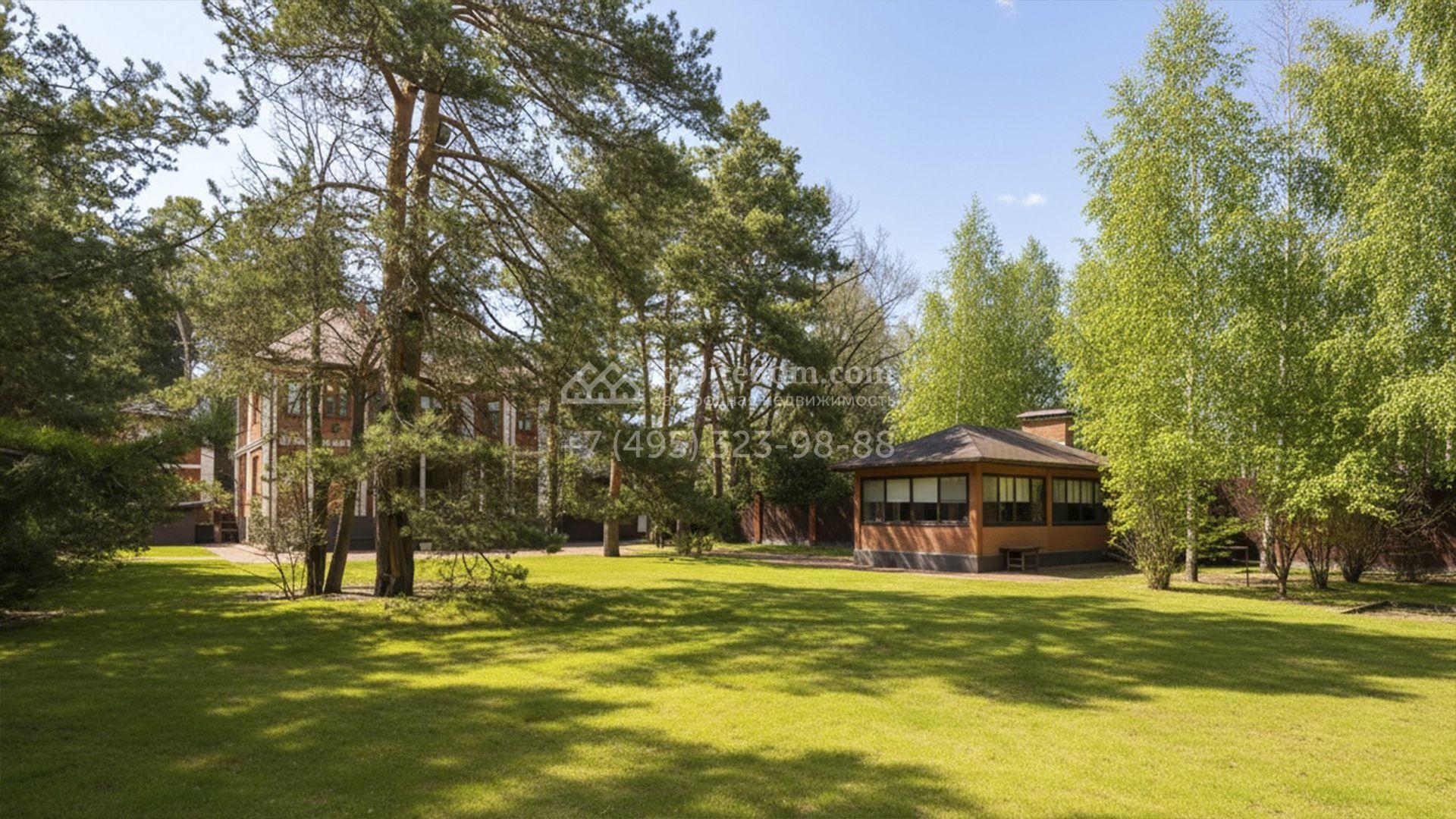 Функциональная планировка включает 7 спален, гостиную, кухню, столовую с выходом на террасу, кабинет, бильярдную, бар, тренажерный зал и сауну. На участке, где растут взрослые хвойные деревья, реализован ландшафтный дизайн: выполнен дренаж, засеян газон и выложены дорожки. Для отдыха с близкими предусмотрена беседка с камином и зоной барбекю. Удобно размещенный гараж на 2 машины дополняет загородный дом.