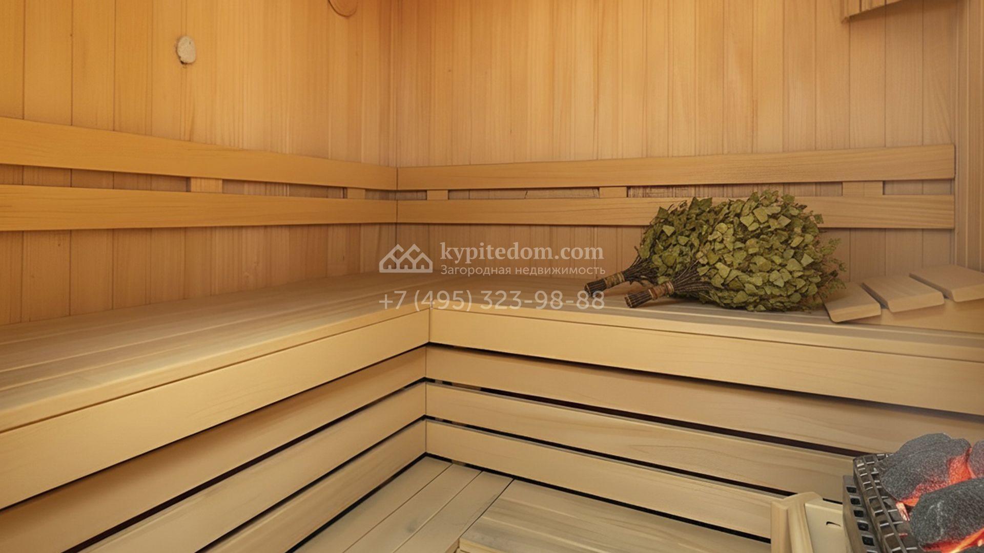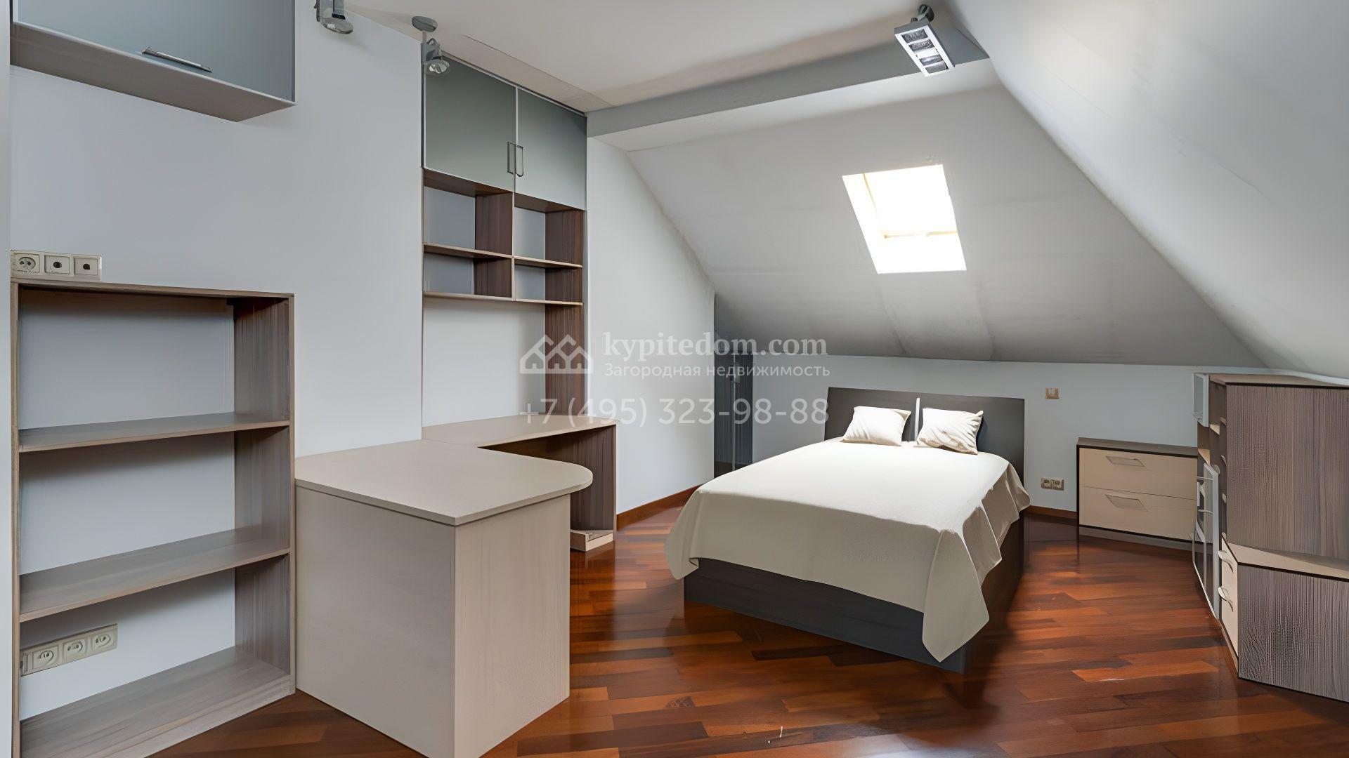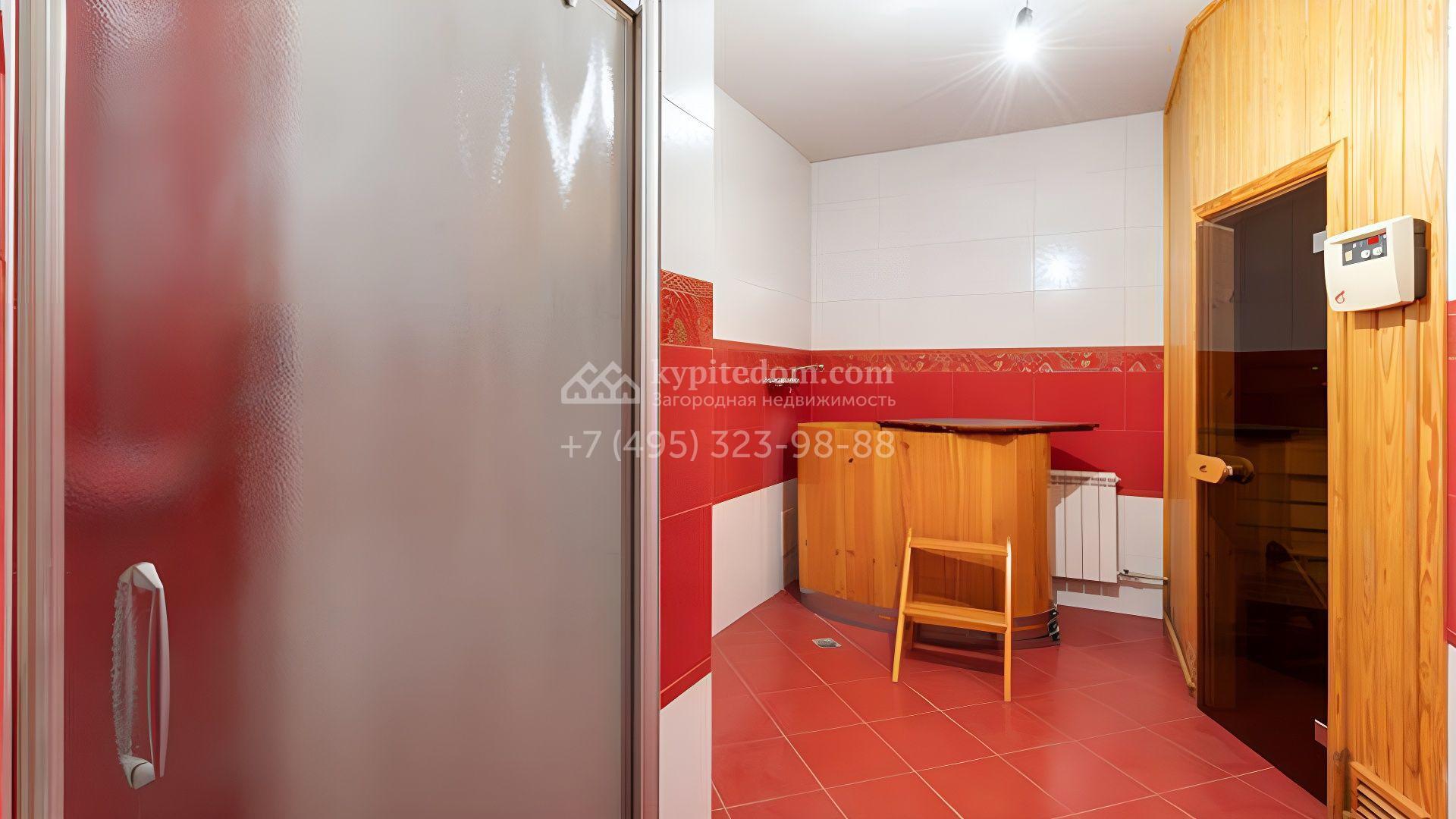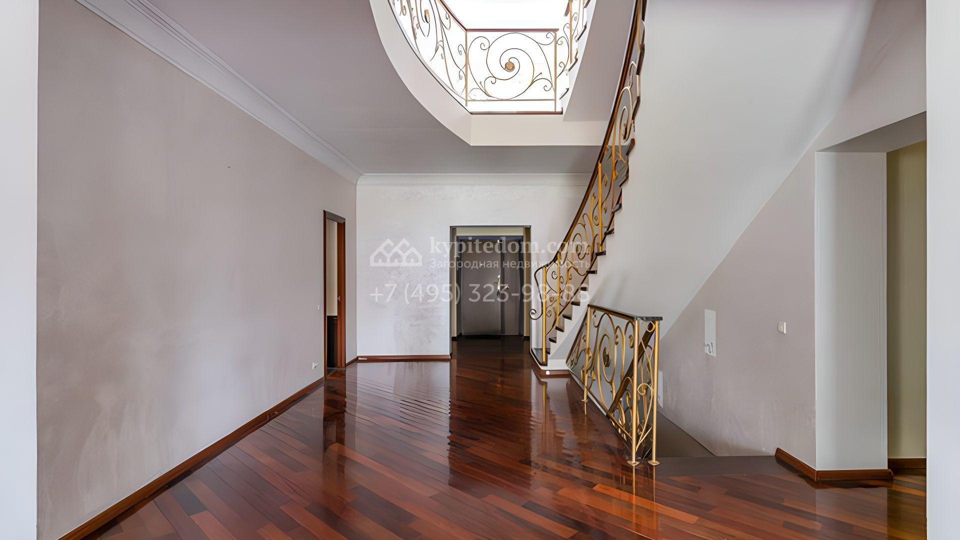 Функциональная планировка включает 7 спален, гостиную, кухню, столовую с выходом на террасу, кабинет, бильярдную, бар, тренажерный зал и сауну. На участке, где растут взрослые хвойные деревья, реализован ландшафтный дизайн: выполнен дренаж, засеян газон и выложены дорожки. Для отдыха с близкими предусмотрена беседка с камином и зоной барбекю. Удобно размещенный гараж на 2 машины дополняет загородный дом.
