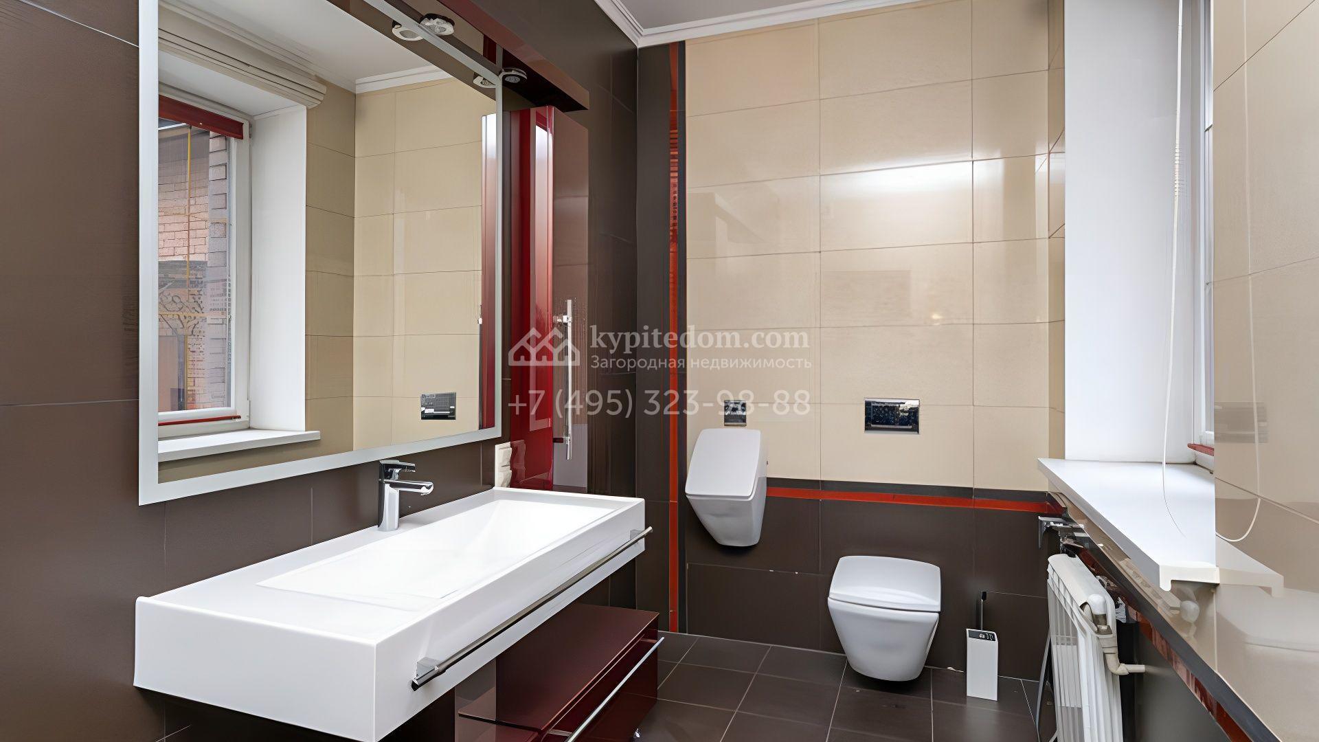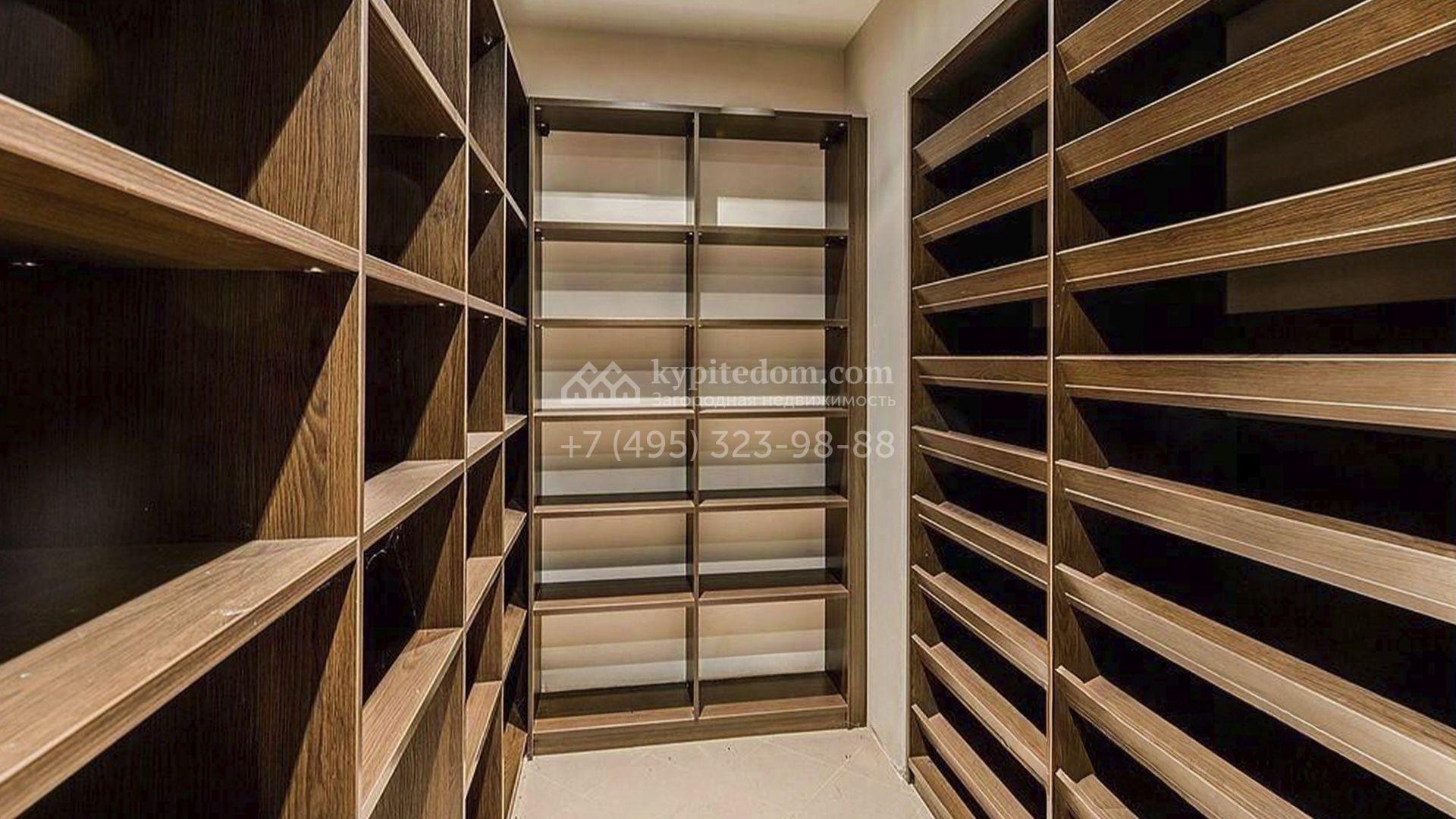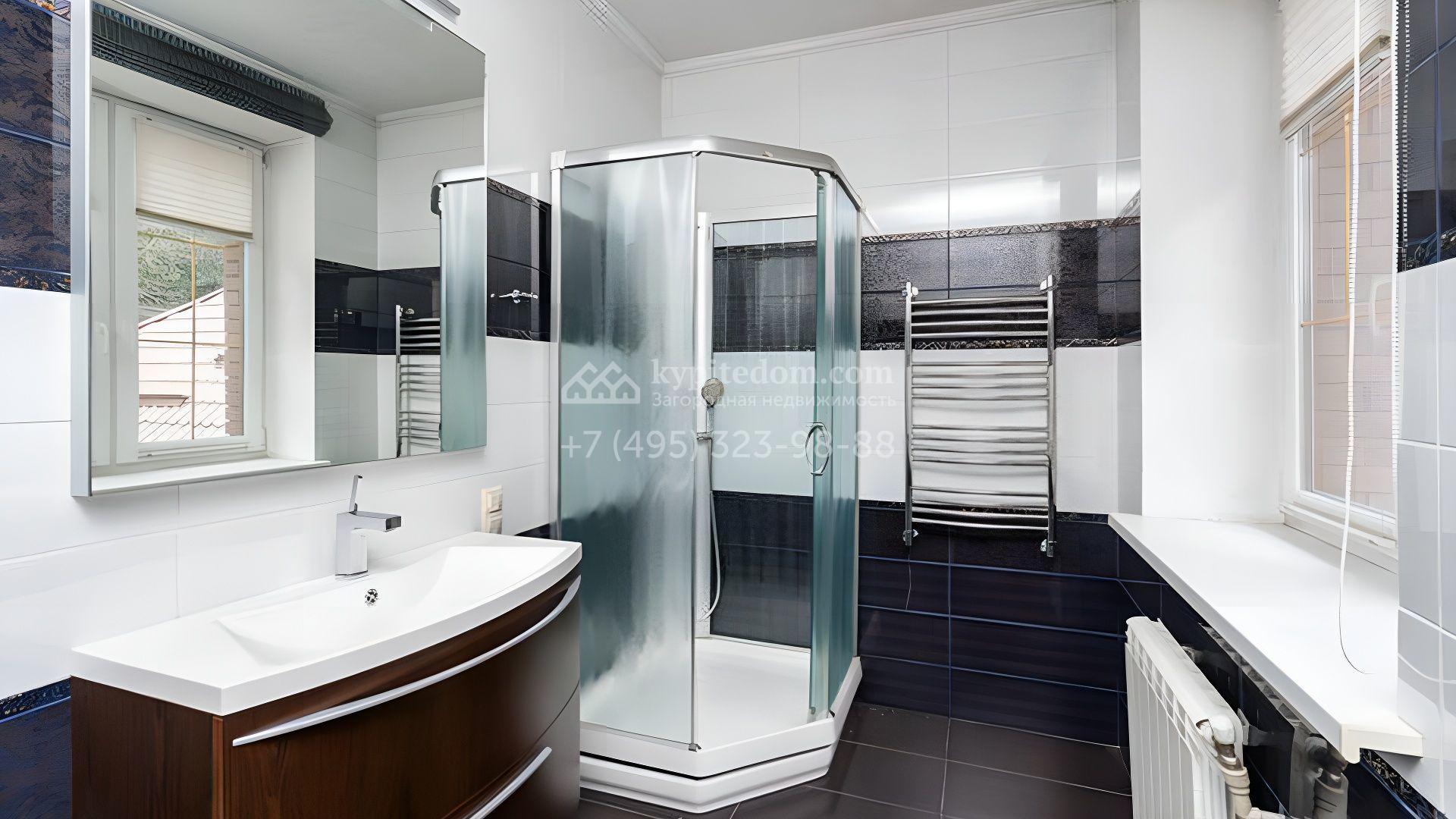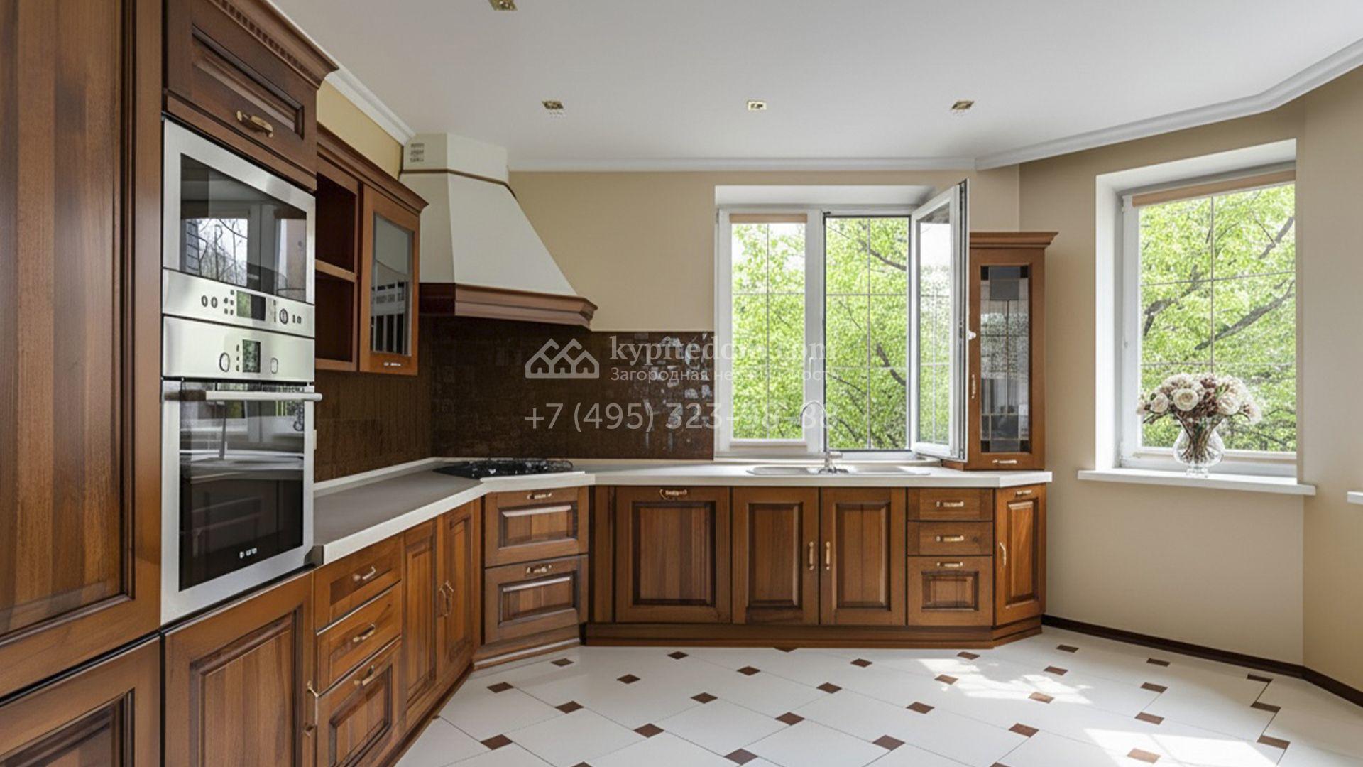 Функциональная планировка включает 7 спален, гостиную, кухню, столовую с выходом на террасу, кабинет, бильярдную, бар, тренажерный зал и сауну. На участке, где растут взрослые хвойные деревья, реализован ландшафтный дизайн: выполнен дренаж, засеян газон и выложены дорожки. Для отдыха с близкими предусмотрена беседка с камином и зоной барбекю. Удобно размещенный гараж на 2 машины дополняет загородный дом.