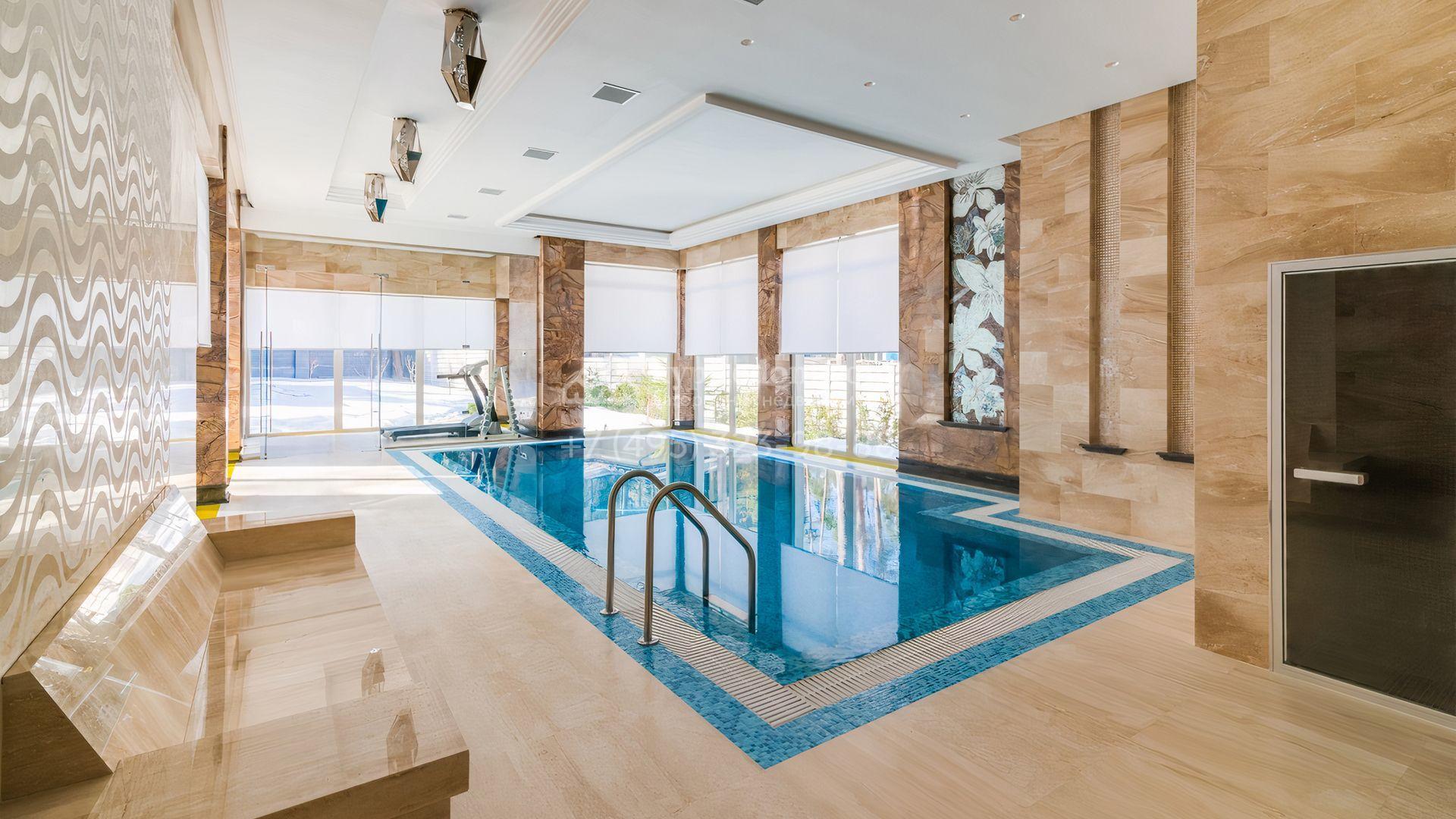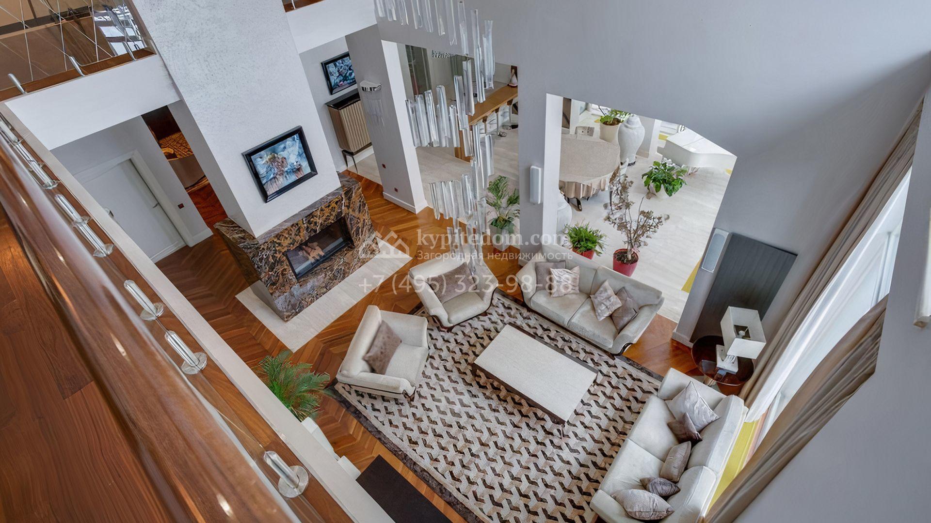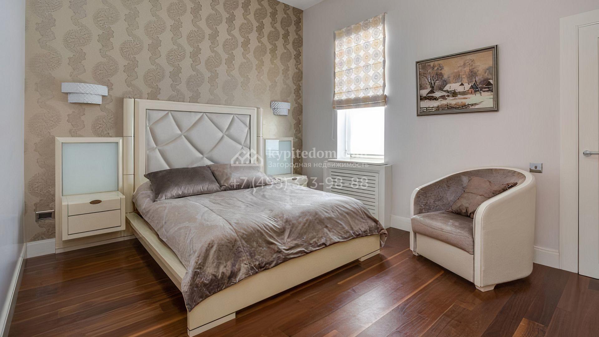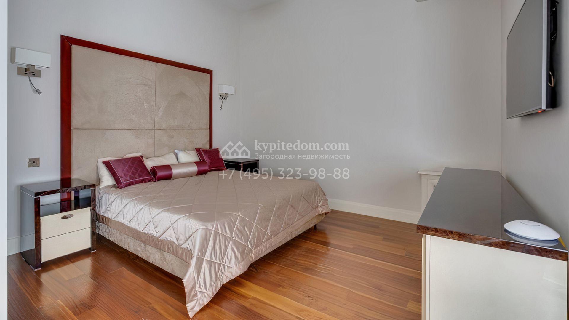 Загородная резиденция площадью 860 м² расположена на лесном участке 25 соток. Светлый фасад выполнен в неоклассическом стиле, облицован штукатуркой и декорирован колоннами, рустовкой и коваными элементами. Современный интерьер оформлен в молочно-кремовых оттенках. Планировка дома включает 6 спален, большую гостиную с камином, роялем и вторым светом, кухню, столовую, тренажерный зал, бильярдную и домашний кинотеатр. Расслабиться в конце дня можно в SPA-зоне с бассейном, сауной и хаммамом в доме или в отдельной русской бане на участке с купелью, душевой, кухней и террасой, где рядом расположен подогреваемый открытый бассейн. На территории с ландшафтным дизайном построен гараж на 2 машины с квартирой для персонала.