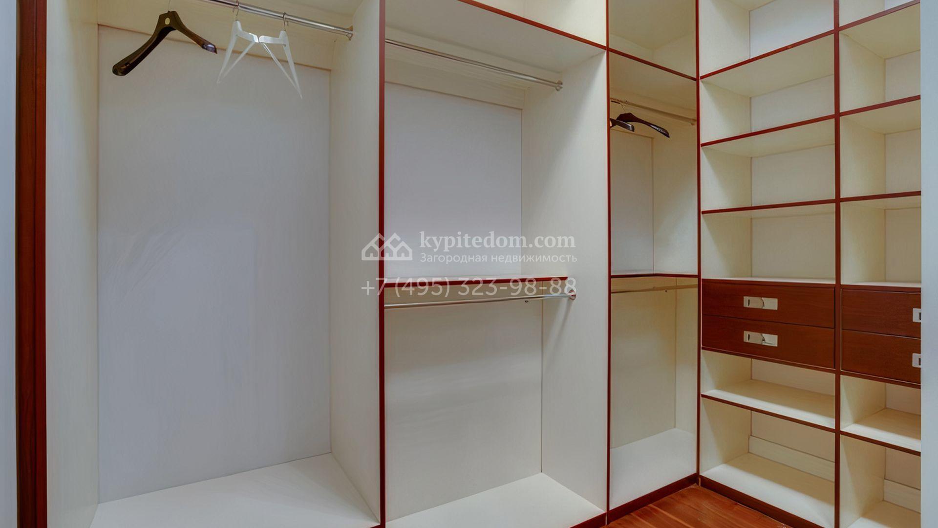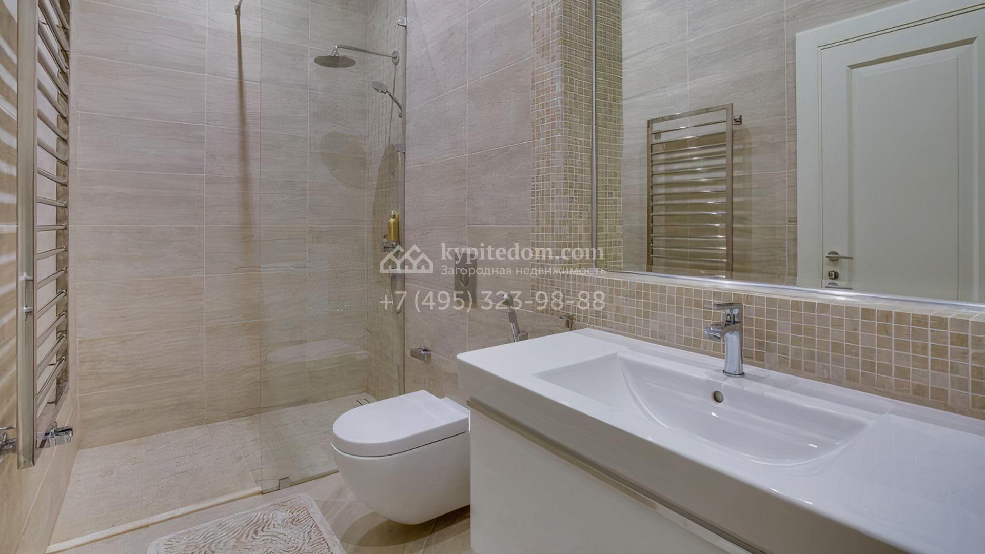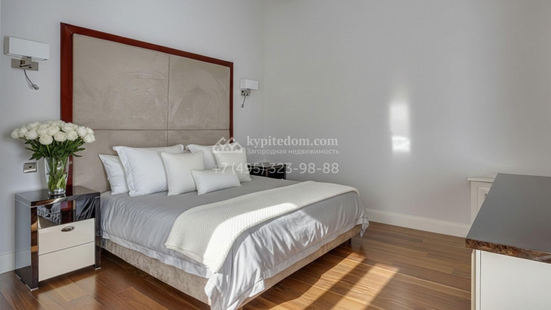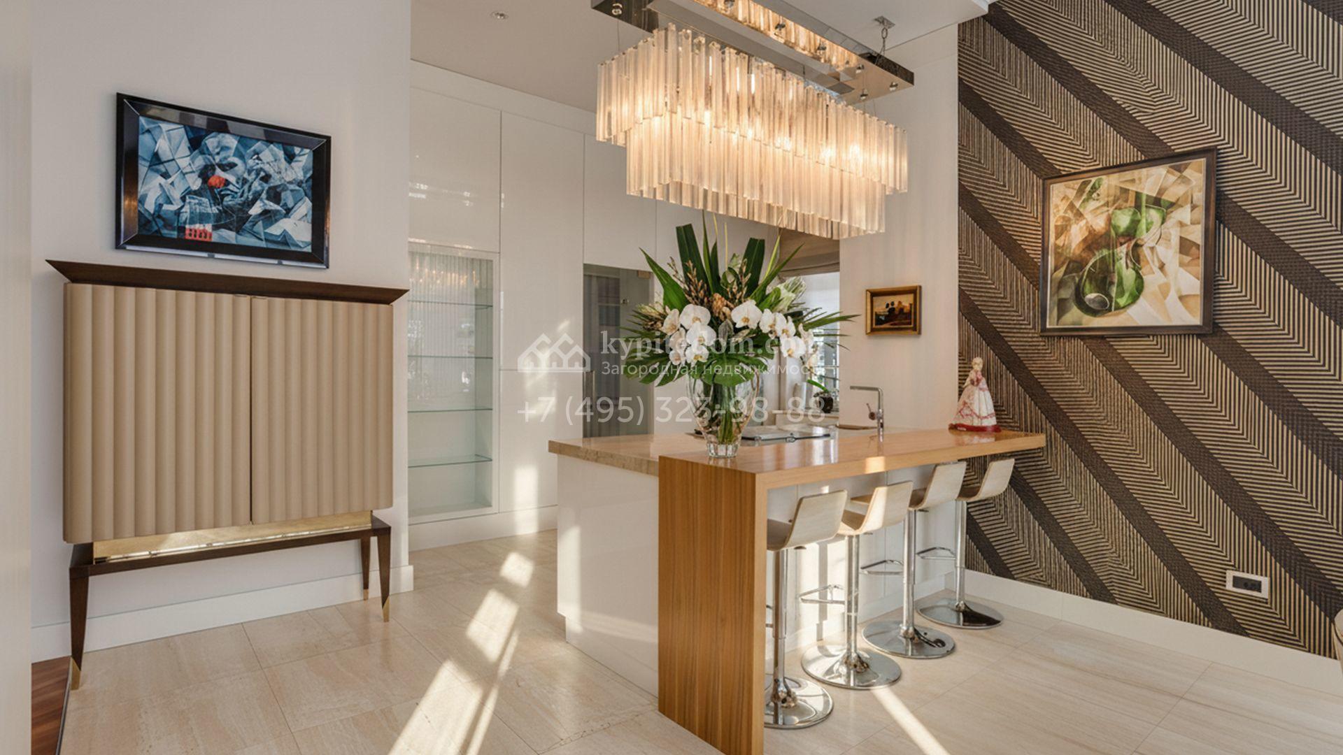 Загородная резиденция площадью 860 м² расположена на лесном участке 25 соток. Светлый фасад выполнен в неоклассическом стиле, облицован штукатуркой и декорирован колоннами, рустовкой и коваными элементами. Современный интерьер оформлен в молочно-кремовых оттенках. Планировка дома включает 6 спален, большую гостиную с камином, роялем и вторым светом, кухню, столовую, тренажерный зал, бильярдную и домашний кинотеатр. Расслабиться в конце дня можно в спа-зоне с бассейном, сауной и хаммамом в доме или в отдельной русской бане на участке с купелью, душевой, кухней и террасой, где рядом расположен подогреваемый открытый бассейн. На территории с ландшафтным дизайном построен гараж на две машины с квартирой для персонала.