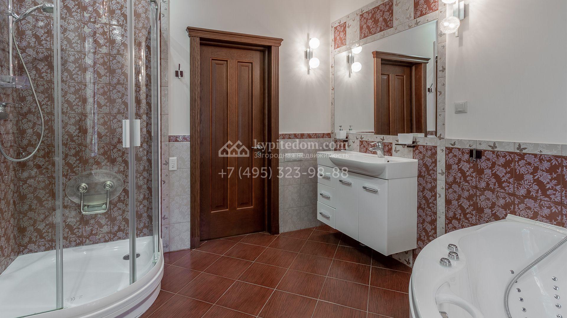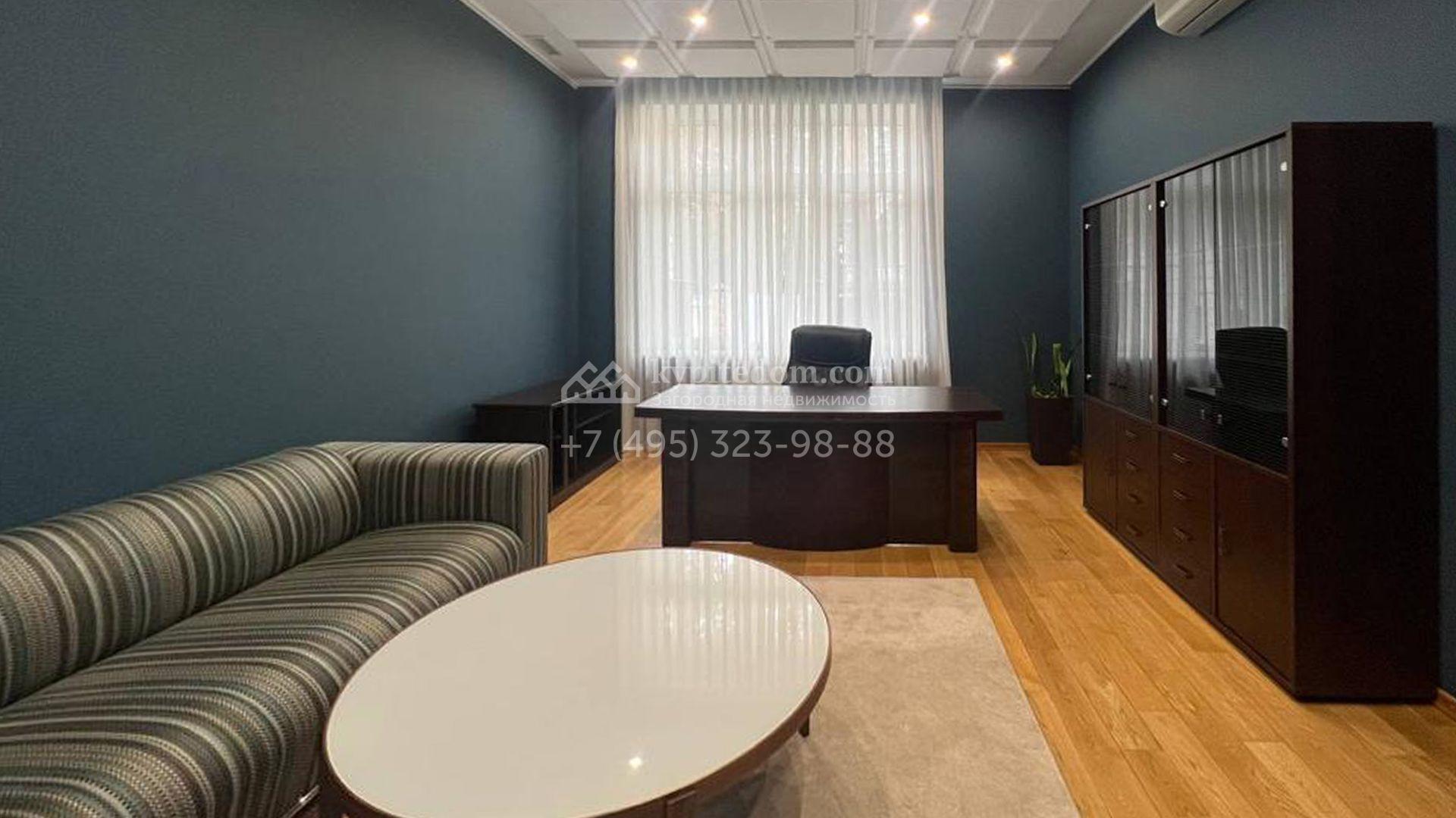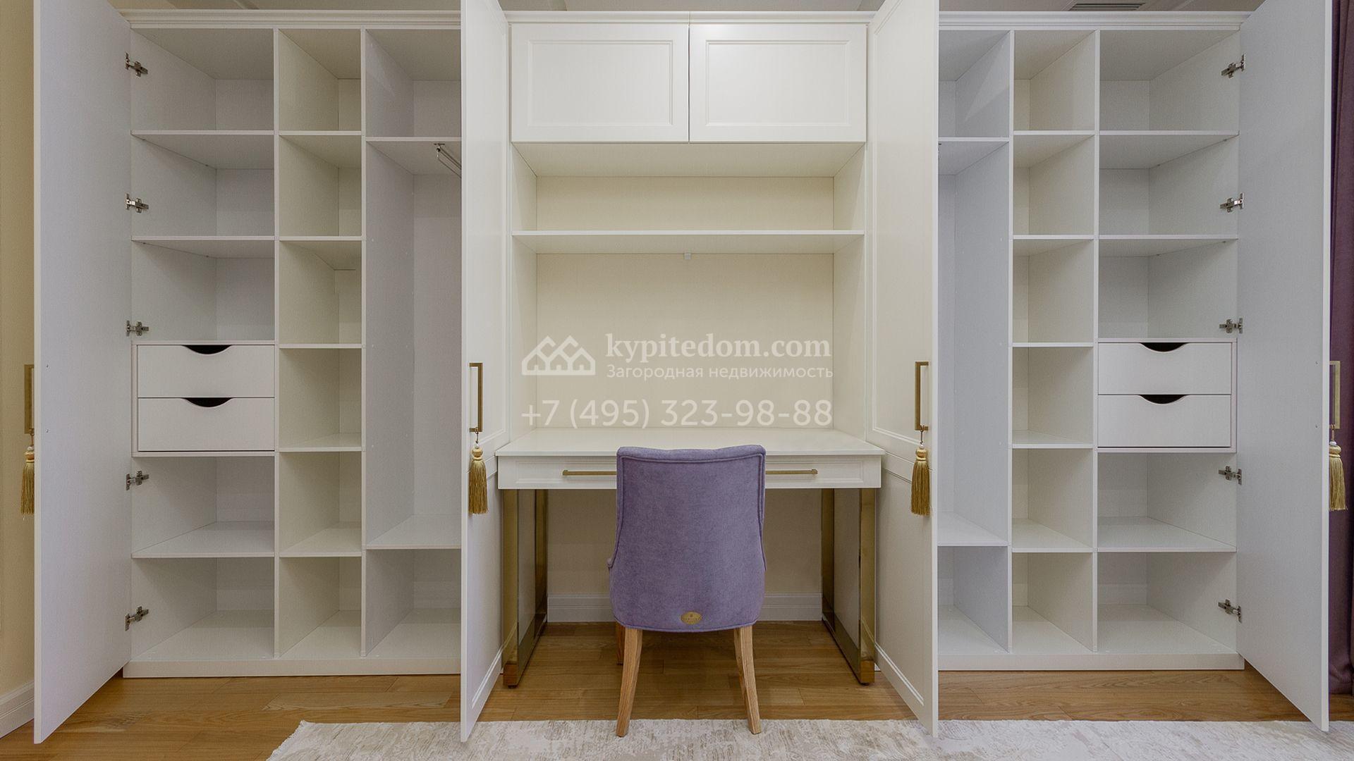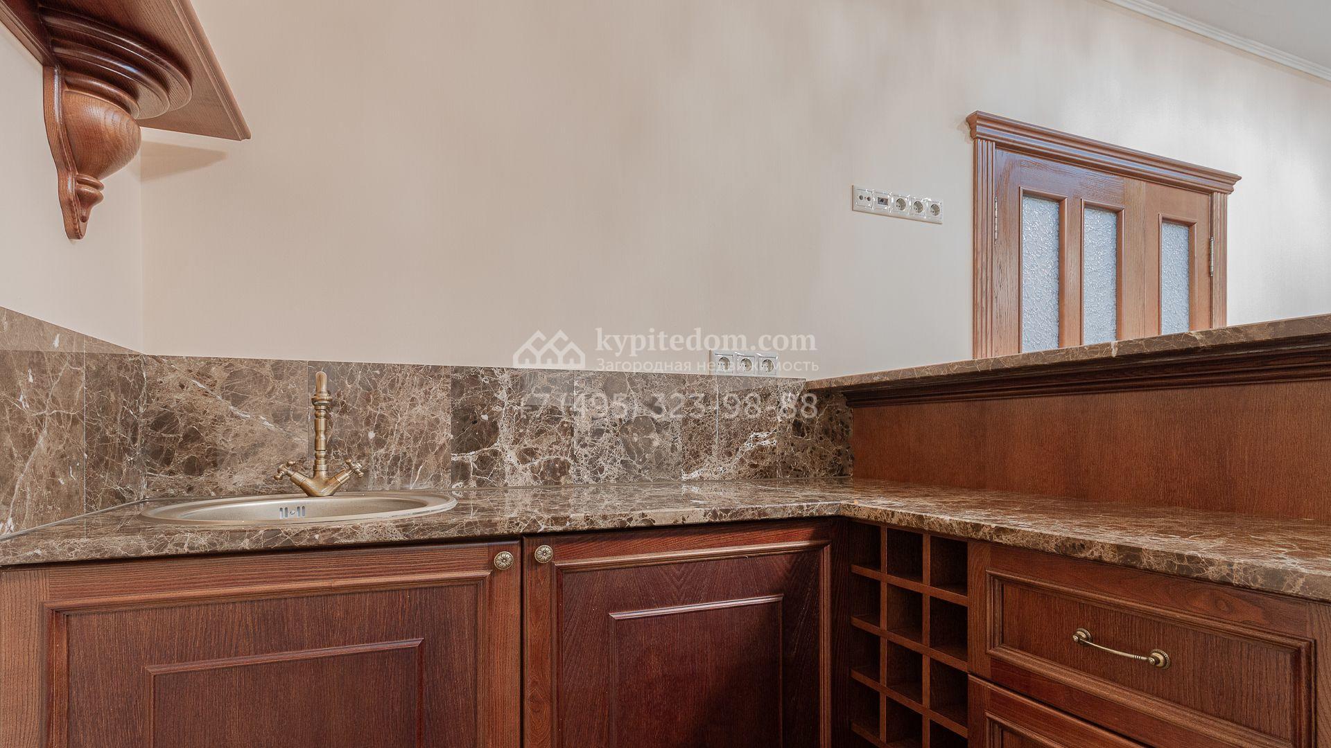 Планировка включает 4 спальни, просторную гостиную с камином, кухню-столовую, кабинет, зимний сад и кинозал. В особняке предусмотрена SPA-зона с бассейном, сауной и комнатой отдыха. На территории с ландшафтным дизайном и вымощенными дорожками расположены дом для персонала со встроенным двухместным гаражом и беседка с зоной барбекю.