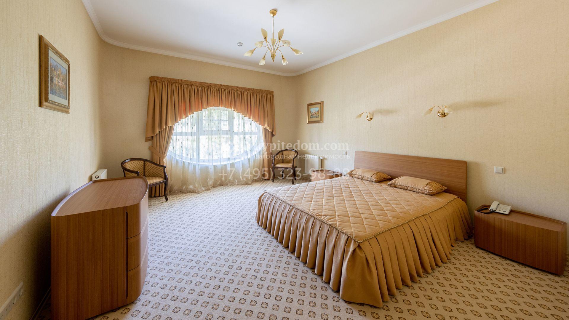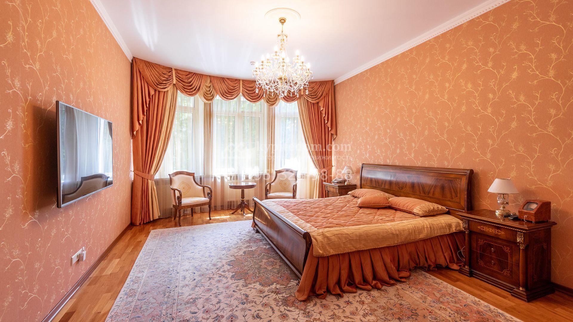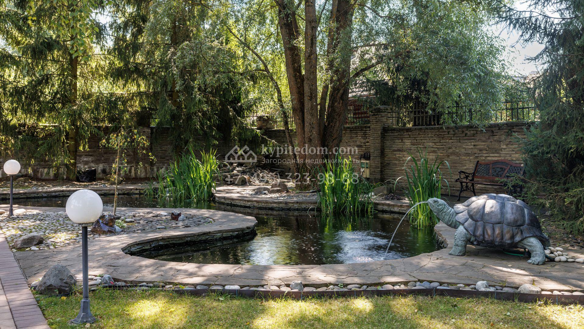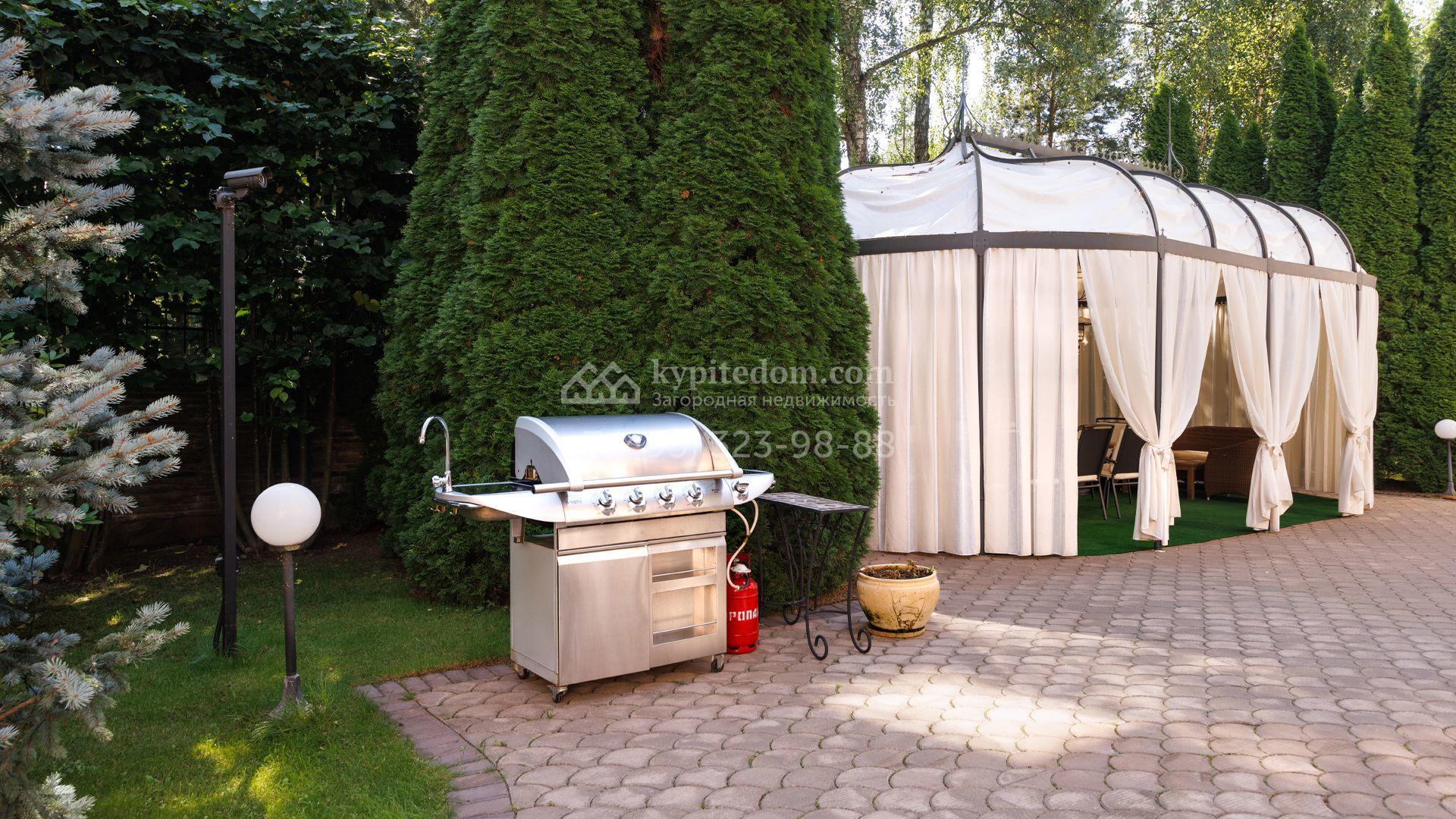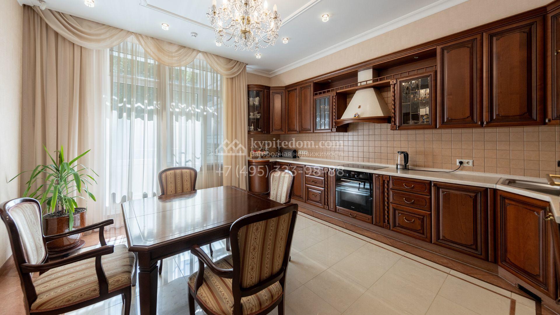 Загородный дом площадью 985 м² расположен на просторном лесном участке 31 сотка. Фасад здания облицован розово-персиковой штукатуркой, декорирован белыми наличниками и мозаичными панно. В отделке интерьера использованы тёплые оттенки, которые создают атмосферу домашнего уюта. В резиденции разместили семь спален, столовую-гостиную с камином, кухню с выходом на участок, кабинет, кинотеатр и спа-зону с бассейном и сауной. В контуре дома предусмотрен гараж на три машины. На участке выполнен ландшафтный дизайн, засеян газон, установлено уличное освещение, вымощены дорожки, высажены ели, туи, липы, березы и обустроен пруд.