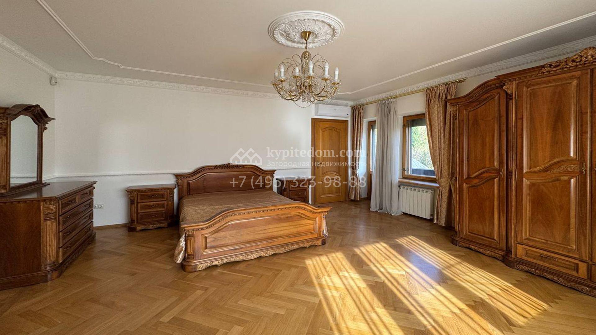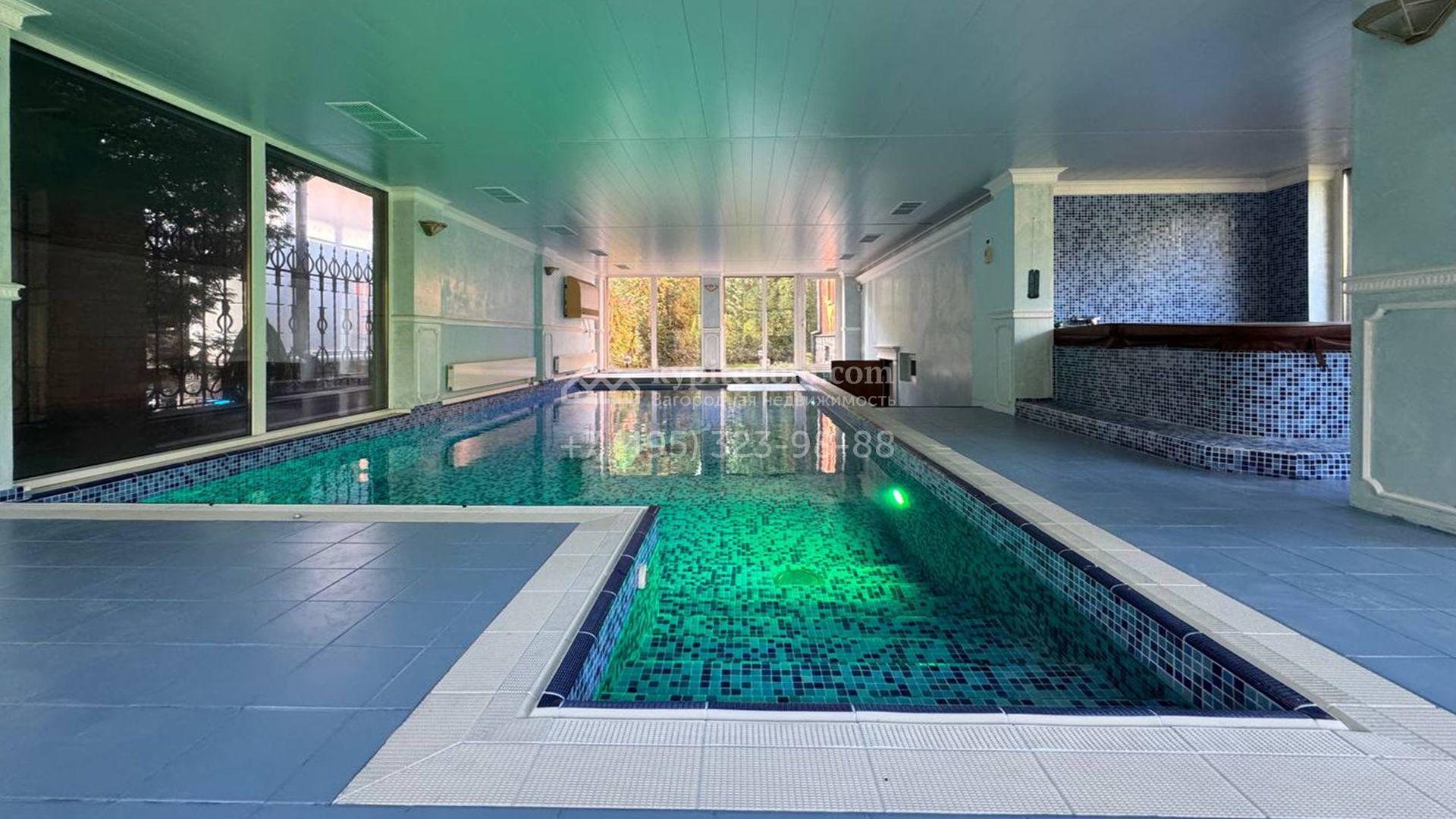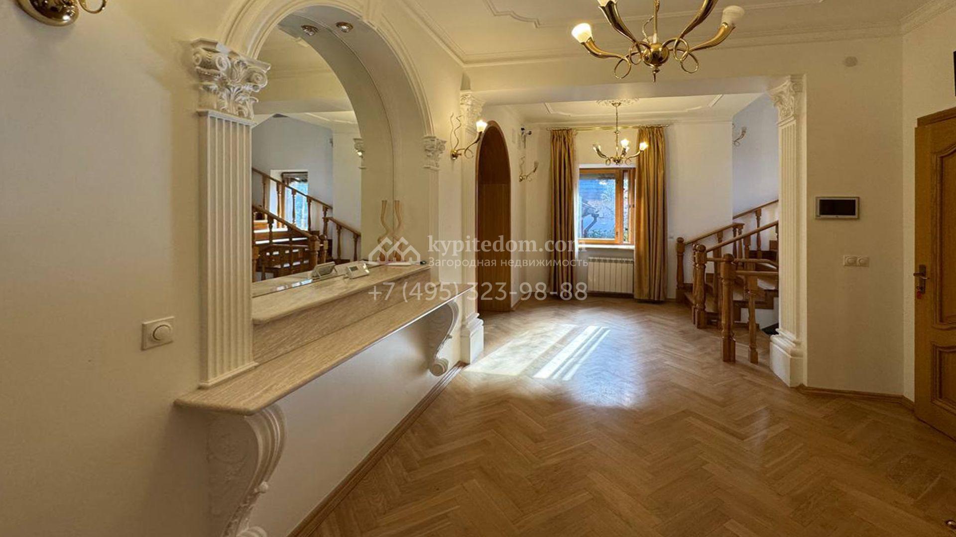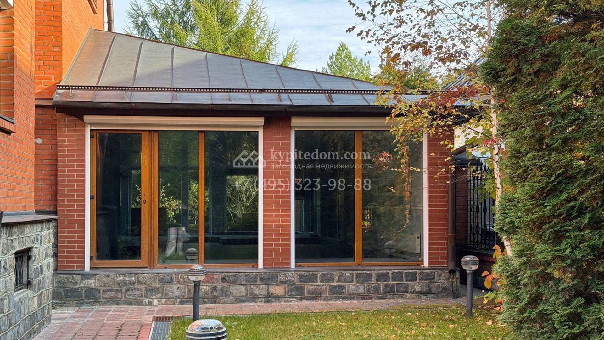 Загородный коттедж площадью 450 м² расположен на прилесном участке 35 соток. Фасад, облицованный красным кирпичом, выполнен в современном стиле. Интерьер с элементами классики выдержан в светлых тонах и дополнен мебелью. В четырехэтажном особняке спланировали уютную гостиную с камином и TV-зоной, оборудованную кухню-столовую, 4 спальни, бассейн, джакузи, сауну и просторную бильярдную. Также в контуре коттеджа предусмотрен гараж на 2 машины. Рядом с основным зданием построены дом для персонала, беседка и детская площадка. На участке проведены ландшафтные работы, засеян газон, вымощены дорожки, растут деревья и кустарники, оборудовано уличное освещение.