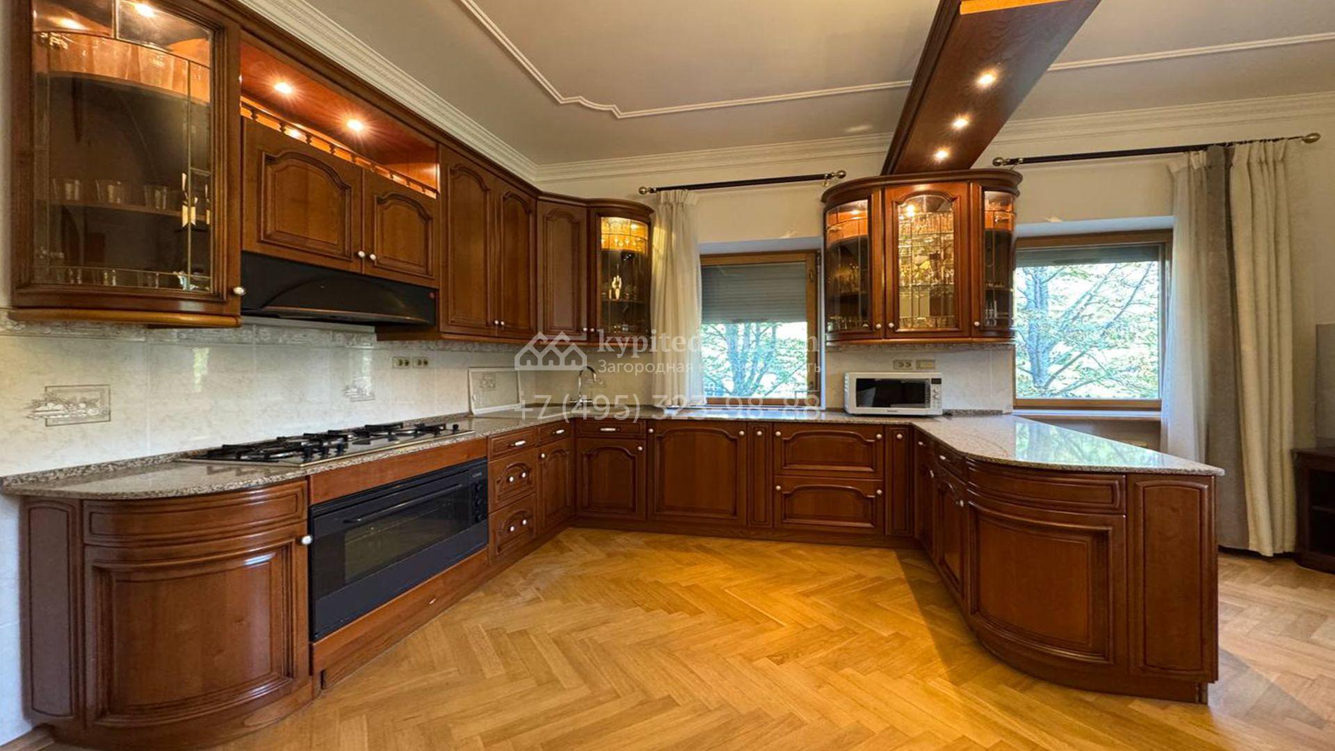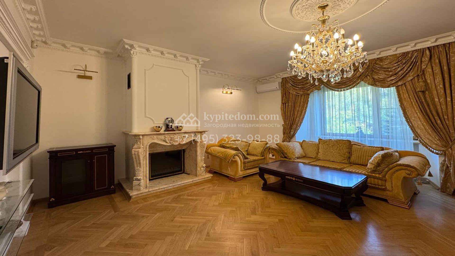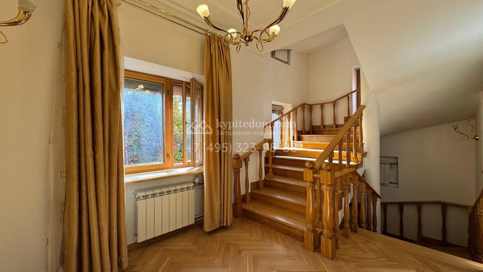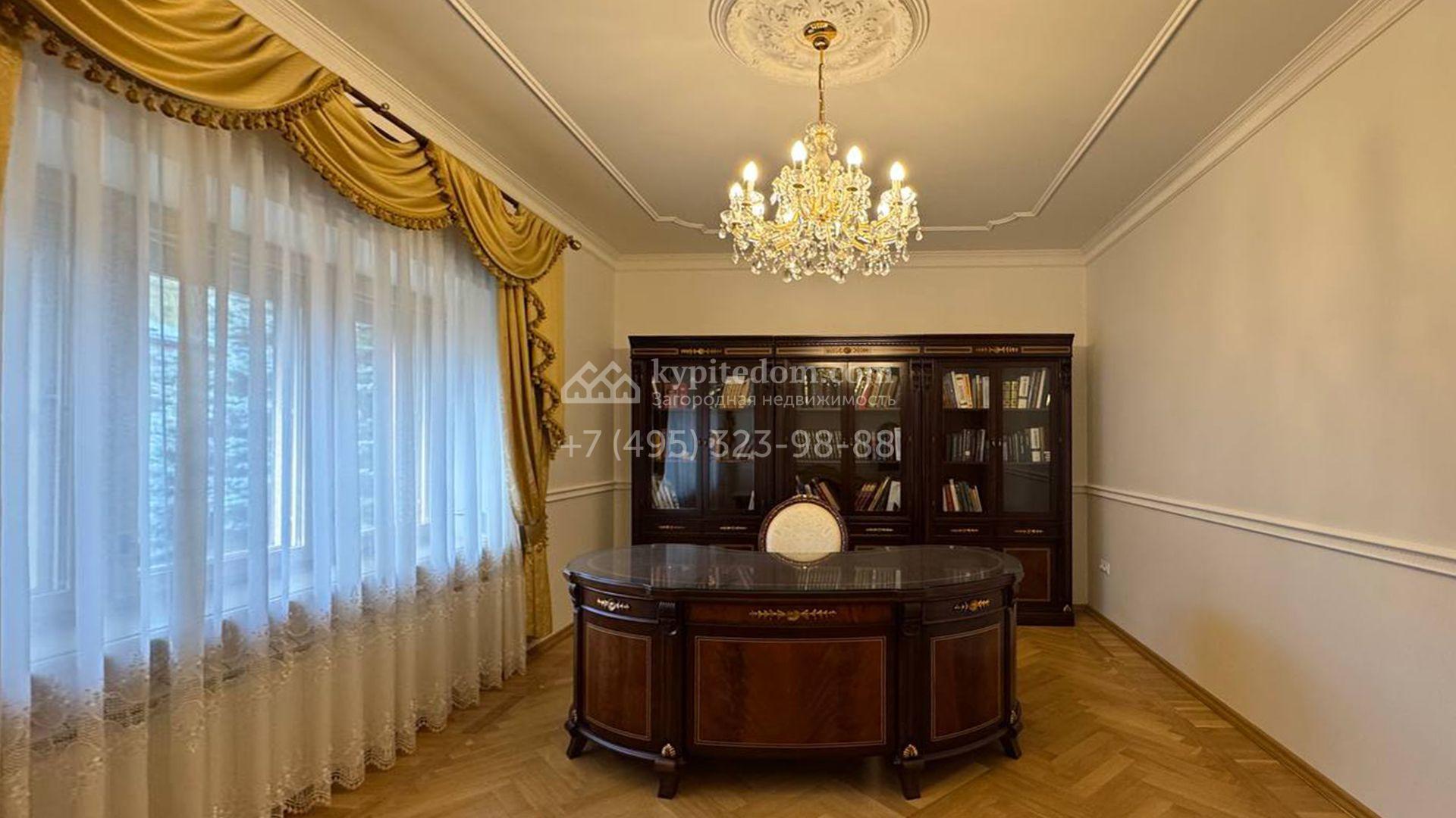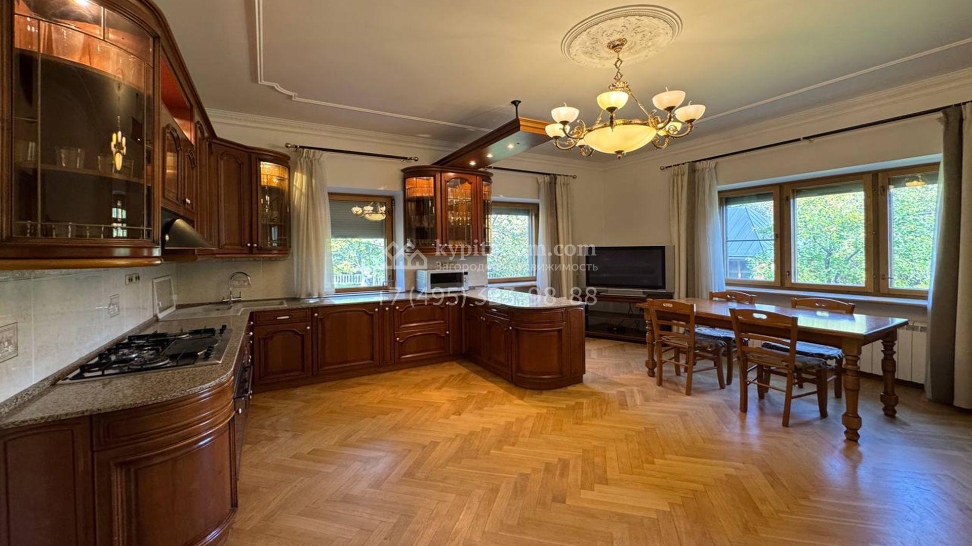 Загородный коттедж площадью 450 м² расположен на прилесном участке 35 соток. Фасад, облицованный красным кирпичом, выполнен в современном стиле. Интерьер с элементами классики выдержан в светлых тонах и дополнен мебелью. В четырехэтажном особняке спланировали уютную гостиную с камином и TV-зоной, оборудованную кухню-столовую, 4 спальни, бассейн, джакузи, сауну и просторную бильярдную. Также в контуре коттеджа предусмотрен гараж на 2 машины. Рядом с основным зданием построены дом для персонала, беседка и детская площадка. На участке проведены ландшафтные работы, засеян газон, вымощены дорожки, растут деревья и кустарники, оборудовано уличное освещение.