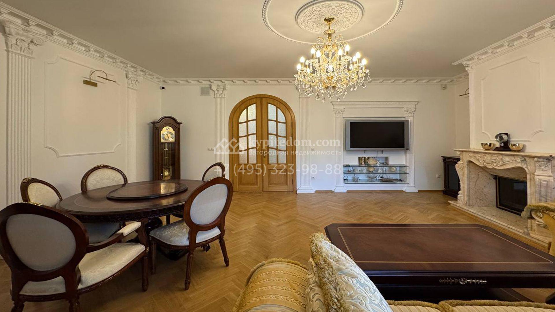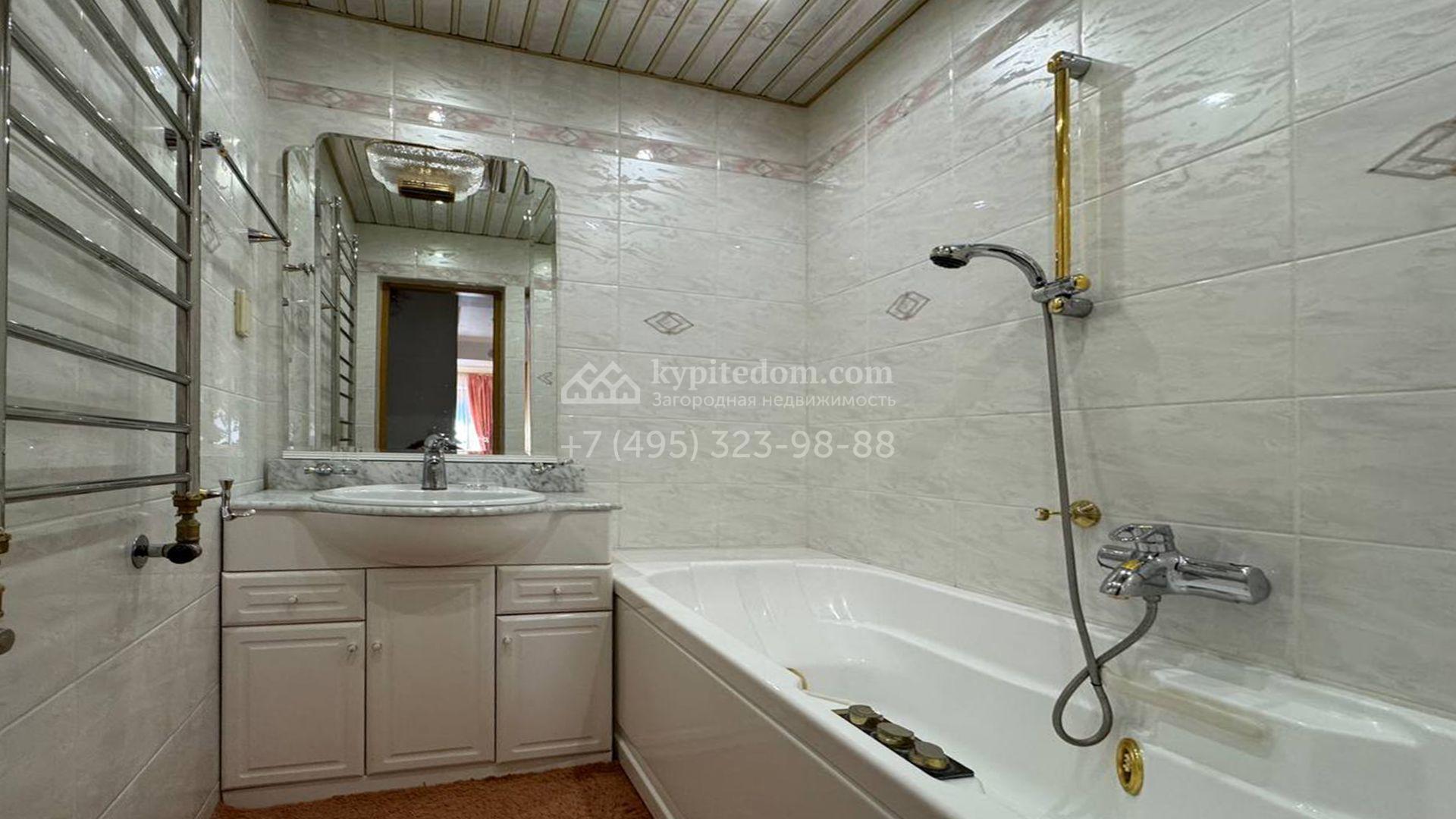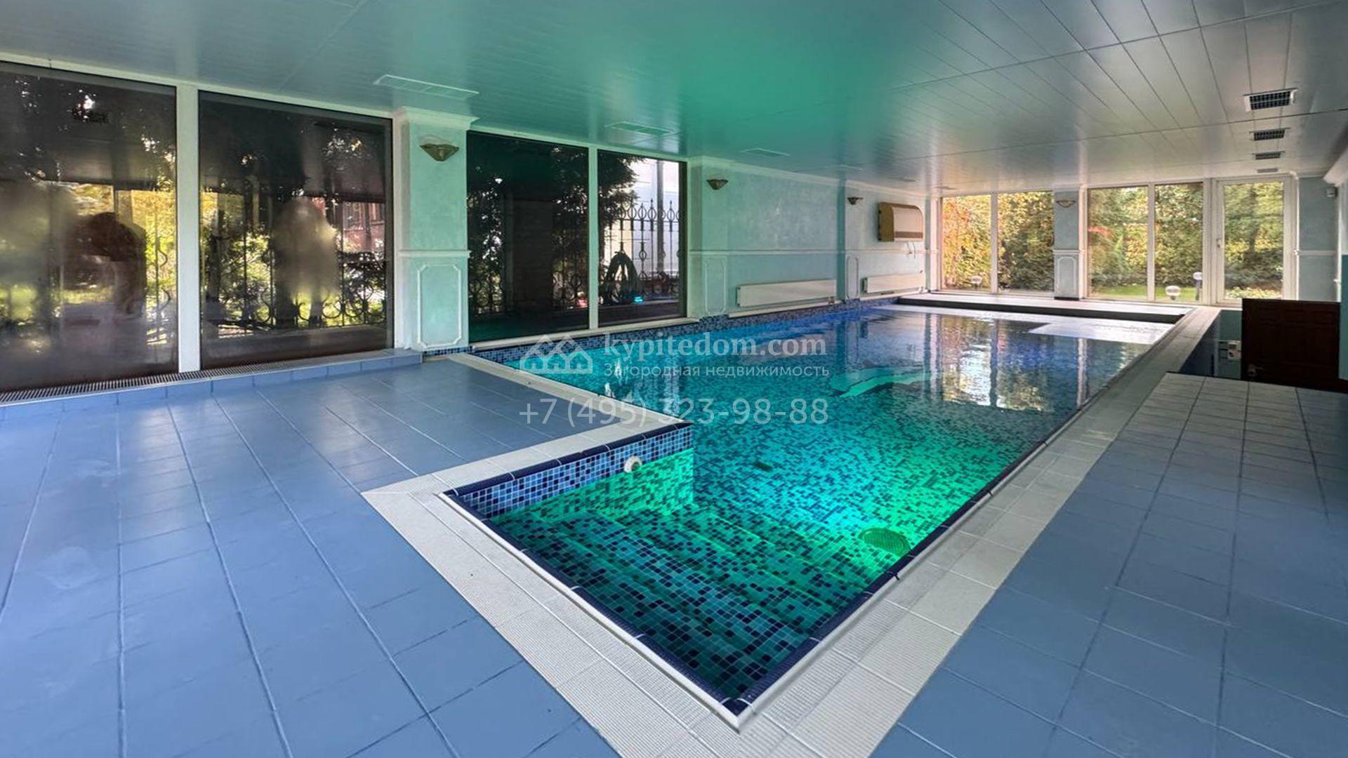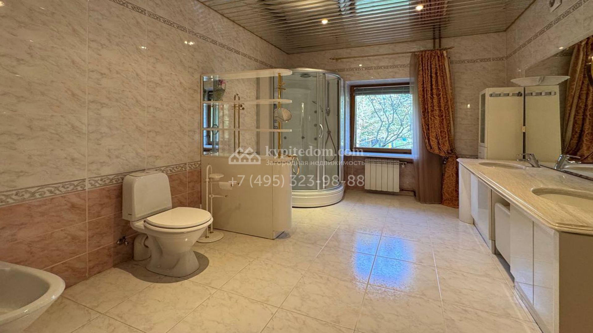 Загородный коттедж площадью 450 м² расположен на прилесном участке 35 соток. Фасад, облицованный красным кирпичом, выполнен в современном стиле. Интерьер с элементами классики выдержан в светлых тонах и дополнен мебелью. В четырехэтажном особняке спланировали уютную гостиную с камином и TV-зоной, оборудованную кухню-столовую, 4 спальни, бассейн, джакузи, сауну и просторную бильярдную. Также в контуре коттеджа предусмотрен гараж на 2 машины. Рядом с основным зданием построены дом для персонала, беседка и детская площадка. На участке проведены ландшафтные работы, засеян газон, вымощены дорожки, растут деревья и кустарники, оборудовано уличное освещение.