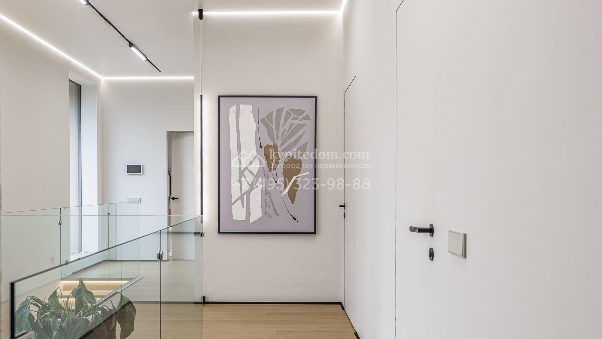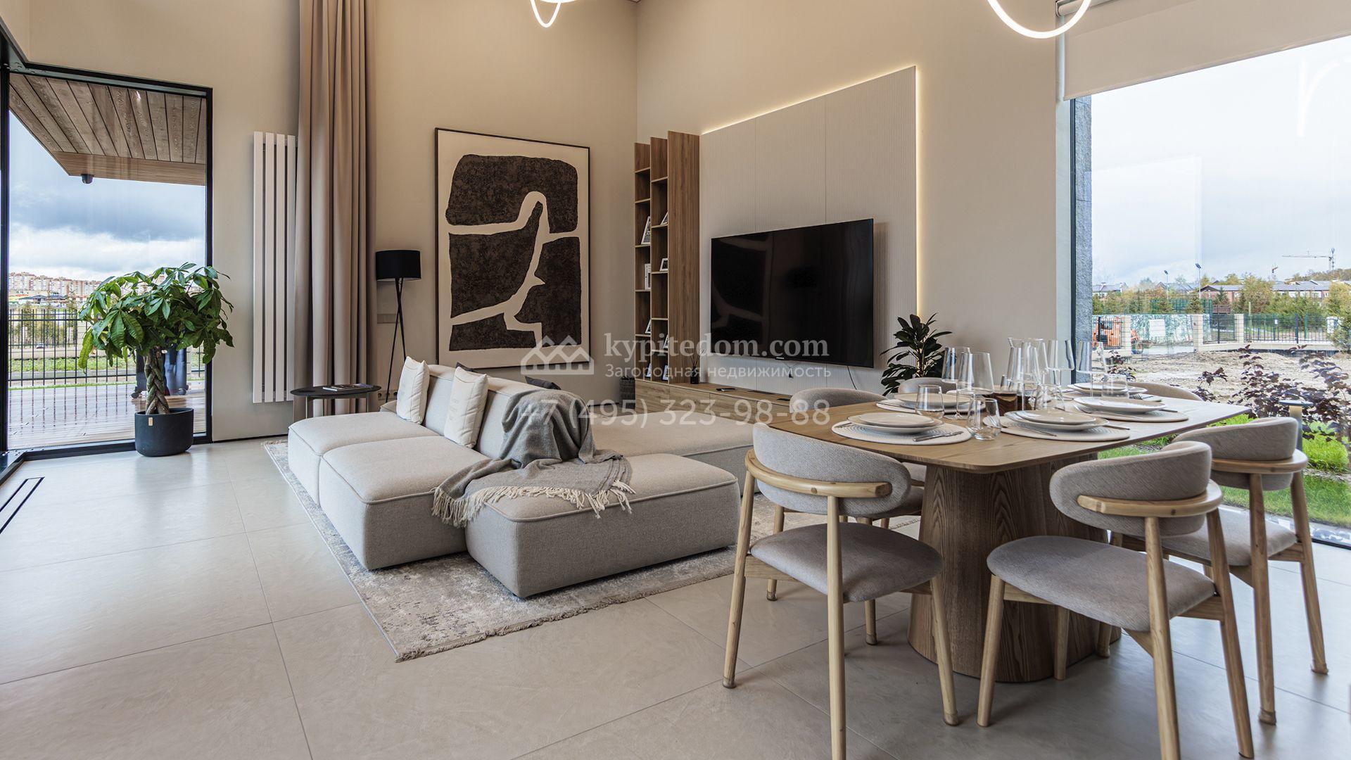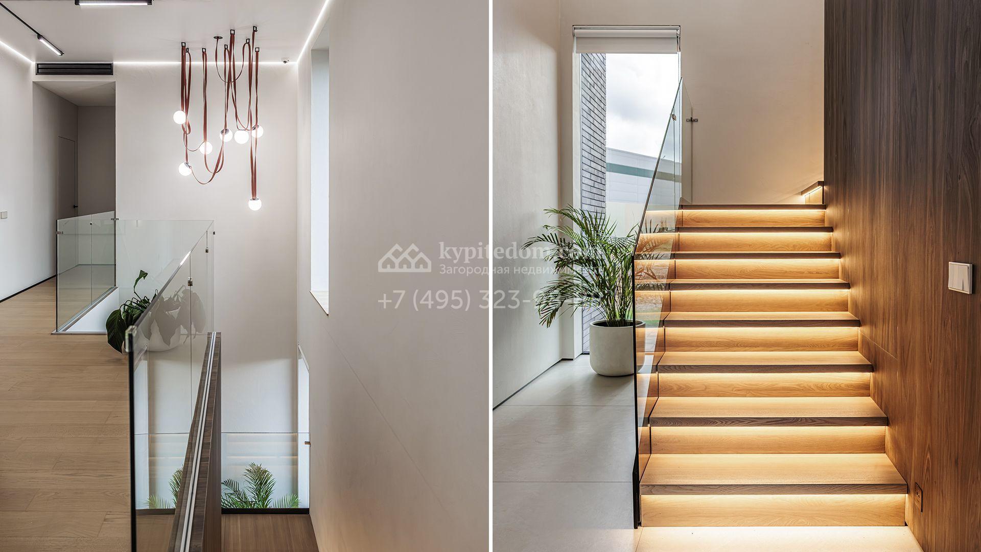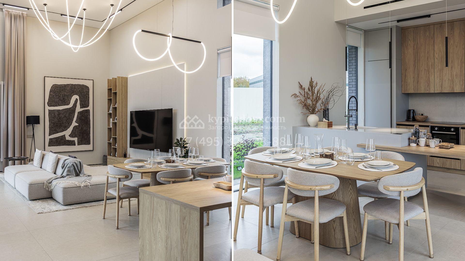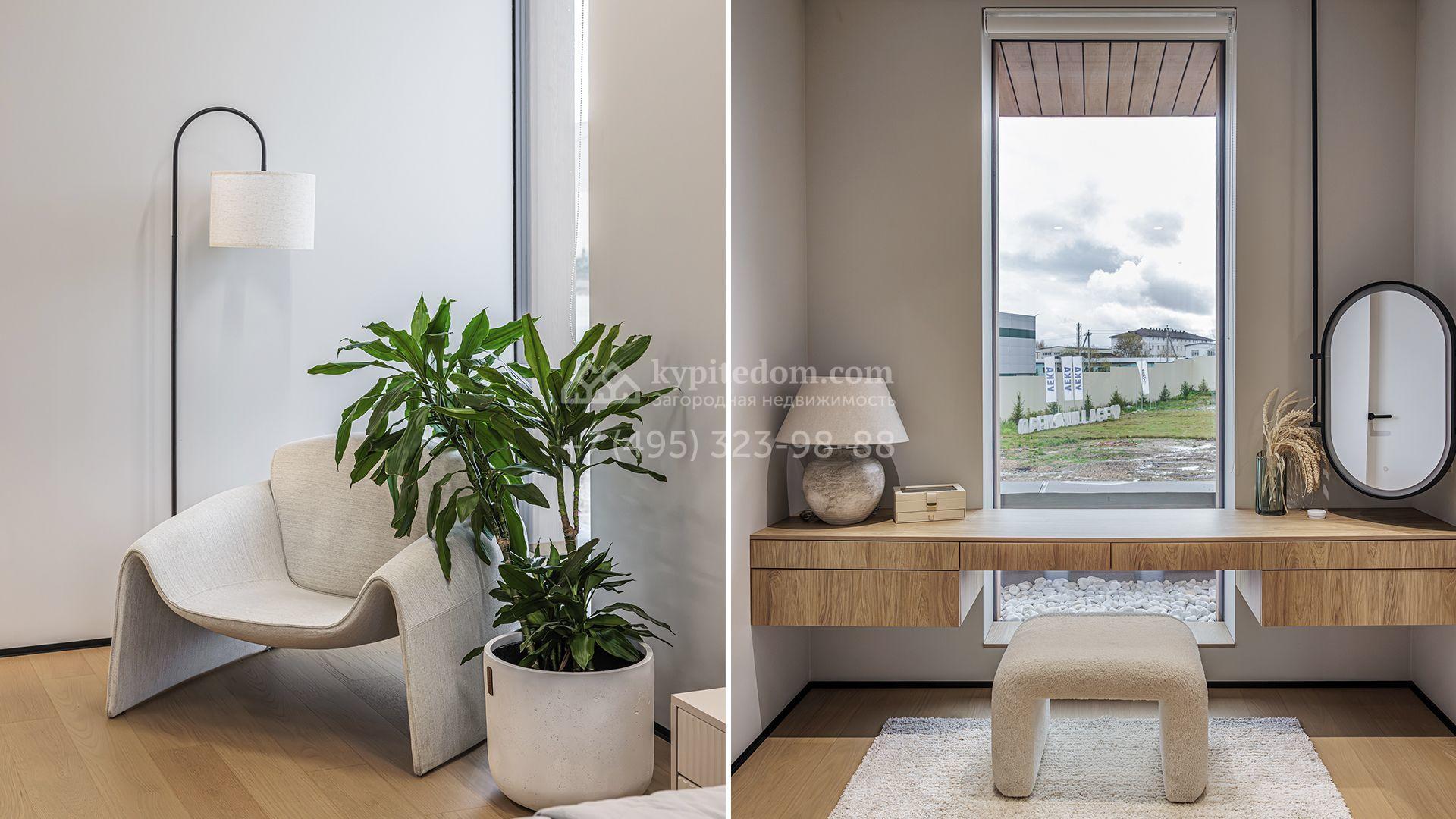 Пространство дома ощущается еще более масштабным благодаря потолкам высотой до 4,8 метров и второму свету. Интерьеры, выдержанные в светлой спокойной палитре, дополнены акцентами в виде изящных светильников, люстр и тщательно подобранных предметов декора. Готовая меблировка и встроенная бытовая техника позволяют сразу начать здесь новую жизнь. Продуманные инженерные системы — приточно-вытяжная вентиляция с рекуперацией, скрытое канальное кондиционирование, подогрев полов и стен — формируют современную комфортную среду.