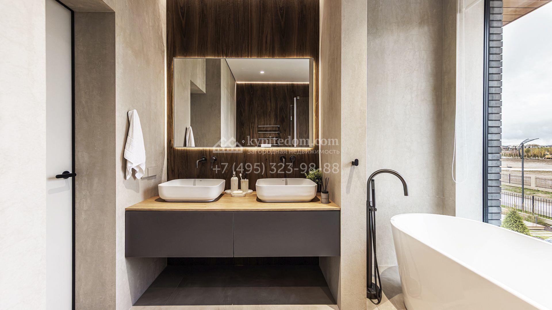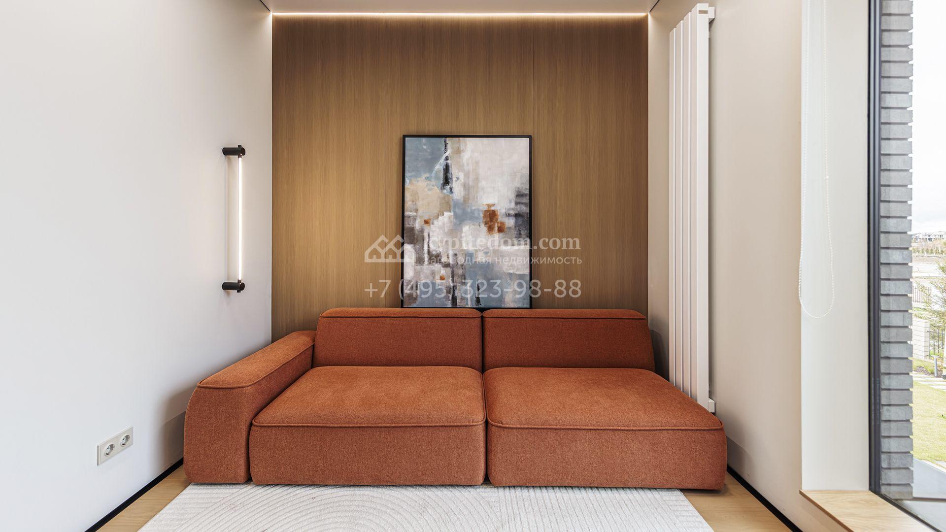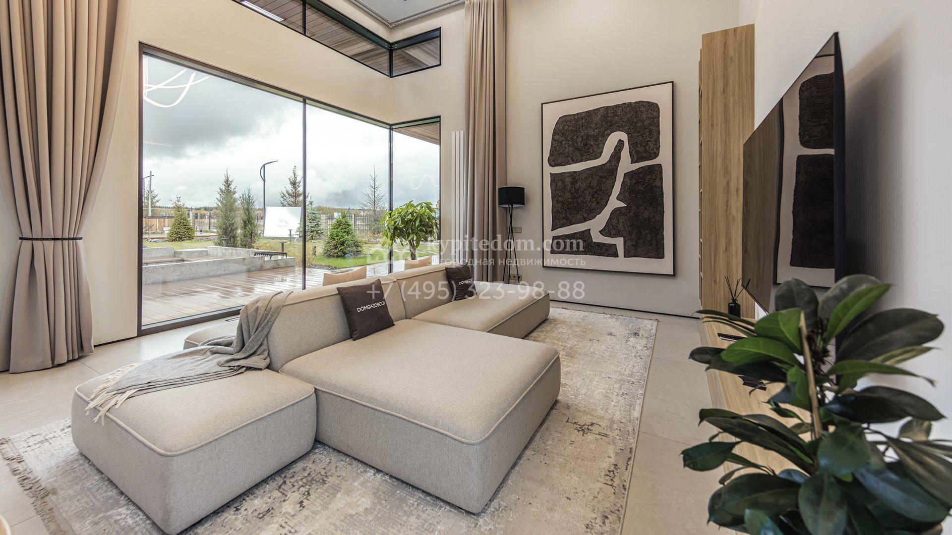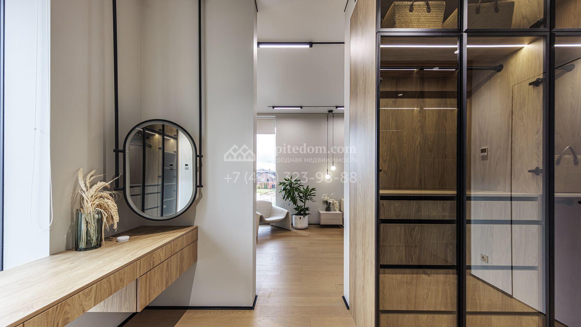Пространство дома ощущается еще более масштабным благодаря потолкам высотой до 4,8 метров и второму свету. Интерьеры, выдержанные в светлой спокойной палитре, дополнены акцентами в виде изящных светильников, люстр и тщательно подобранных предметов декора. Готовая меблировка и встроенная бытовая техника позволяют сразу начать здесь новую жизнь. Продуманные инженерные системы — приточно-вытяжная вентиляция с рекуперацией, скрытое канальное кондиционирование, подогрев полов и стен — формируют современную комфортную среду.